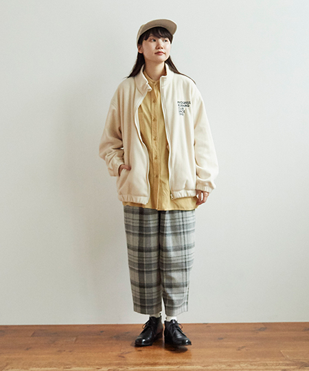キャッチーなロゴが刺繍されたスウェットパンツとブルゾンをセレクトしました。
