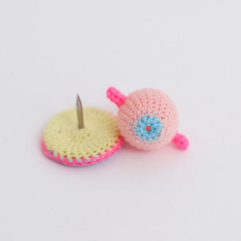 ピンブローチ&ピアスは小さなアクリルボールの周りを綺麗にミシン糸で編んで包むようにして作られています。