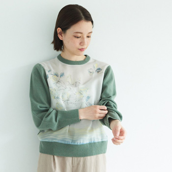 水彩画のような柔らかな手書きの絵をプリントしたテキスタイル。