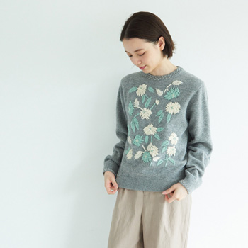 花柄や刺繍はくすんだカラーや同系色の糸を組み合わせて、ヴィンテージ感を大切にしながらも大げさすぎず上品な雰囲気にデザインに。