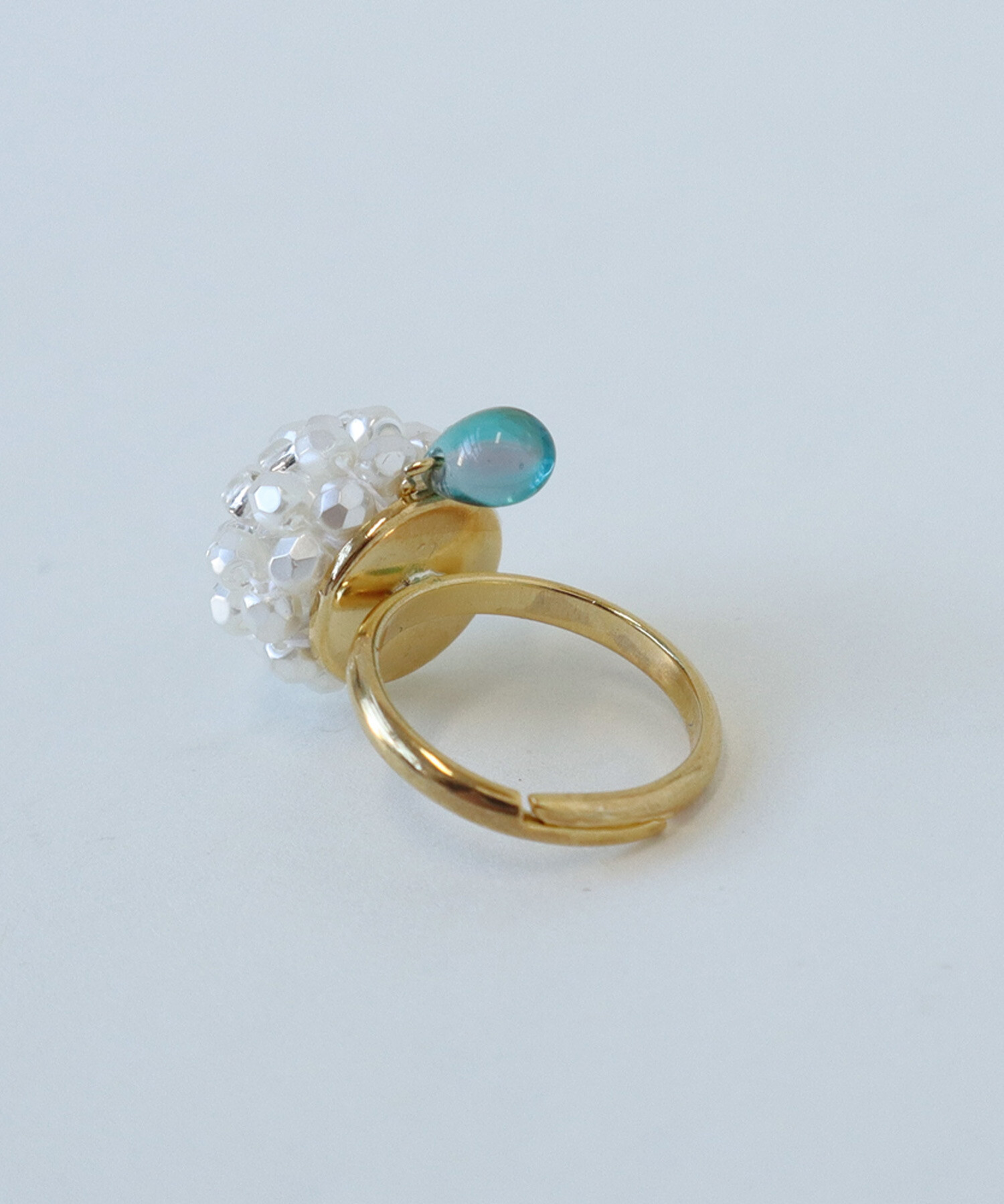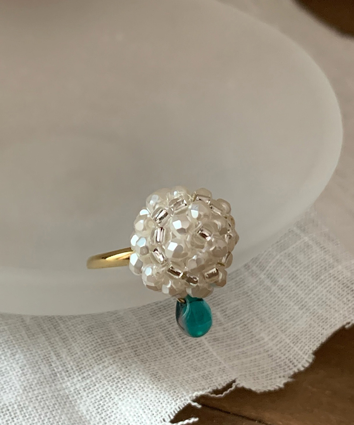 白とシルバーのビーズで丸い形を作り紫陽花を表現しました。