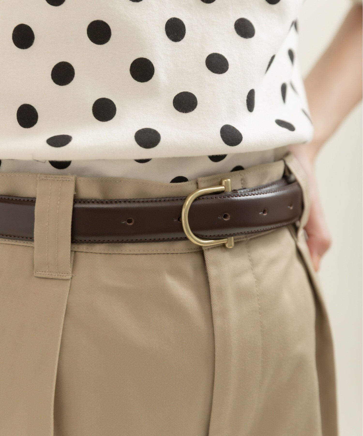 バックルは引っかけるタイプで通した先が内側に入る仕様なので、着用した際スッキリとした見え方が魅力的です。