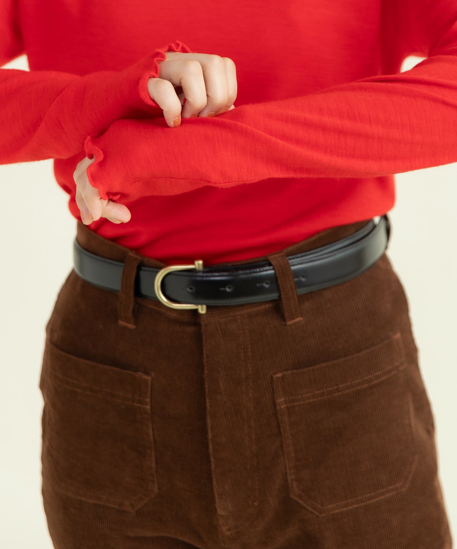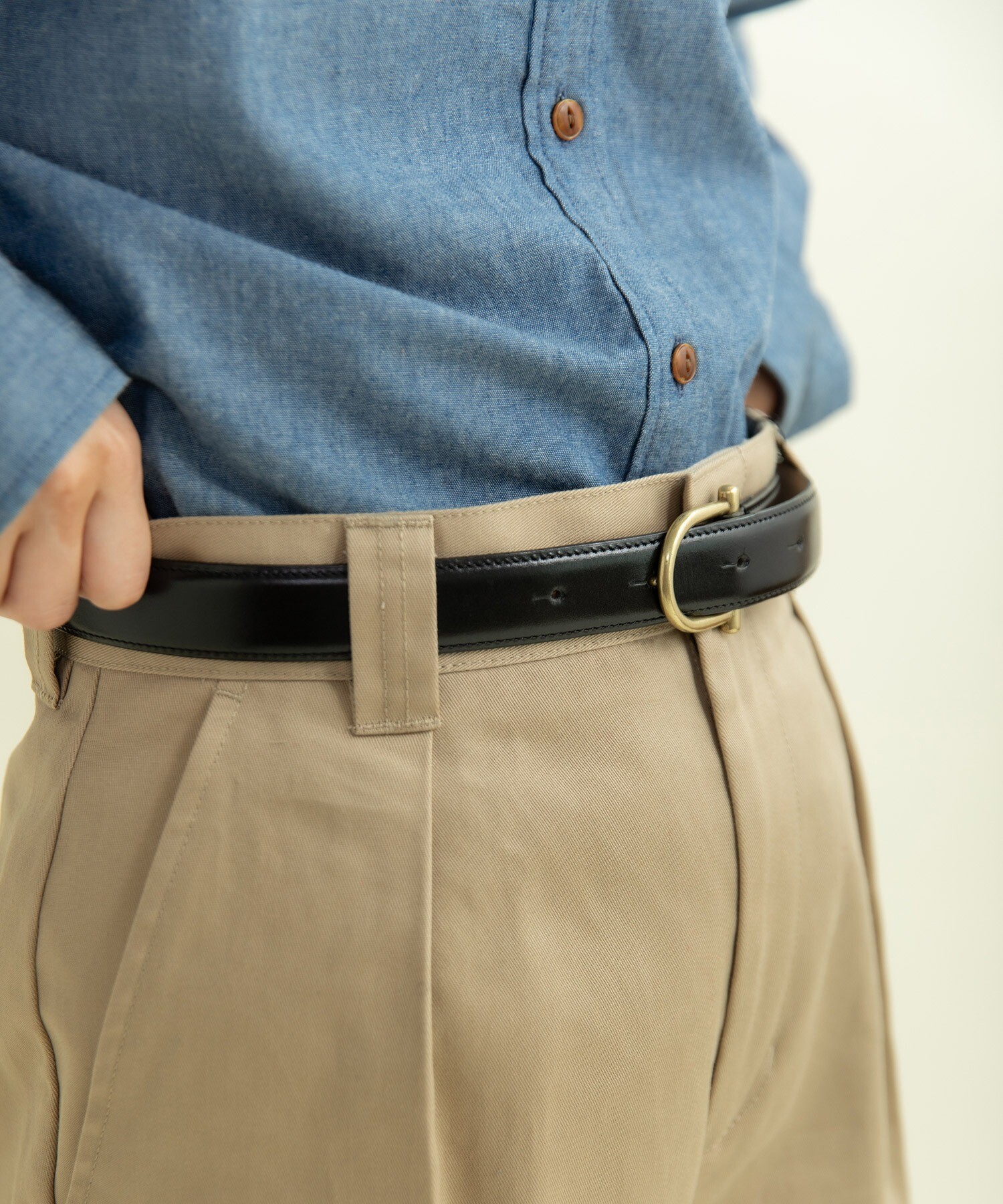 定番の牛革ナローベルト(0101BT001231)よりもぷっくりと太めにお作りすることで、存在感のあるベルトに仕上げました。