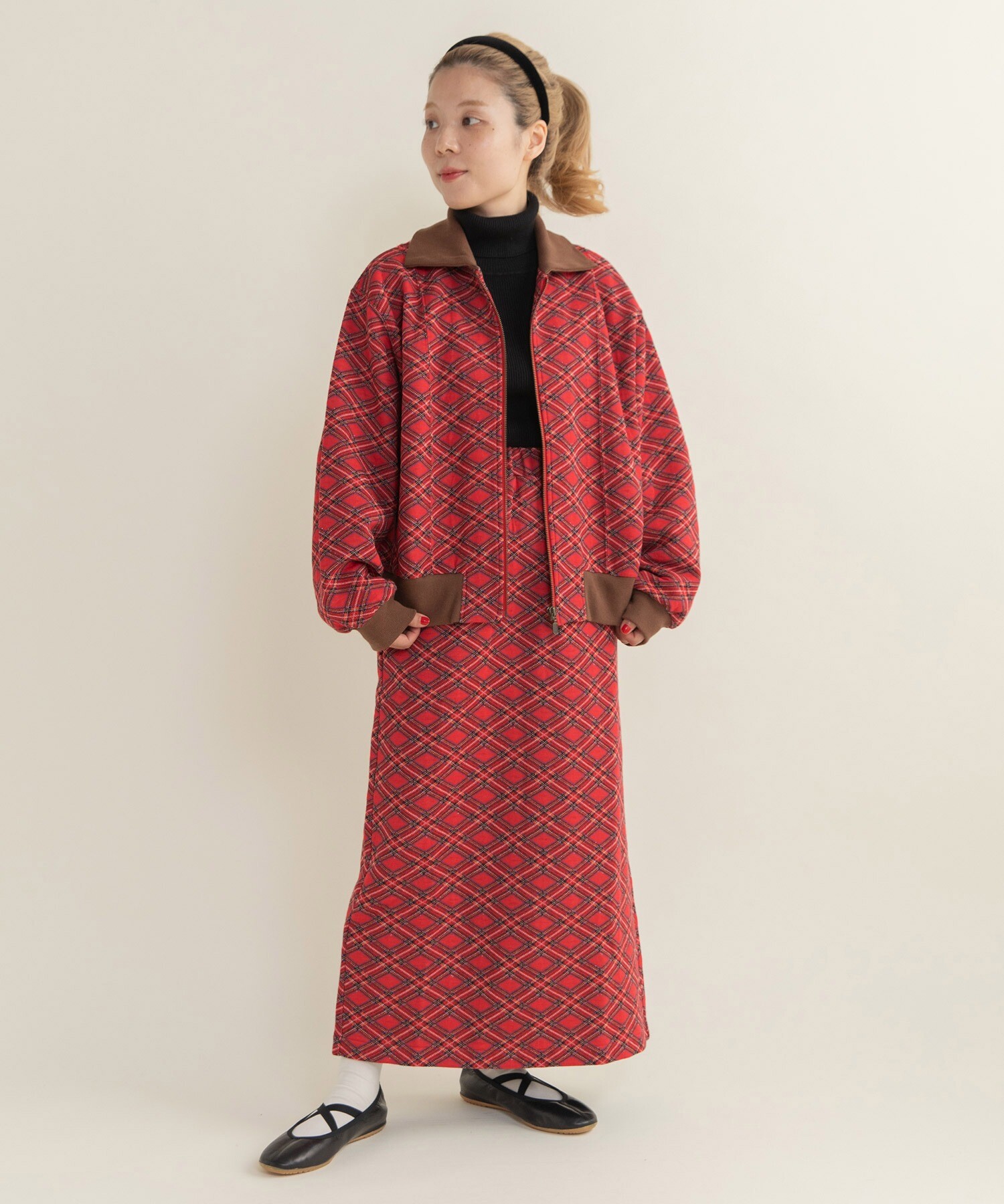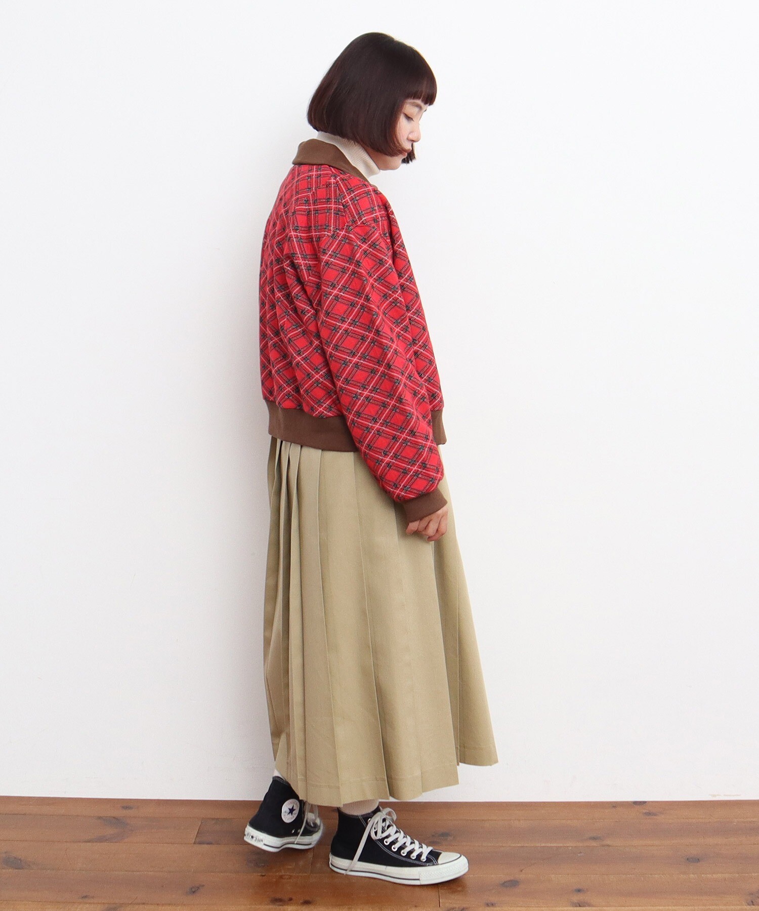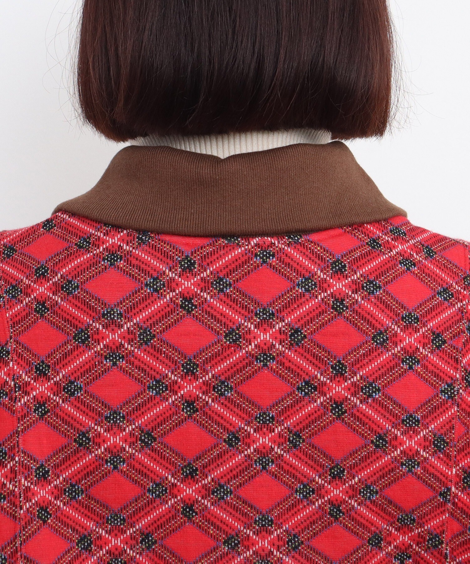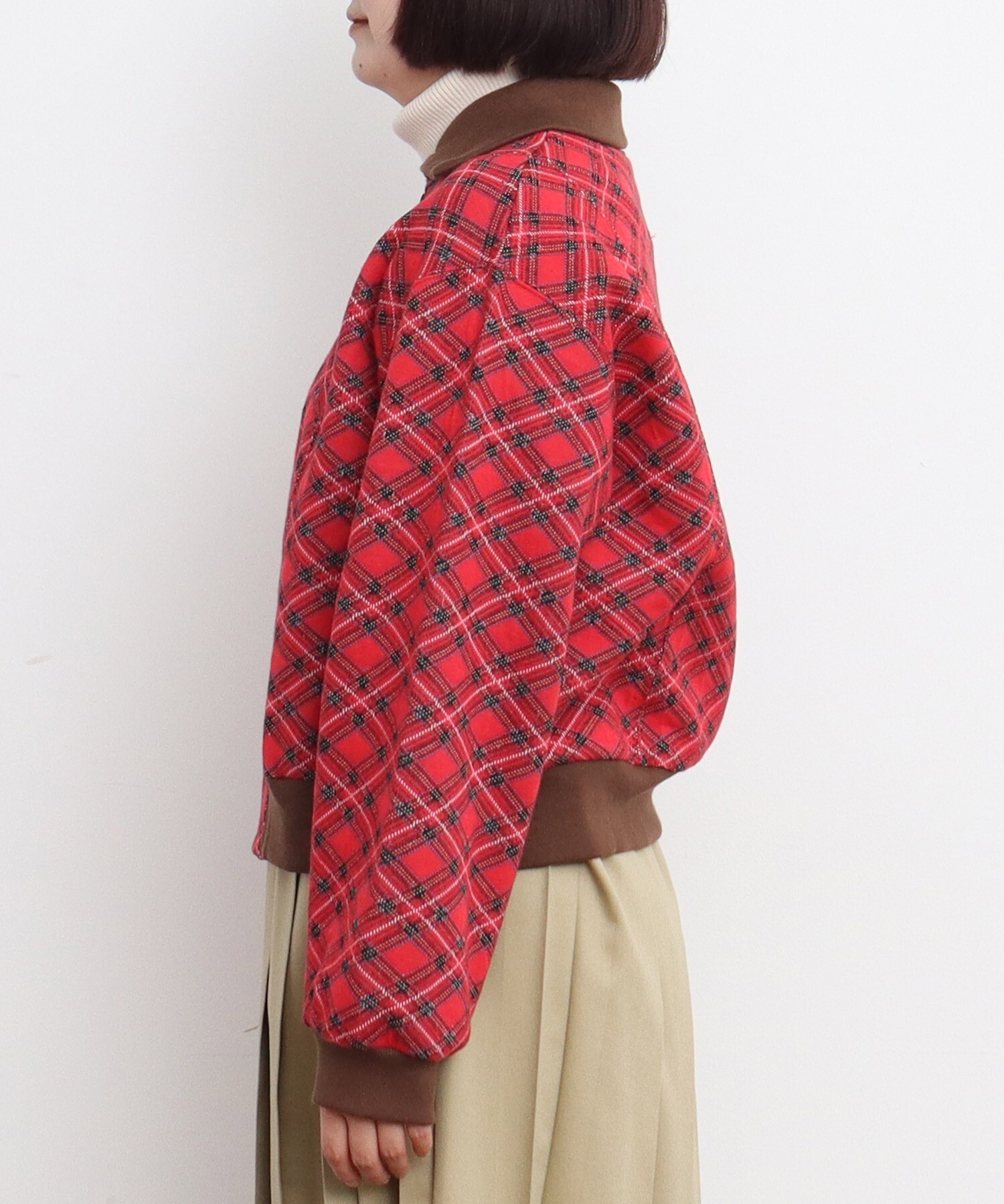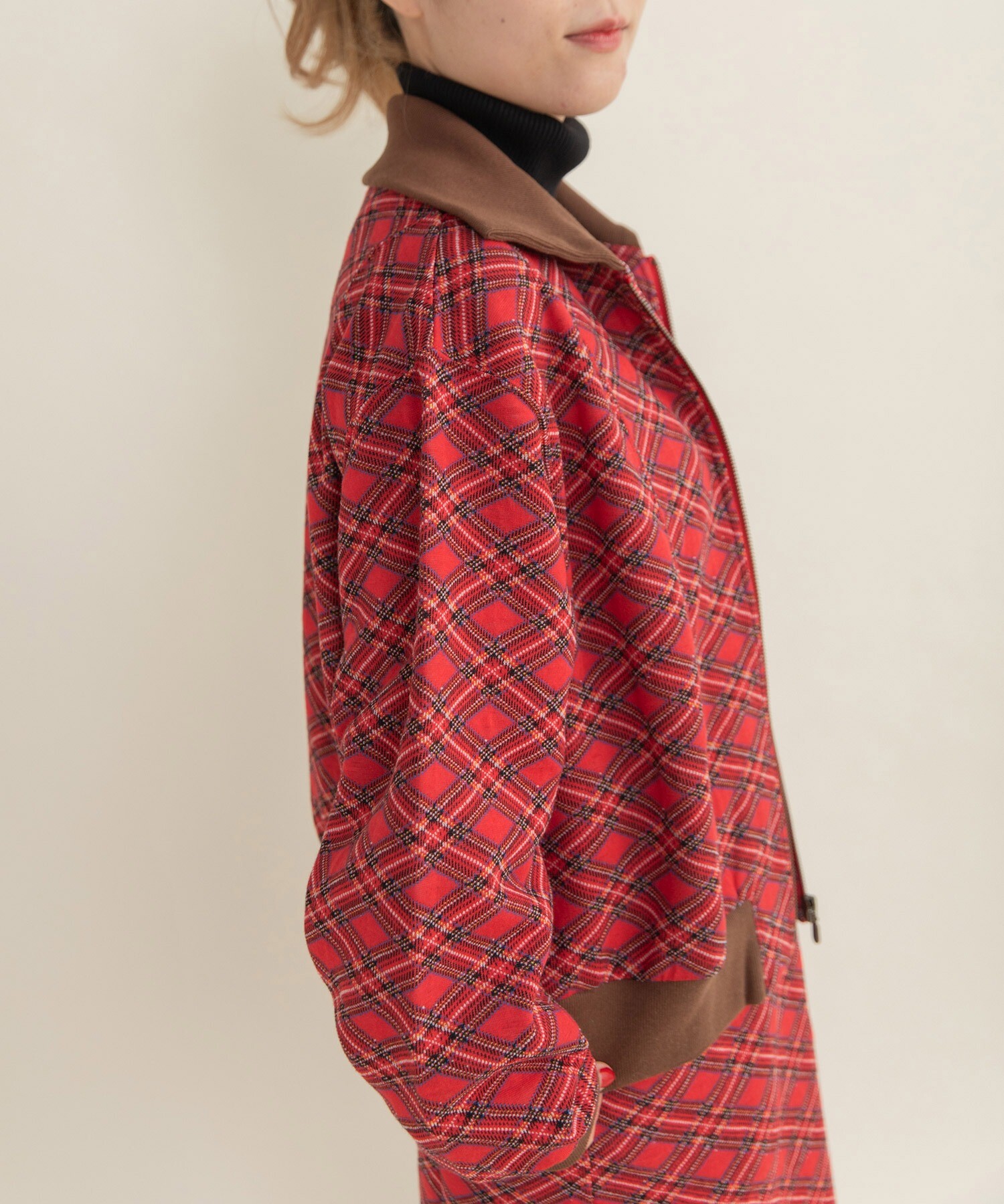 秋冬らしい落ち着いたトーンとの相性はもちろん、チェック柄が華やかな印象なので、身につけるだけで気分が上がるようなそんな特別感の詰まったアイテムです。