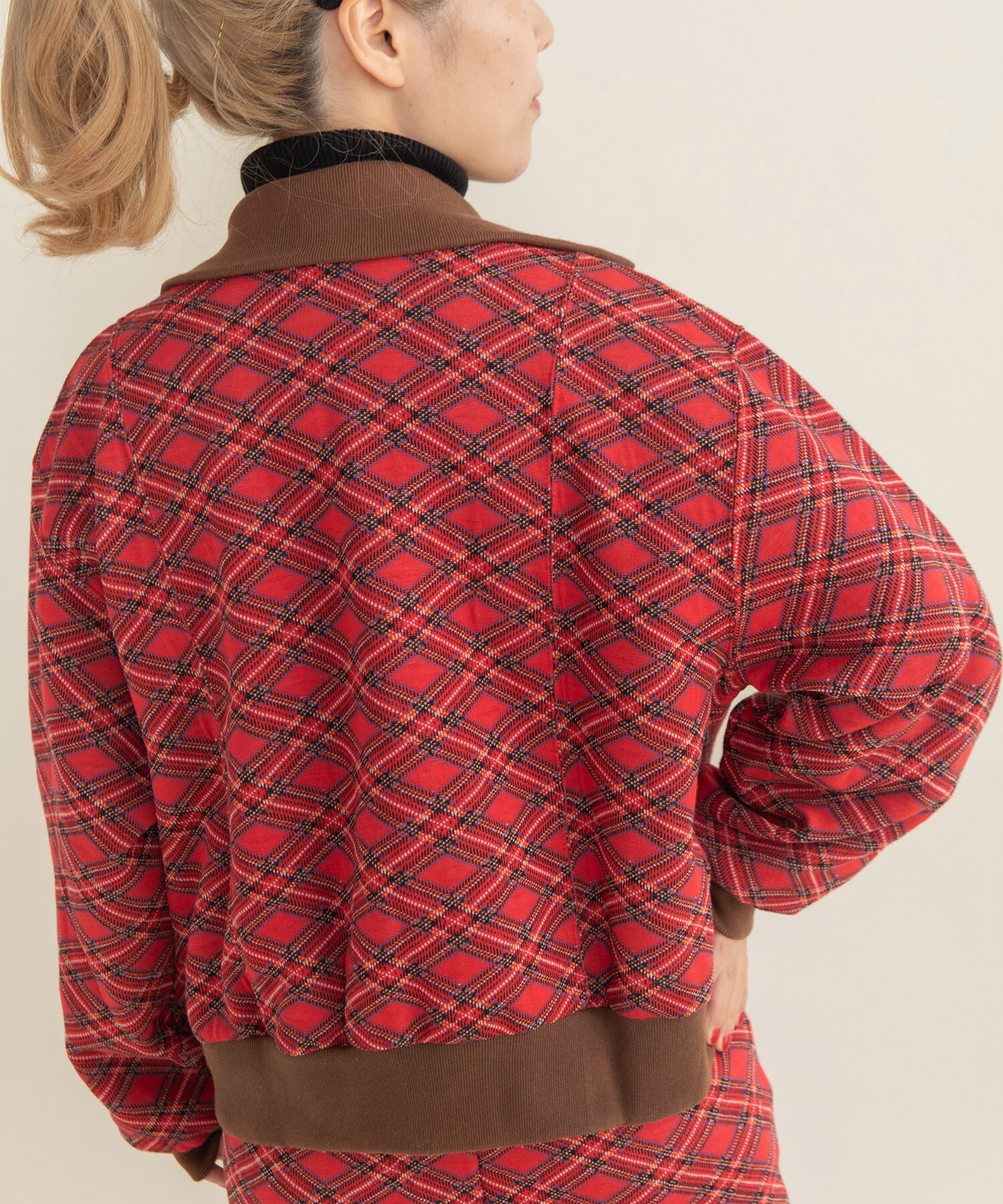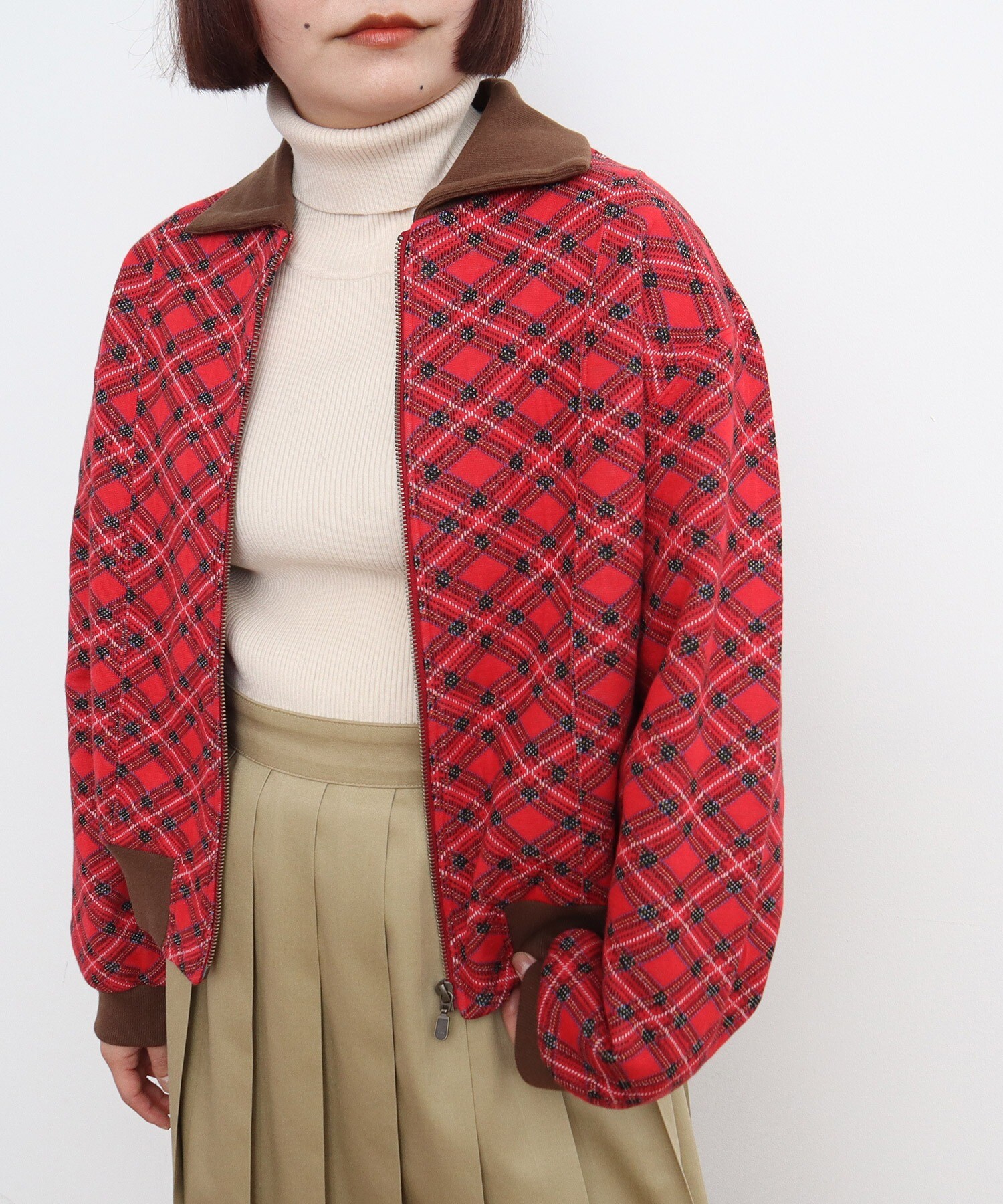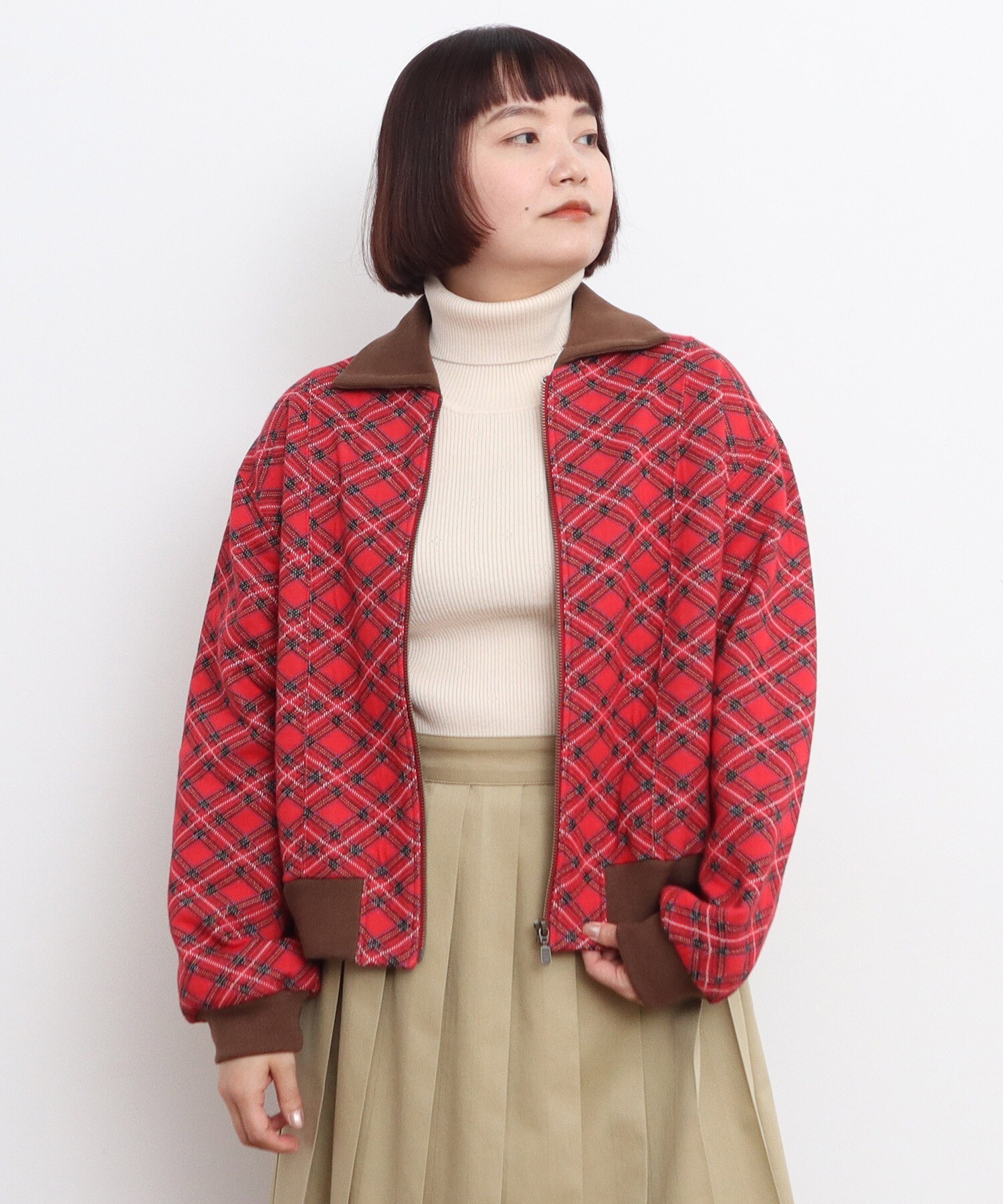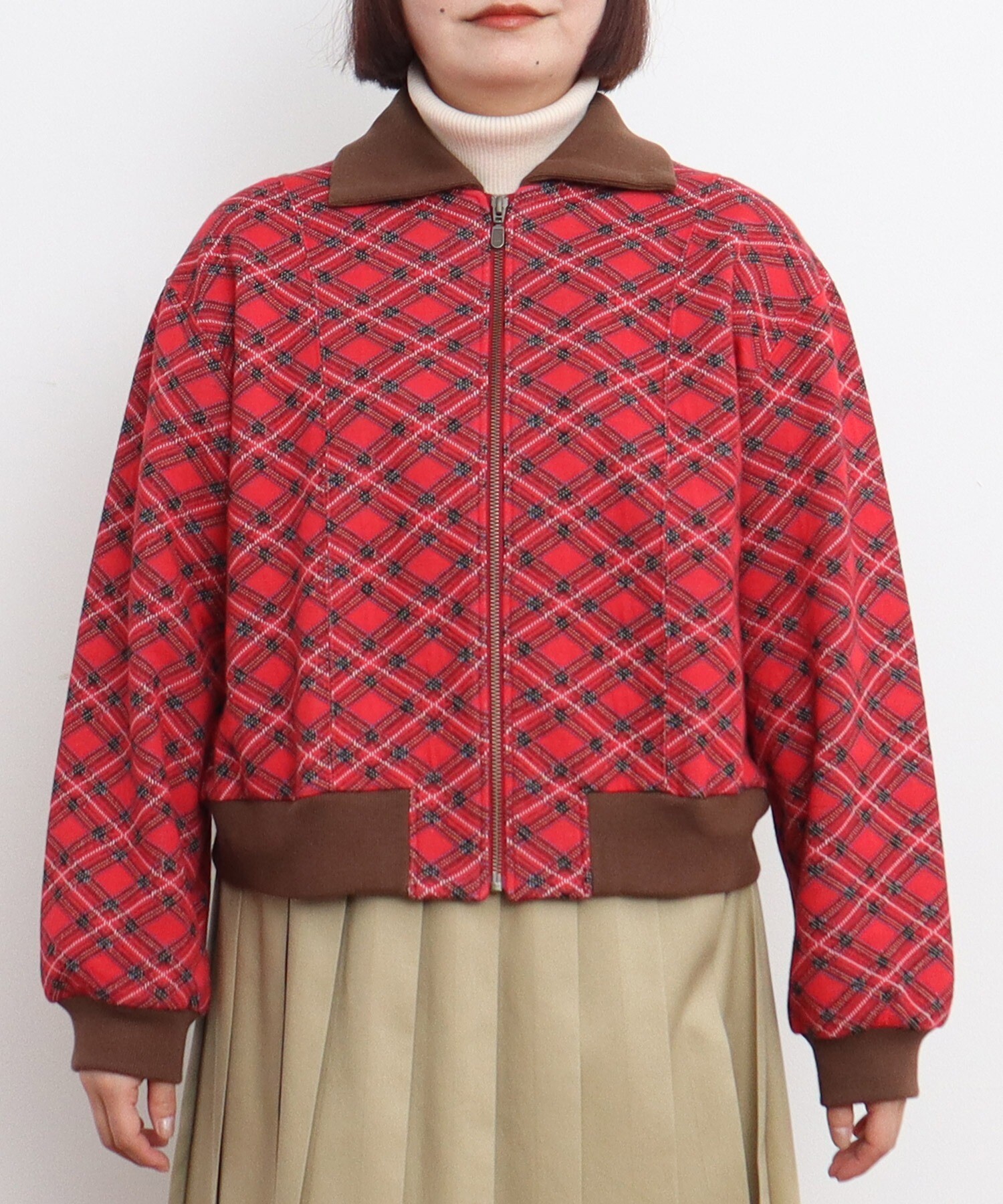 チェック柄キルトジャカード ブルゾン