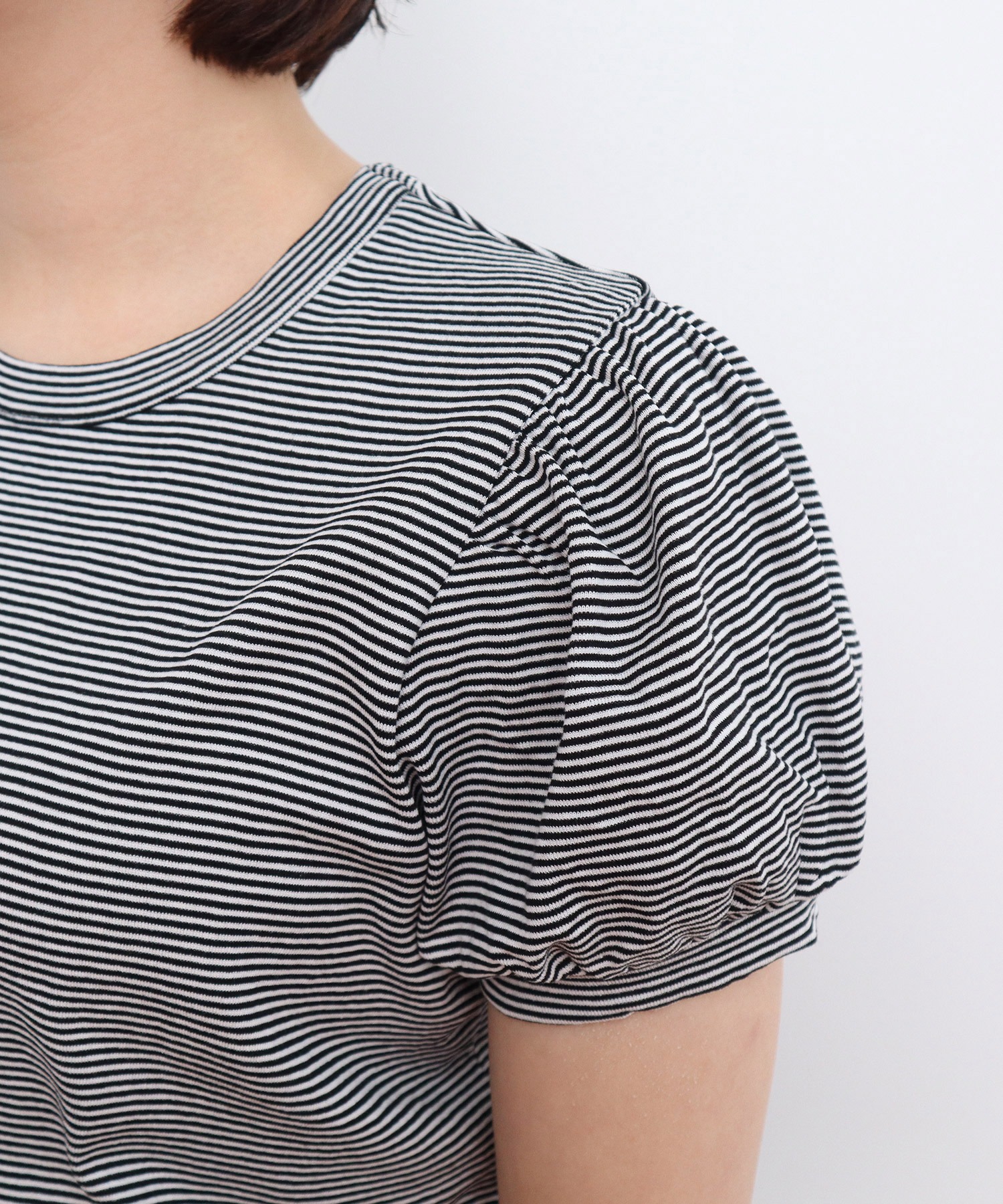パフスリーブのデザインなので1枚着としてはもちろん、スッキリとしたかたちなので、レイヤードのインナー使いにもオススメ。