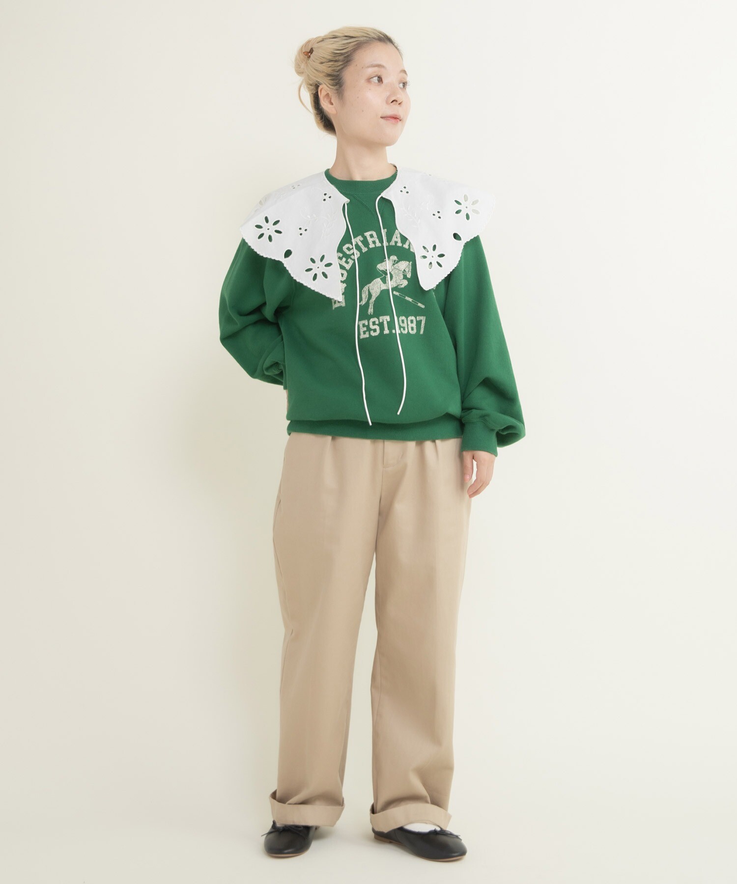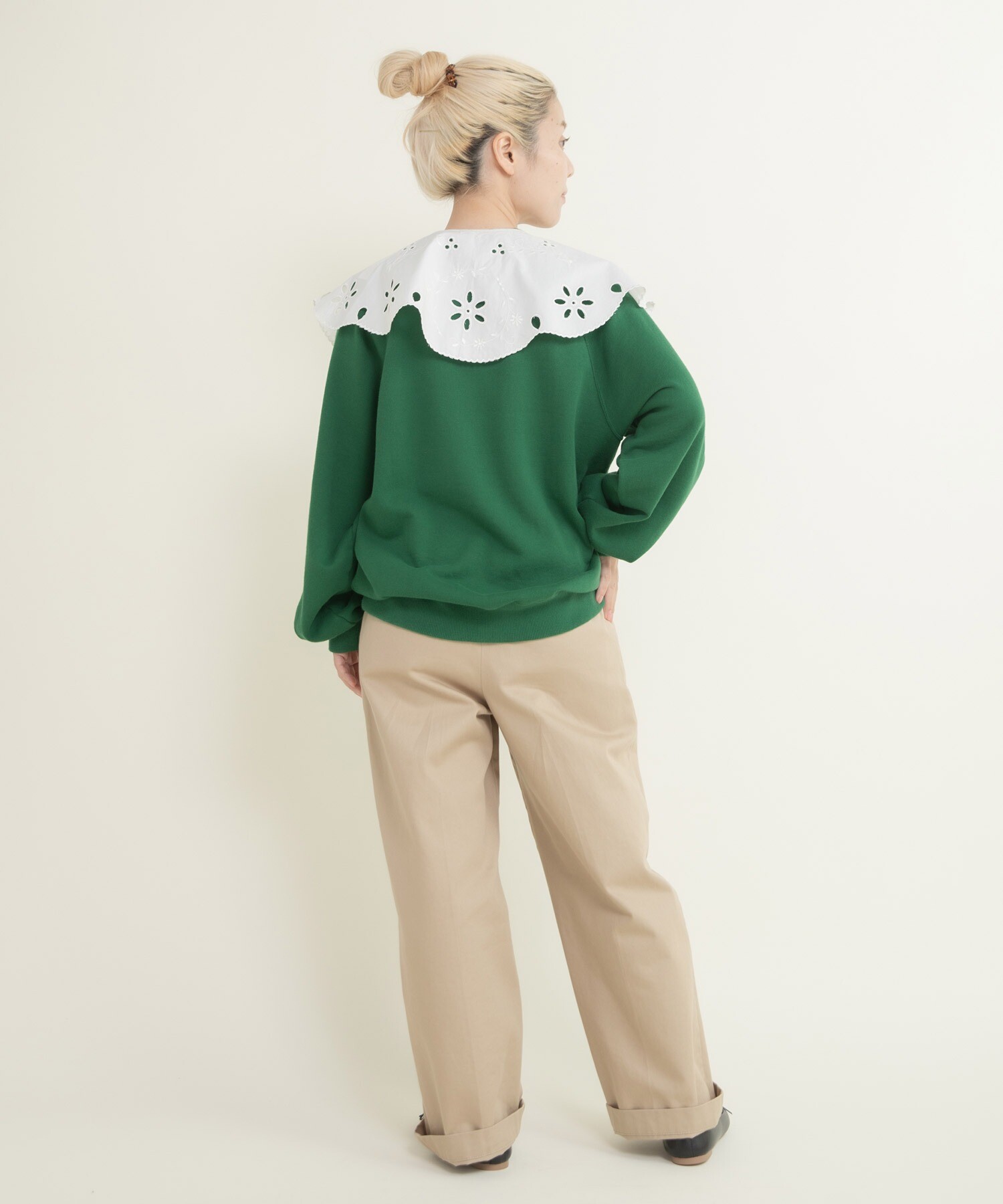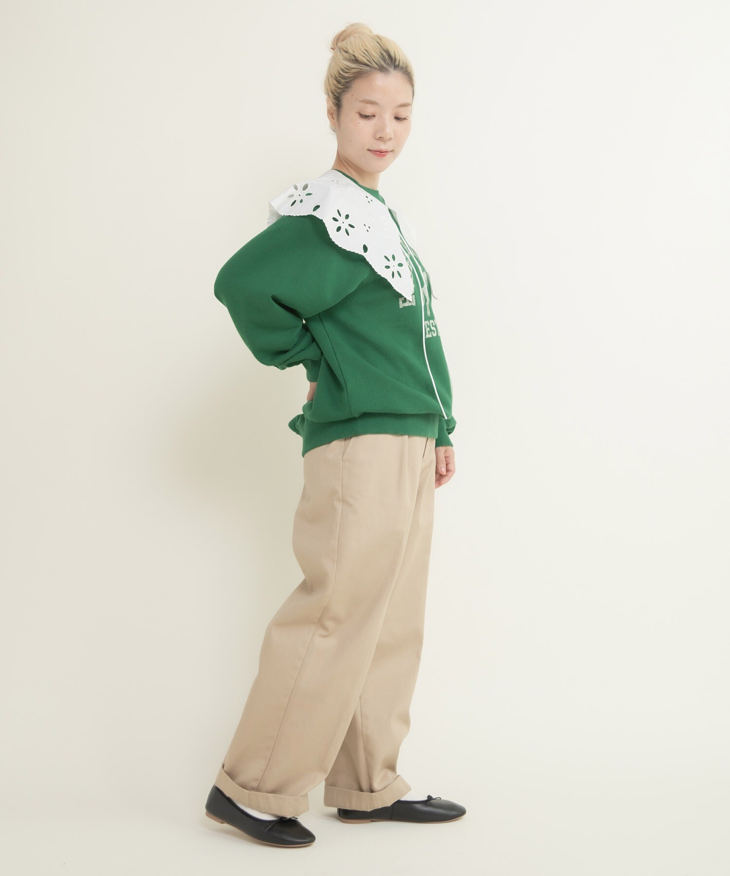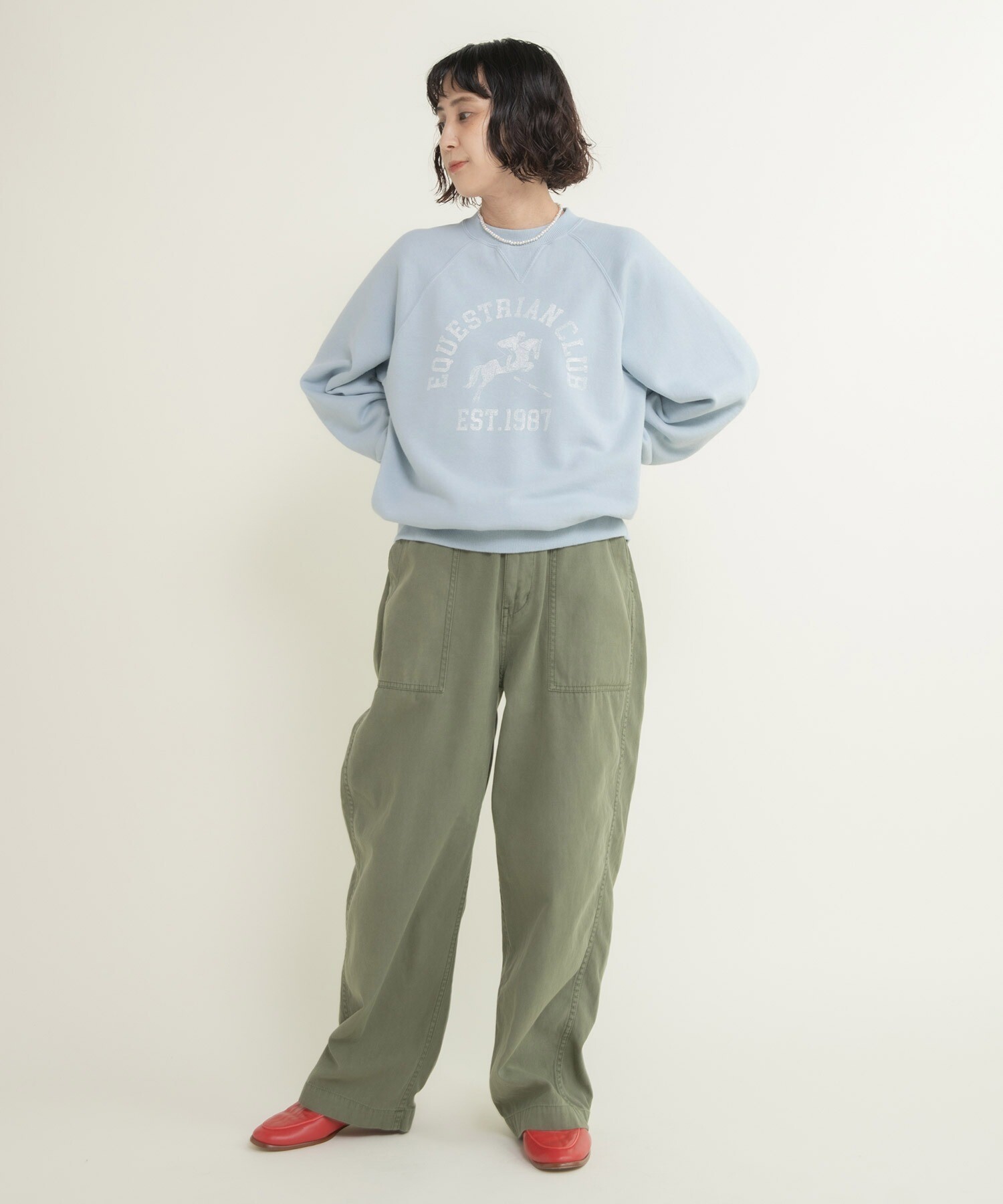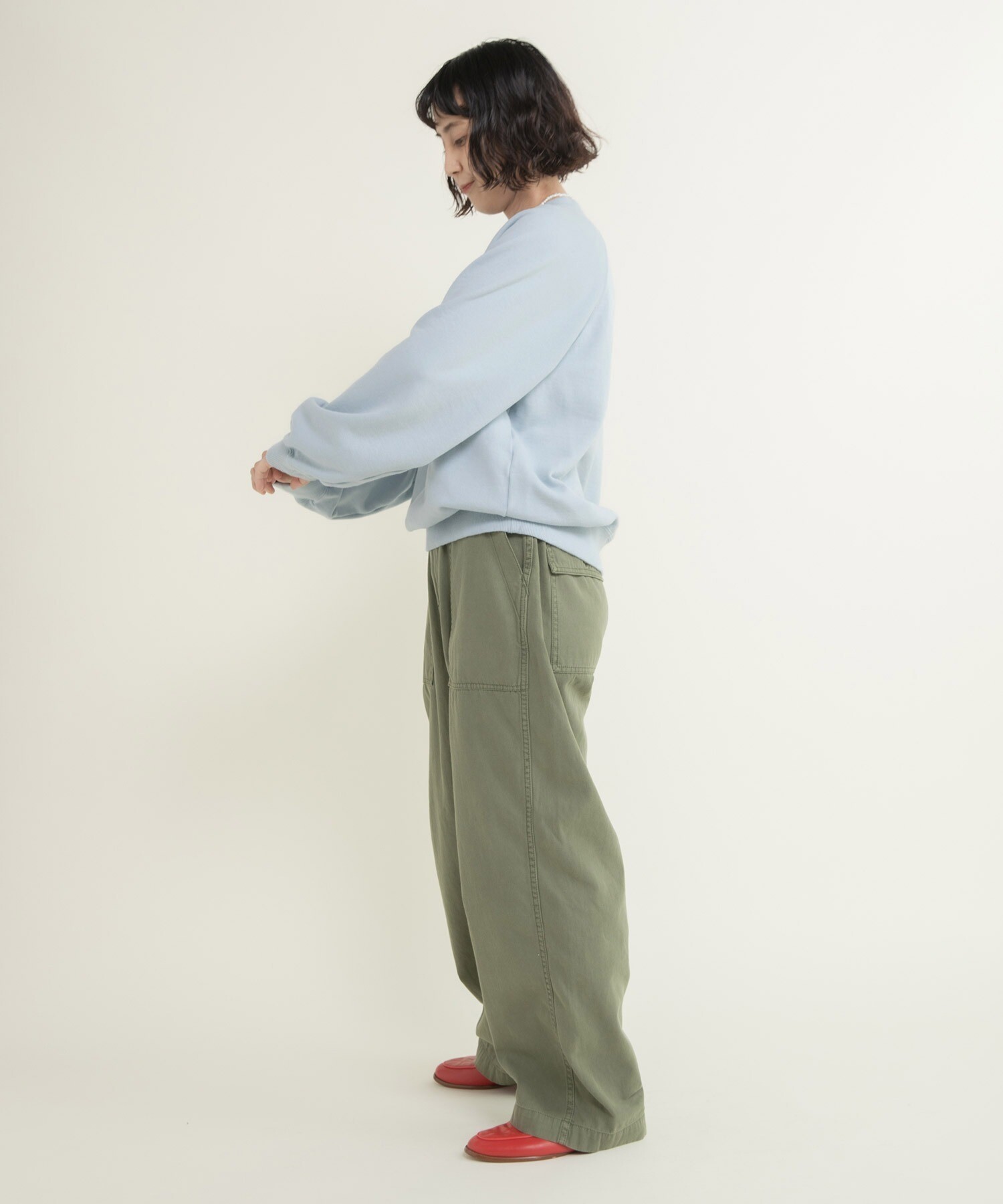 | 素材 | 〈キナリ〉【表地】 コットン100%, 【リブ】 コットン98%, ポリウレタン2% 〈サックス、グリーン〉【表地】 コットン100%, 【リブ】 コットン95%, ポリウレタン5% |