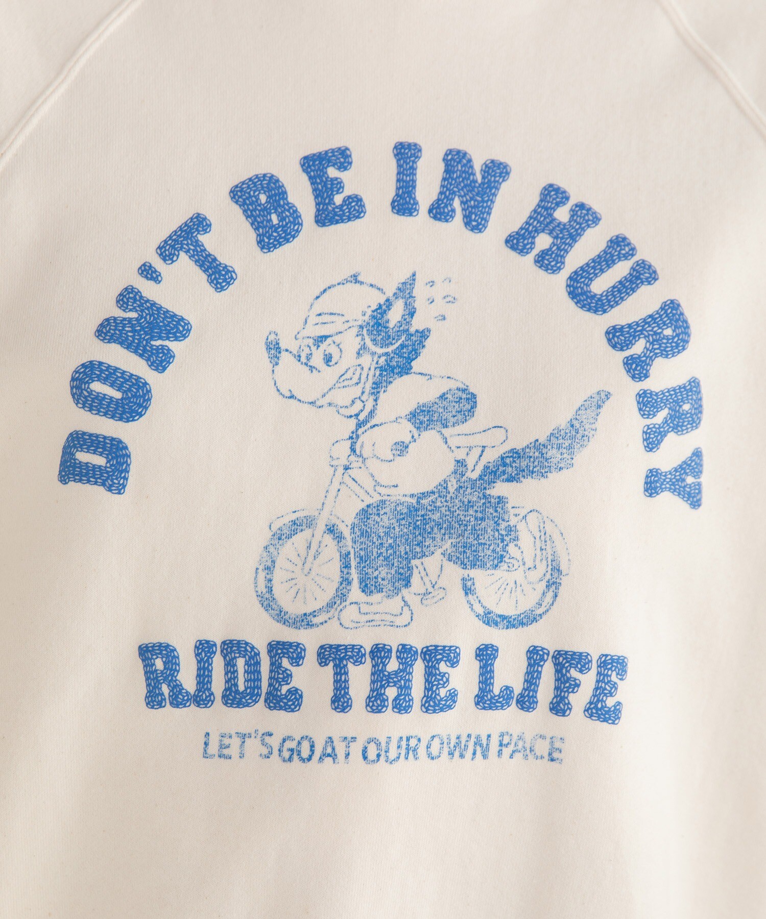 手描きで書かれている刺繡風のロゴは、ぽこぽこと凹凸のある発泡プリントを使用し表面感のあるデザインに。