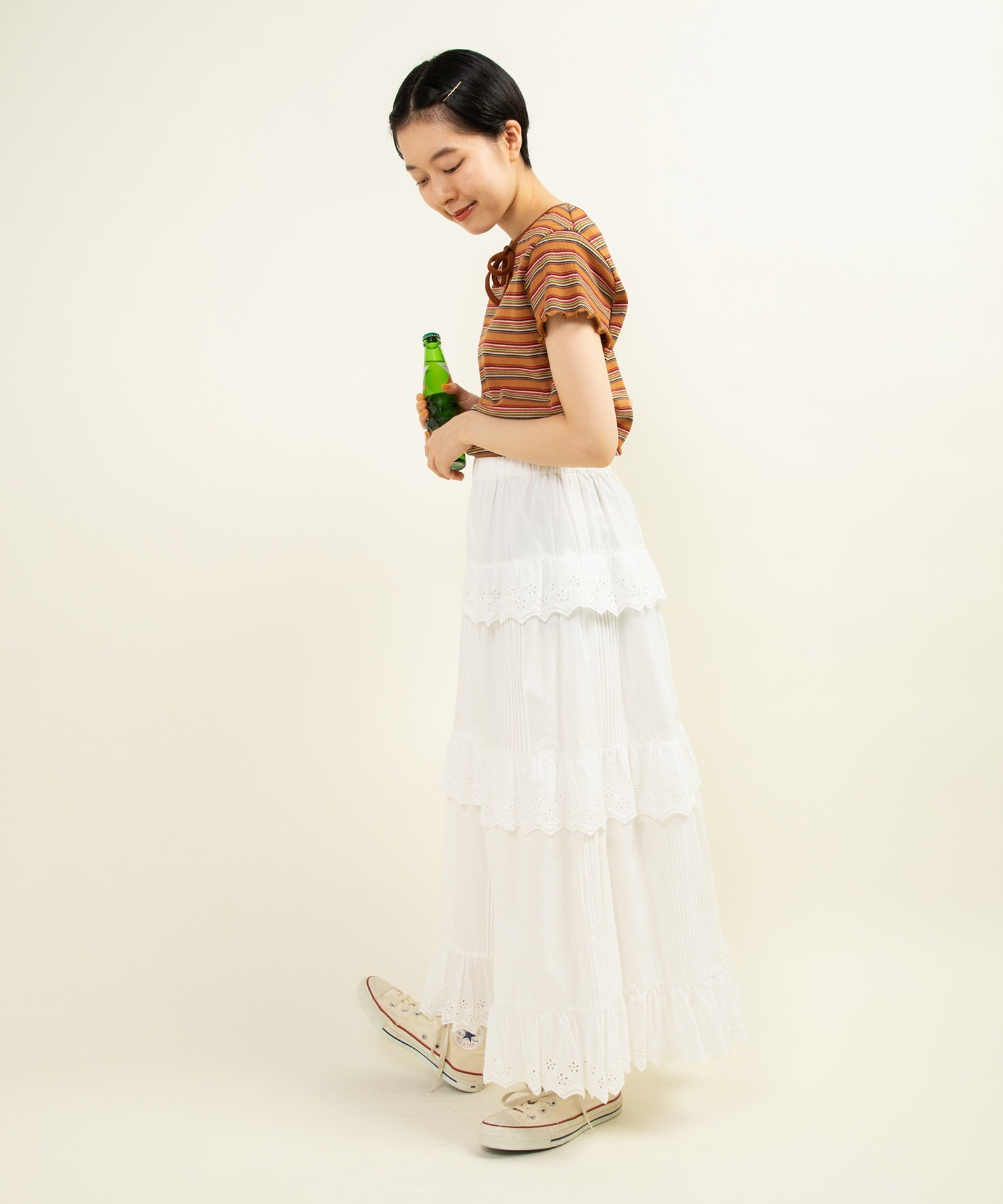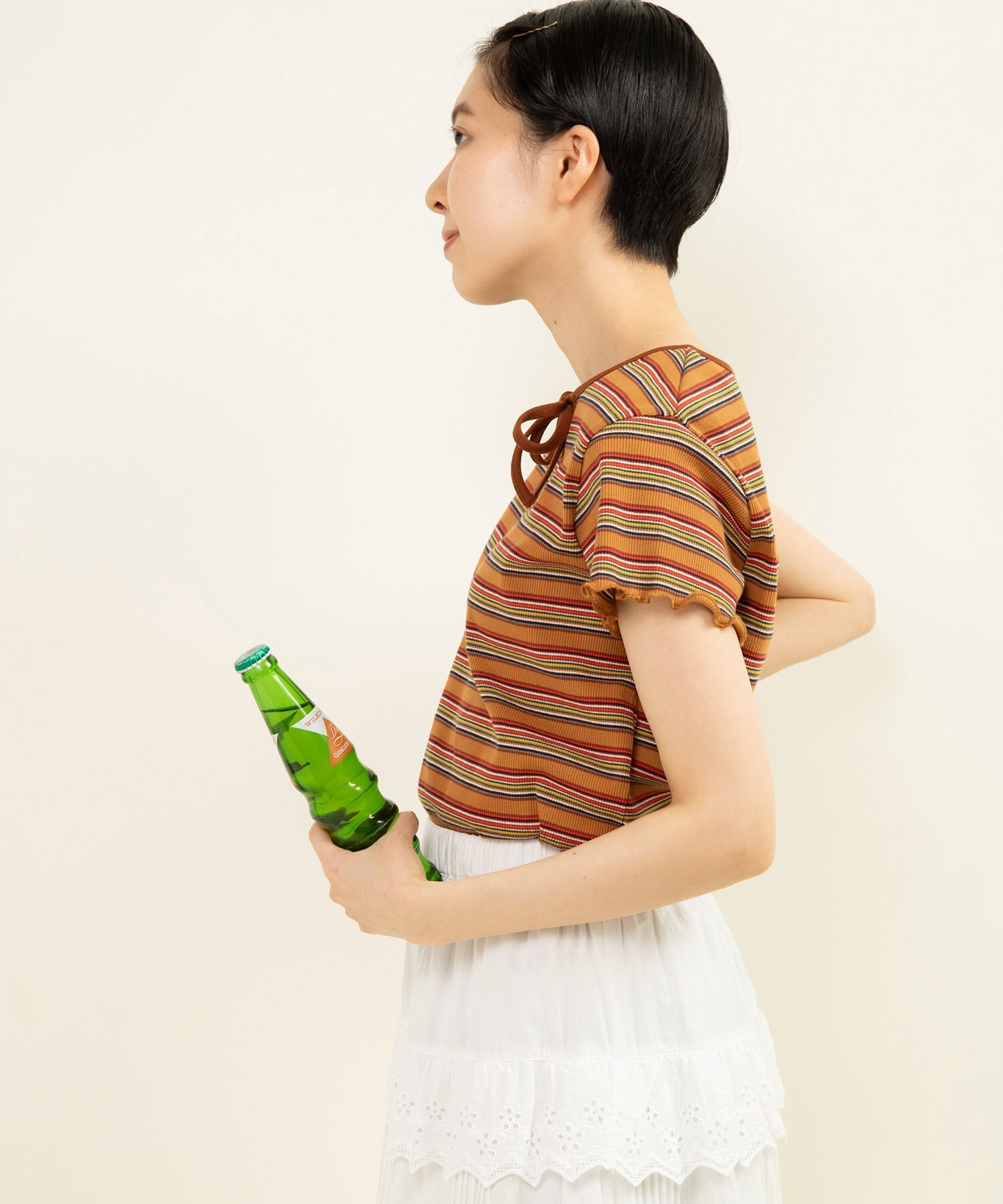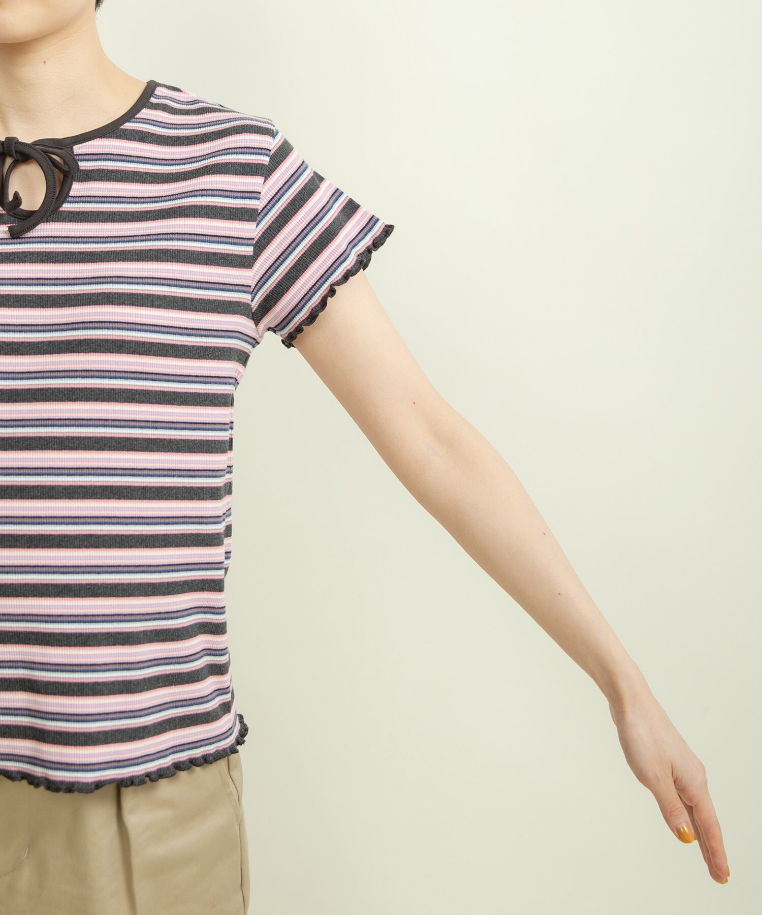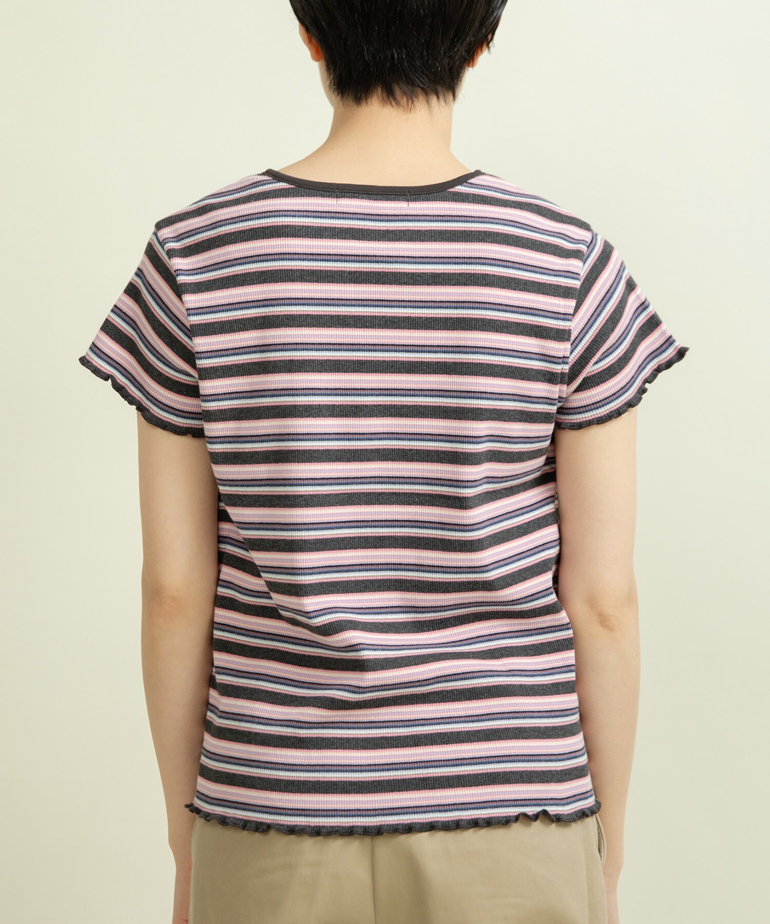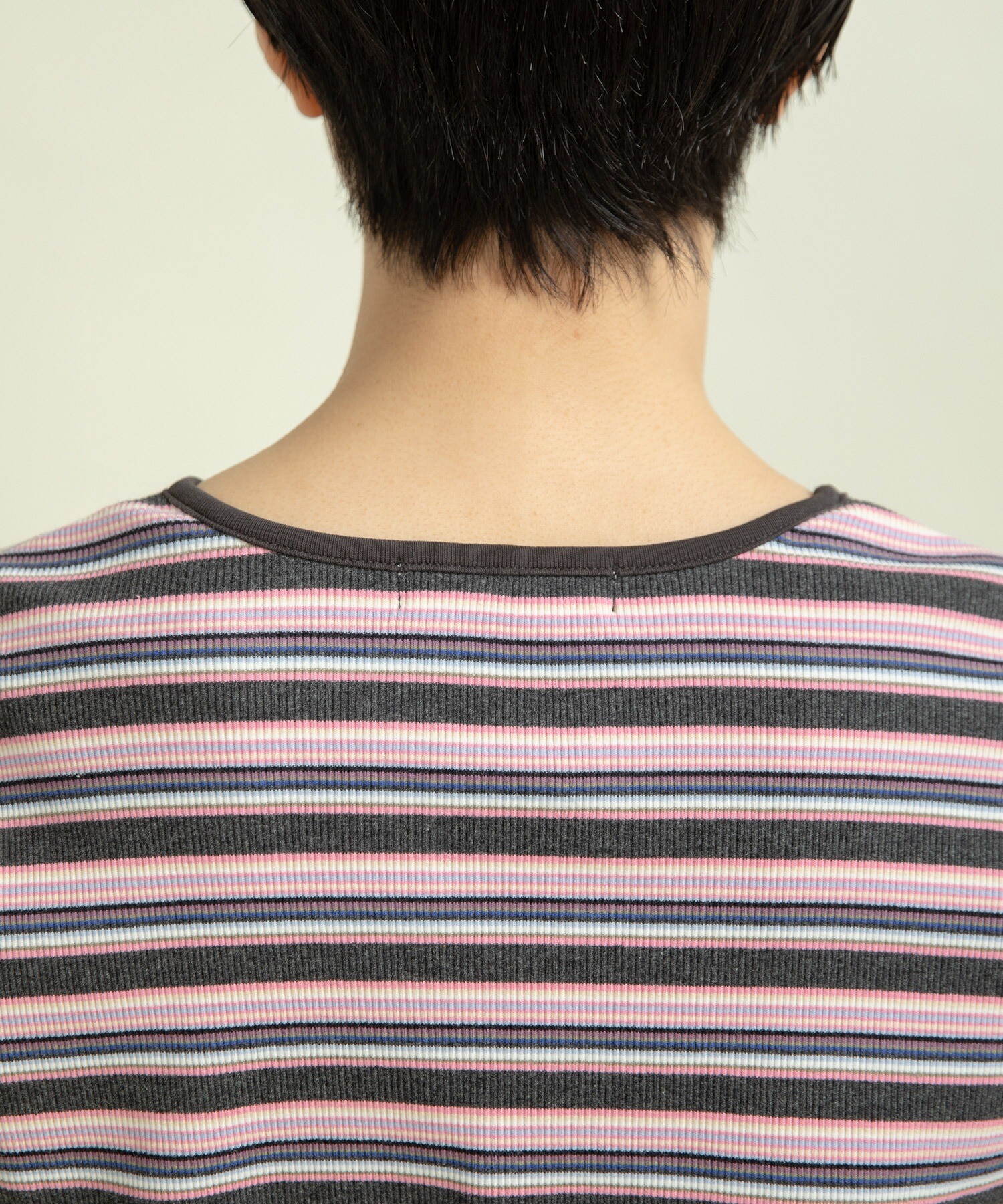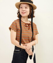 多色でも細かいピッチなのでインナー使いとしてもコーディネートに馴染みやすく、落ち着いたトーンなので、まだまだ暑いけど少し秋の気分を取り入れたい時にもオススメ◎