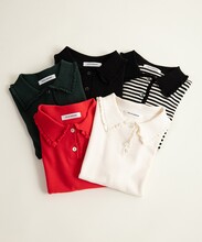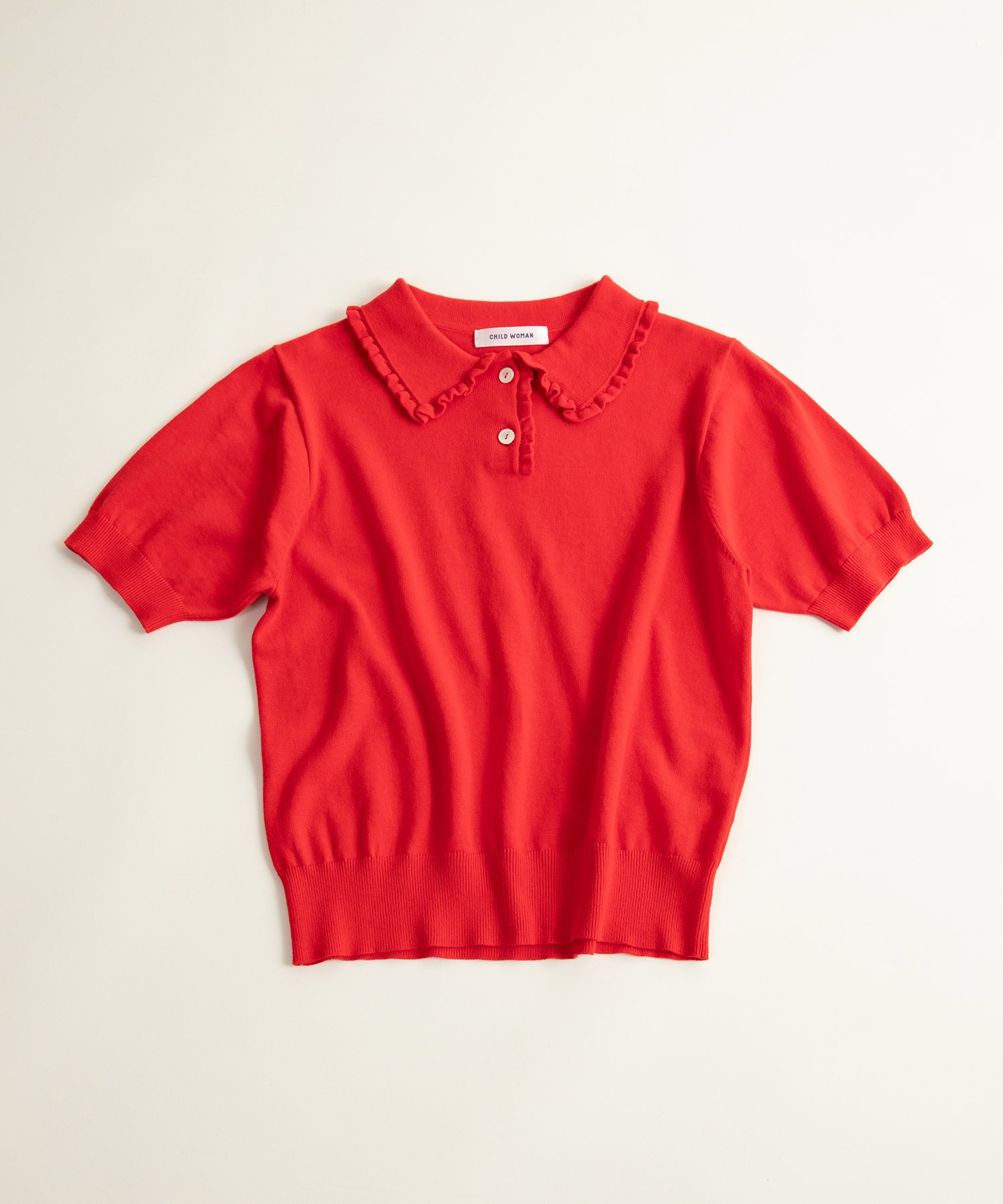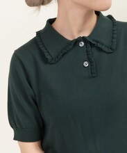 メンズライクな印象のポロシャツを襟にフリルを施し、ブランドらしい一着に。
