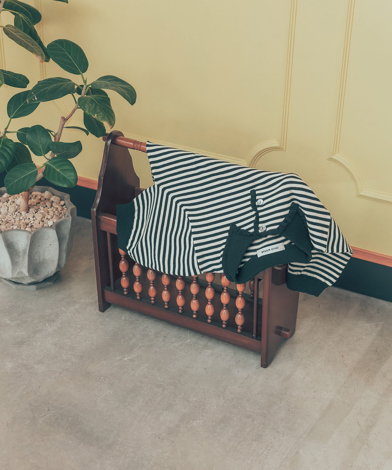 ニットでもシャリ味のある強撚綿を使い、ドライタッチでさらっと涼しく、夏にも着やすい素材でお作りしました。