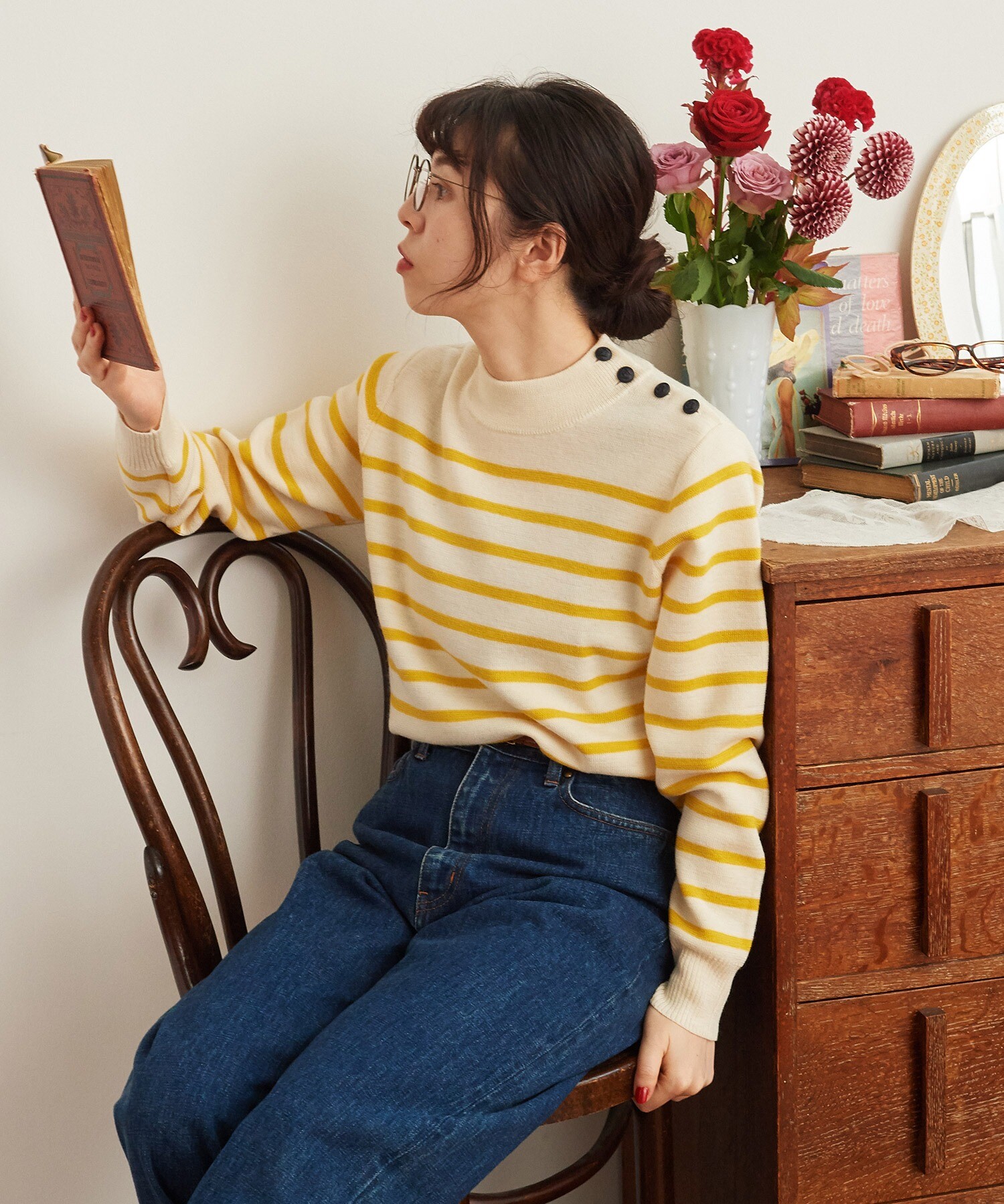 肩ボタンのデザインもシンプルながらアクセントになってくれます。