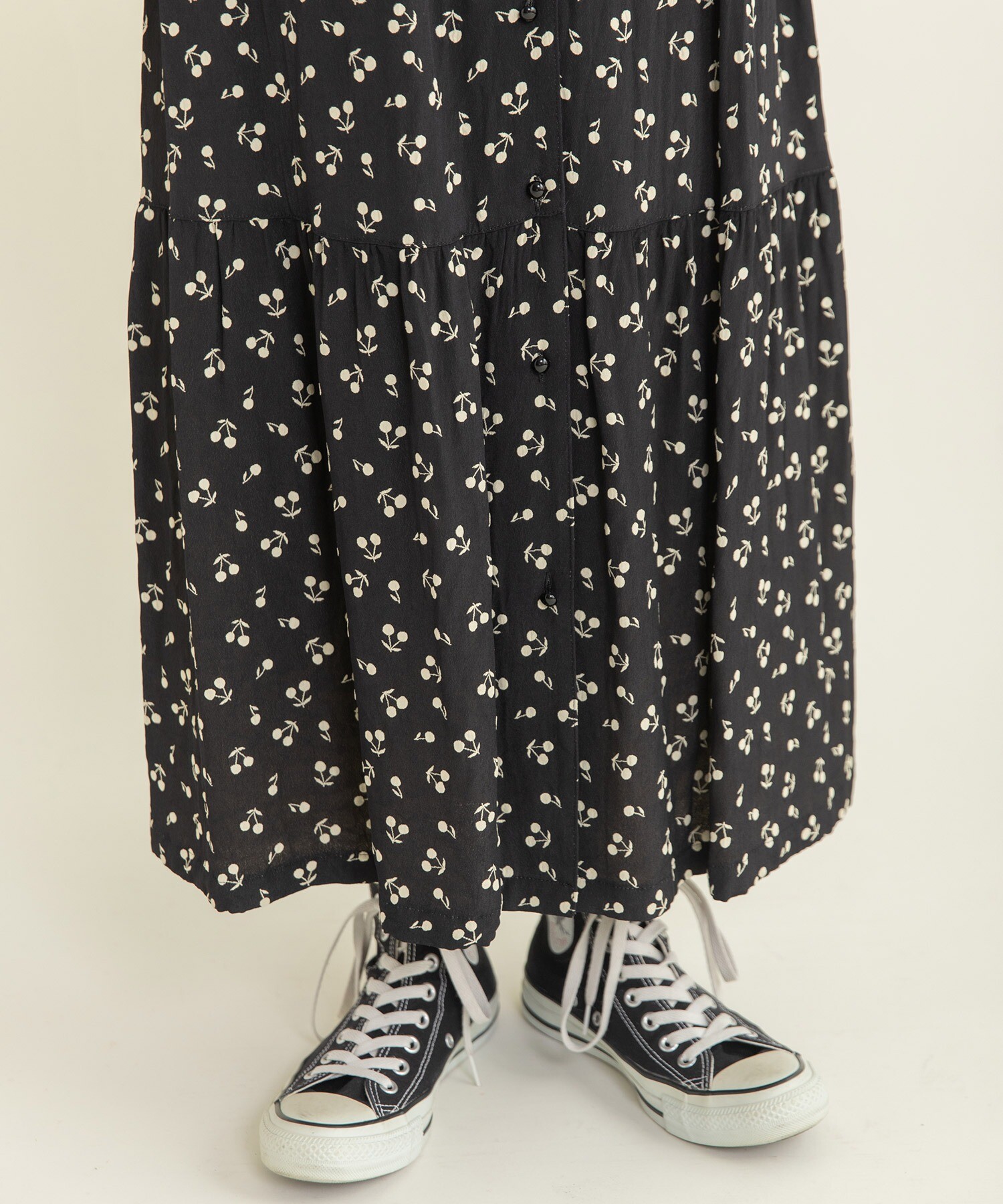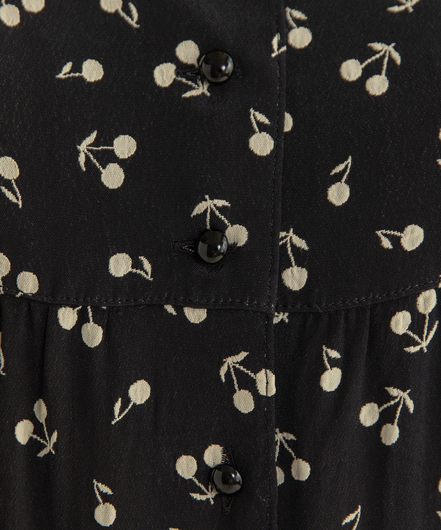 落ち着いたクロベースなので、チェリーモチーフでも甘すぎず、モノトーンの配色でクラシカルな印象に。