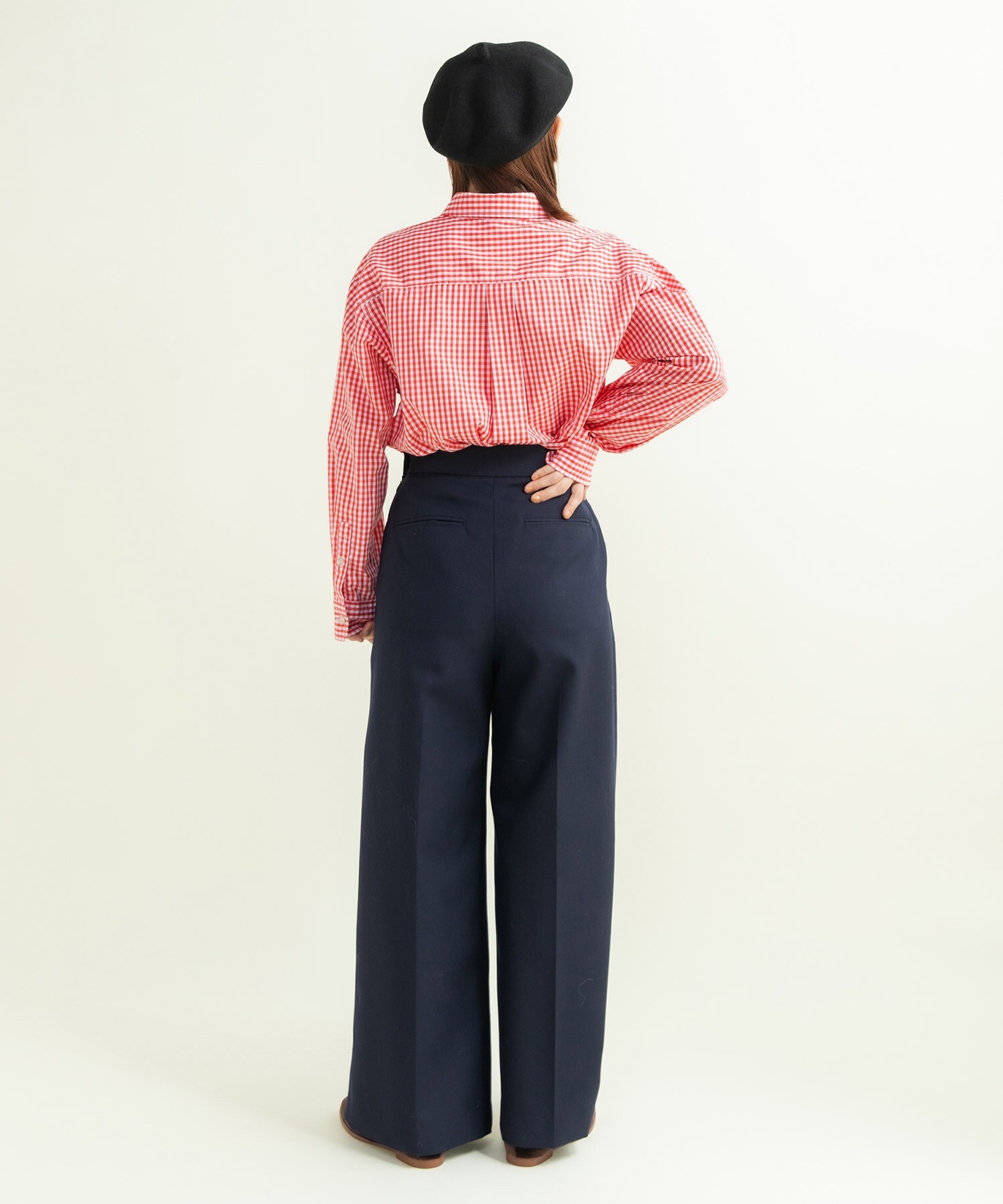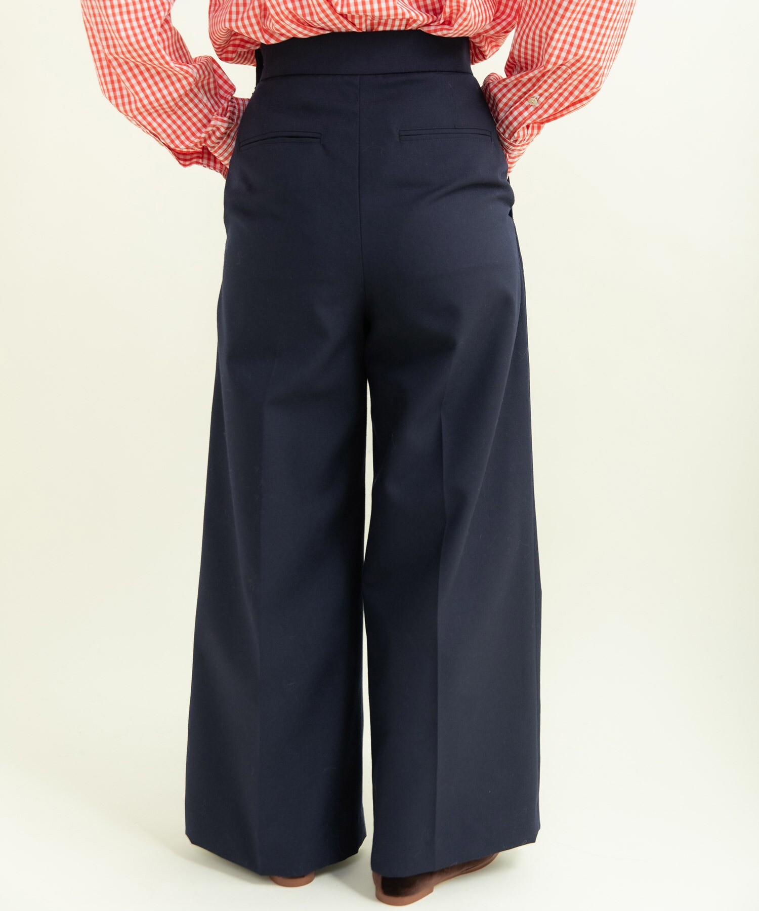 後ろウエストの内側にはホール付きのゴムが入っている為、お好みで微調整も可能です。