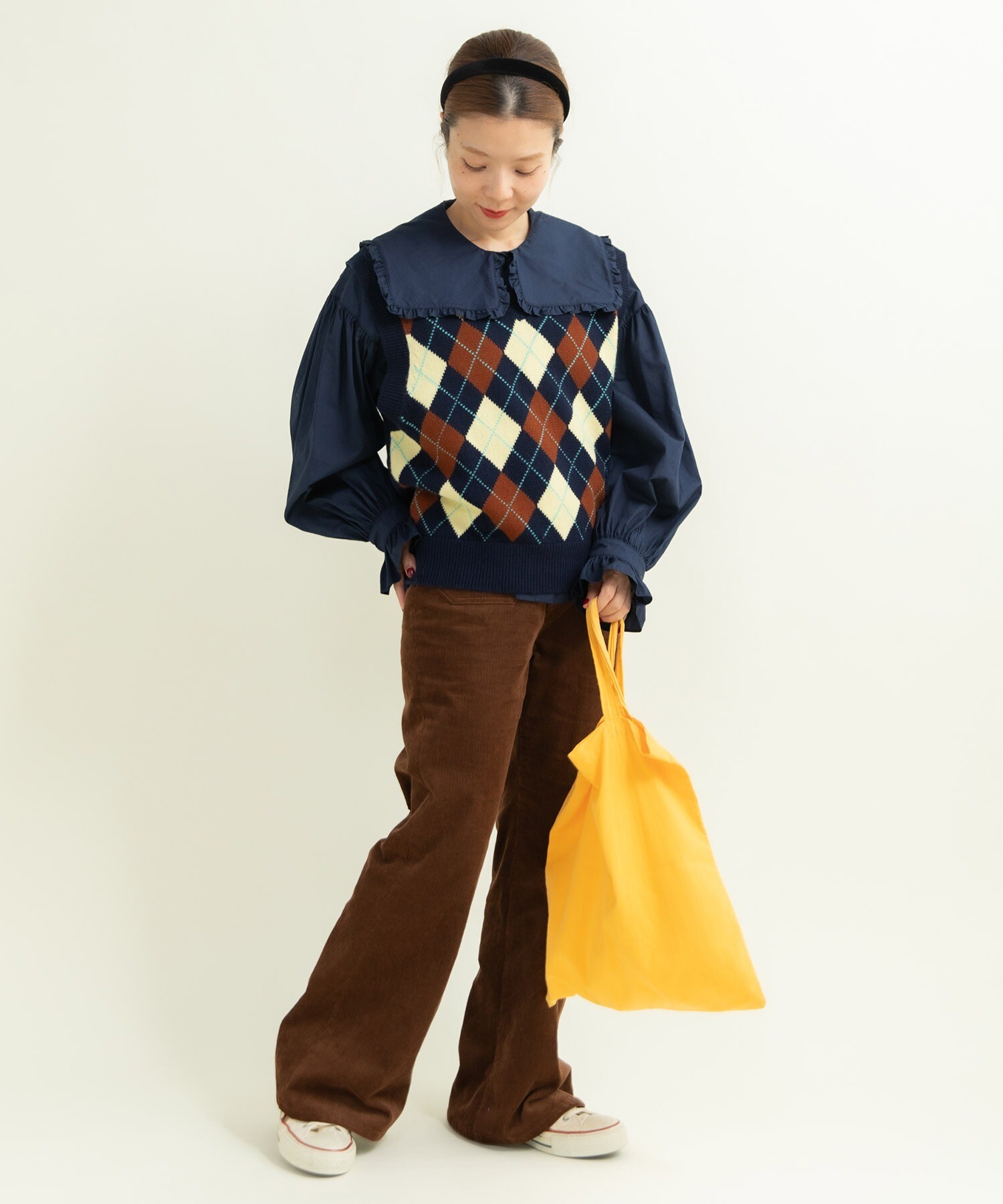ガーリーなブラウスと合わせてとことんレトロにも、ざっくりニットと合わせて冬らしいコーディネートにも活躍します。