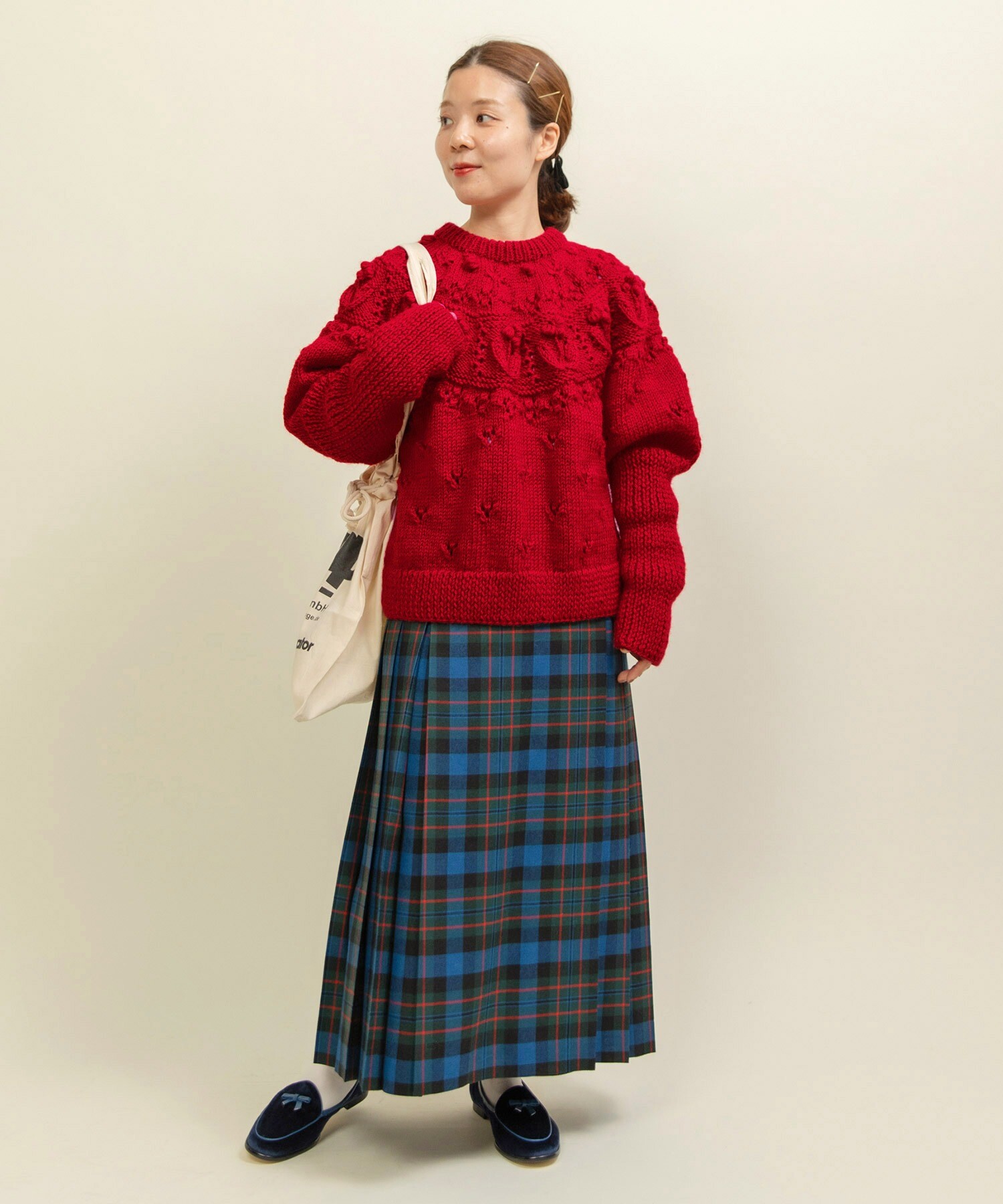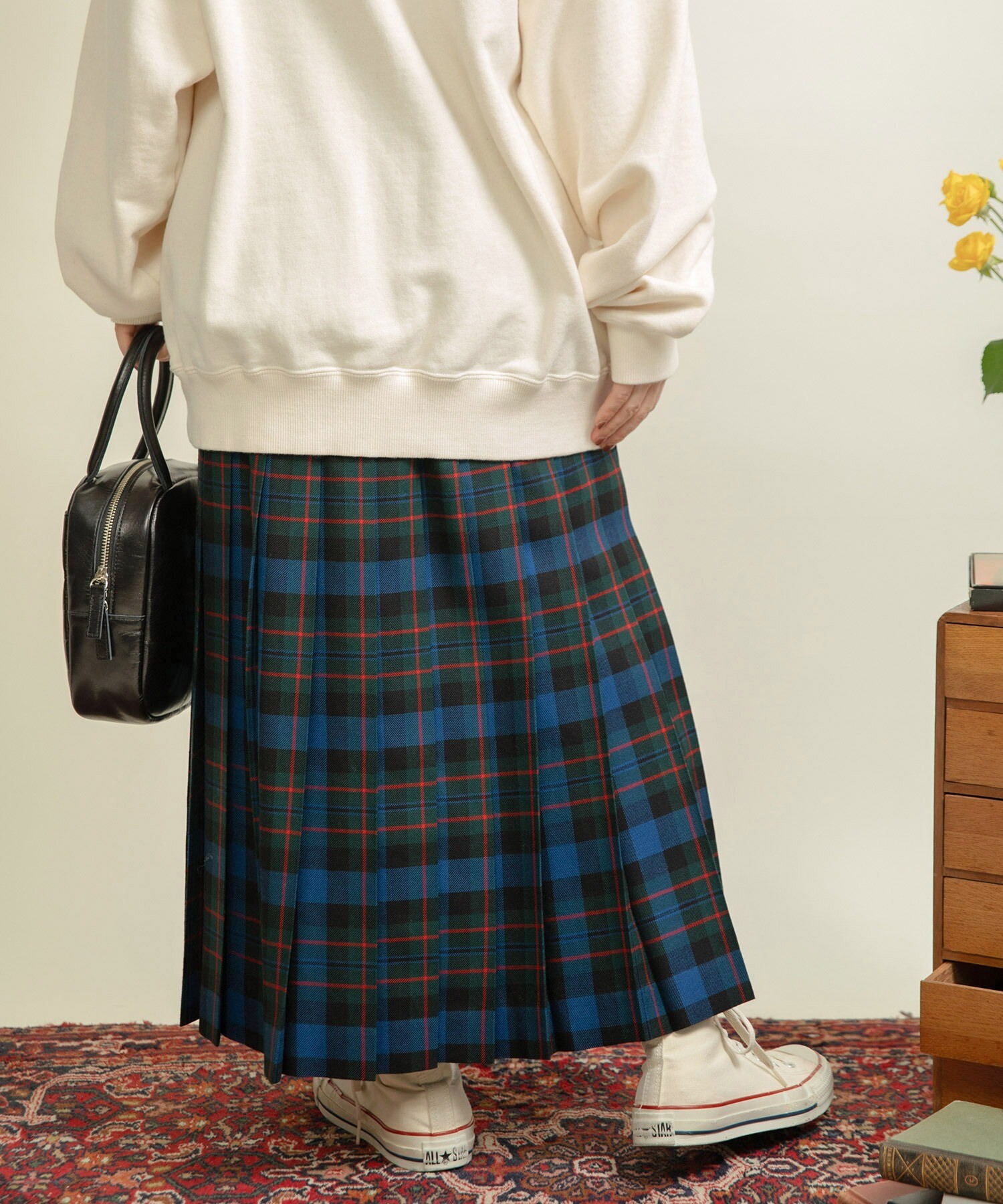 ブラウスや革小物、ベレー帽などを合わせて、とことんトラッドにまとめて頂いたり、スウェットと合わせてカジュアルに落とし込んだスタイリングにも活躍します◎