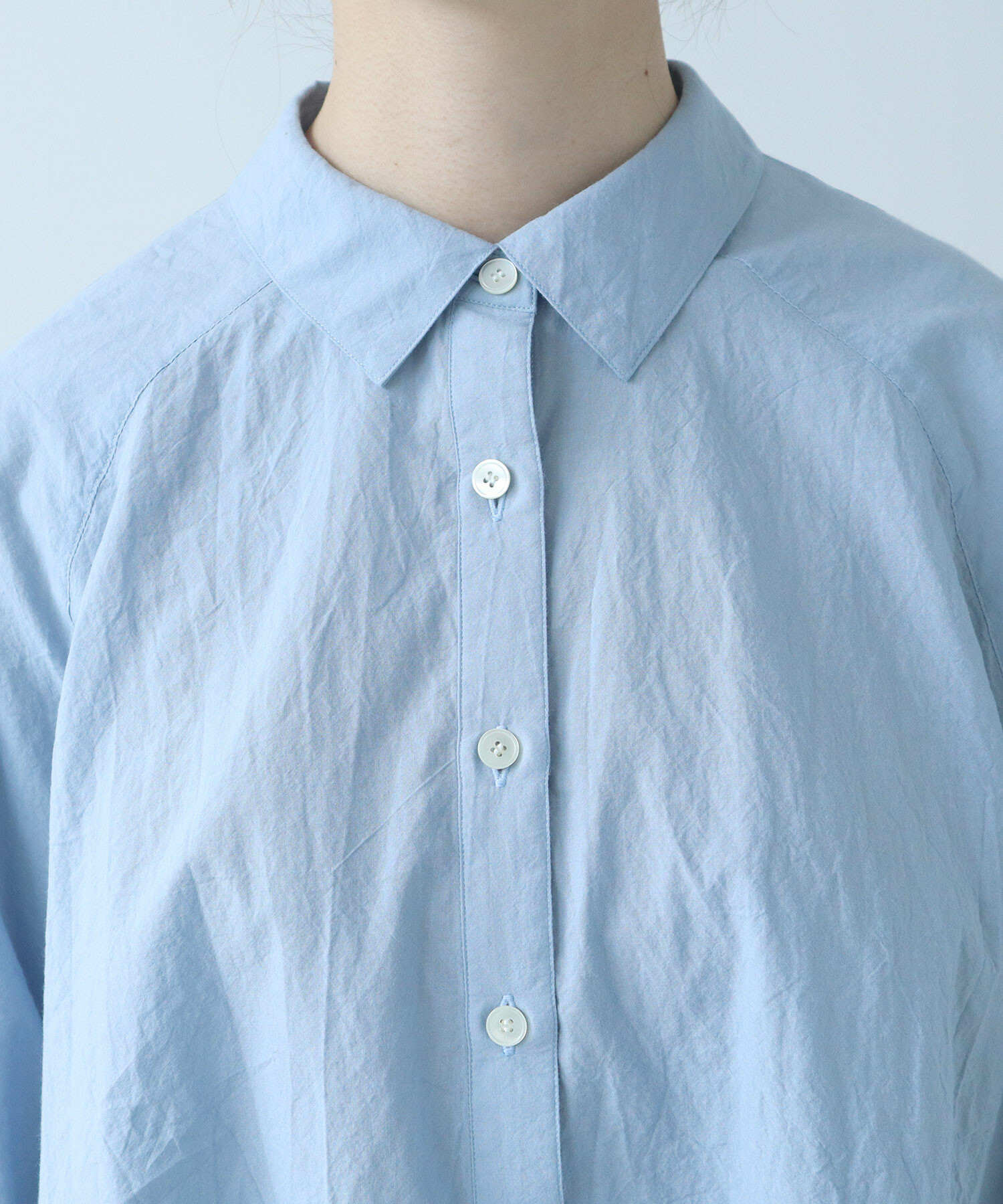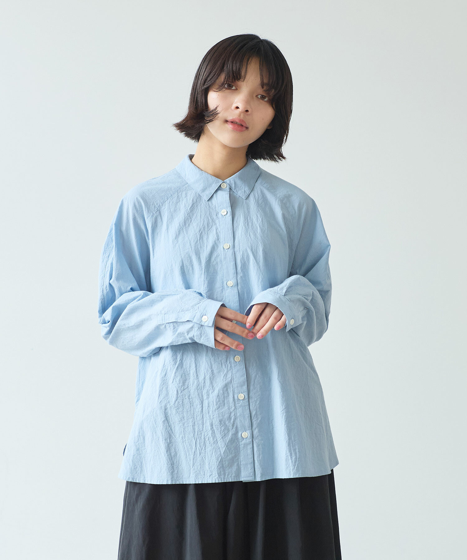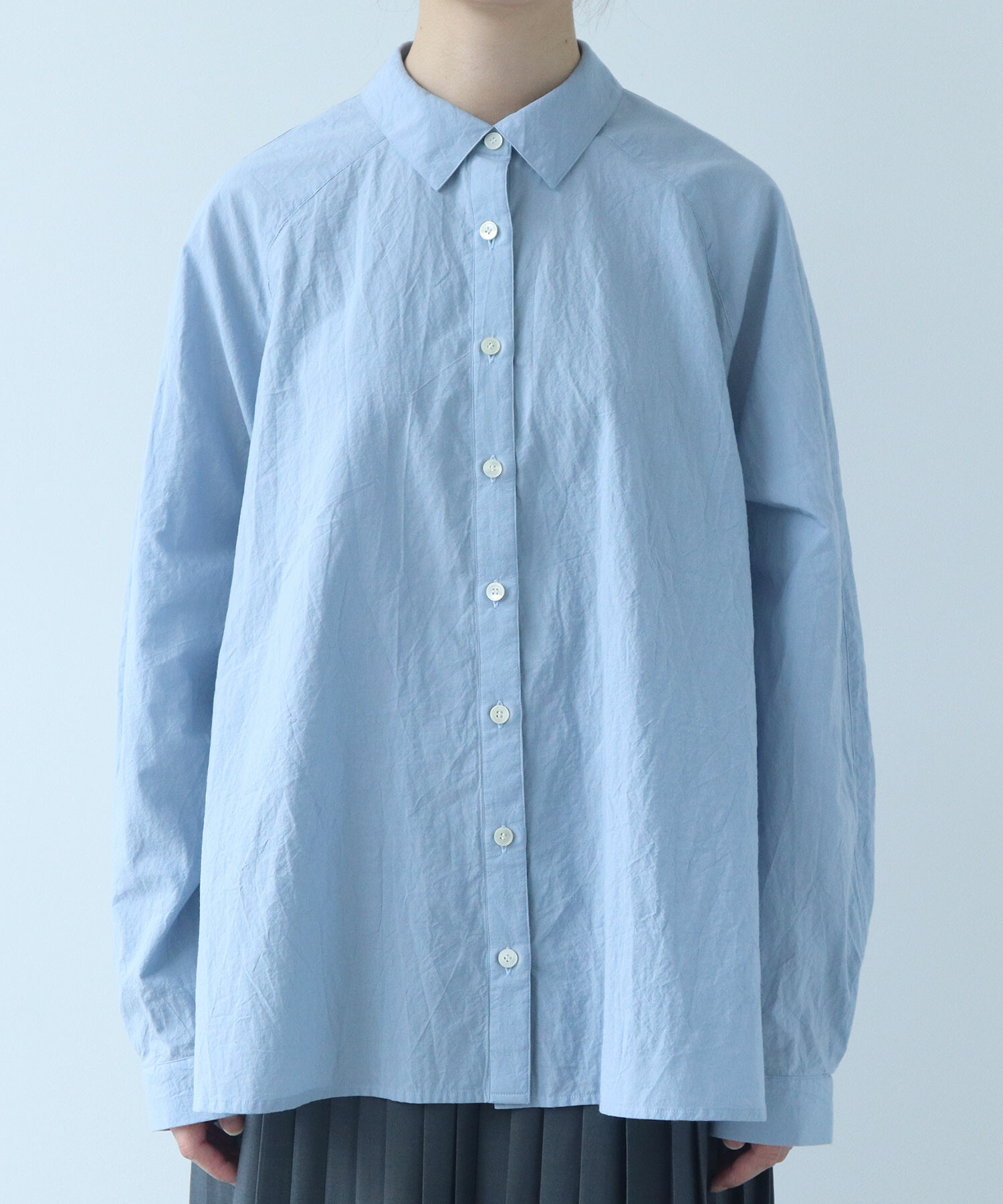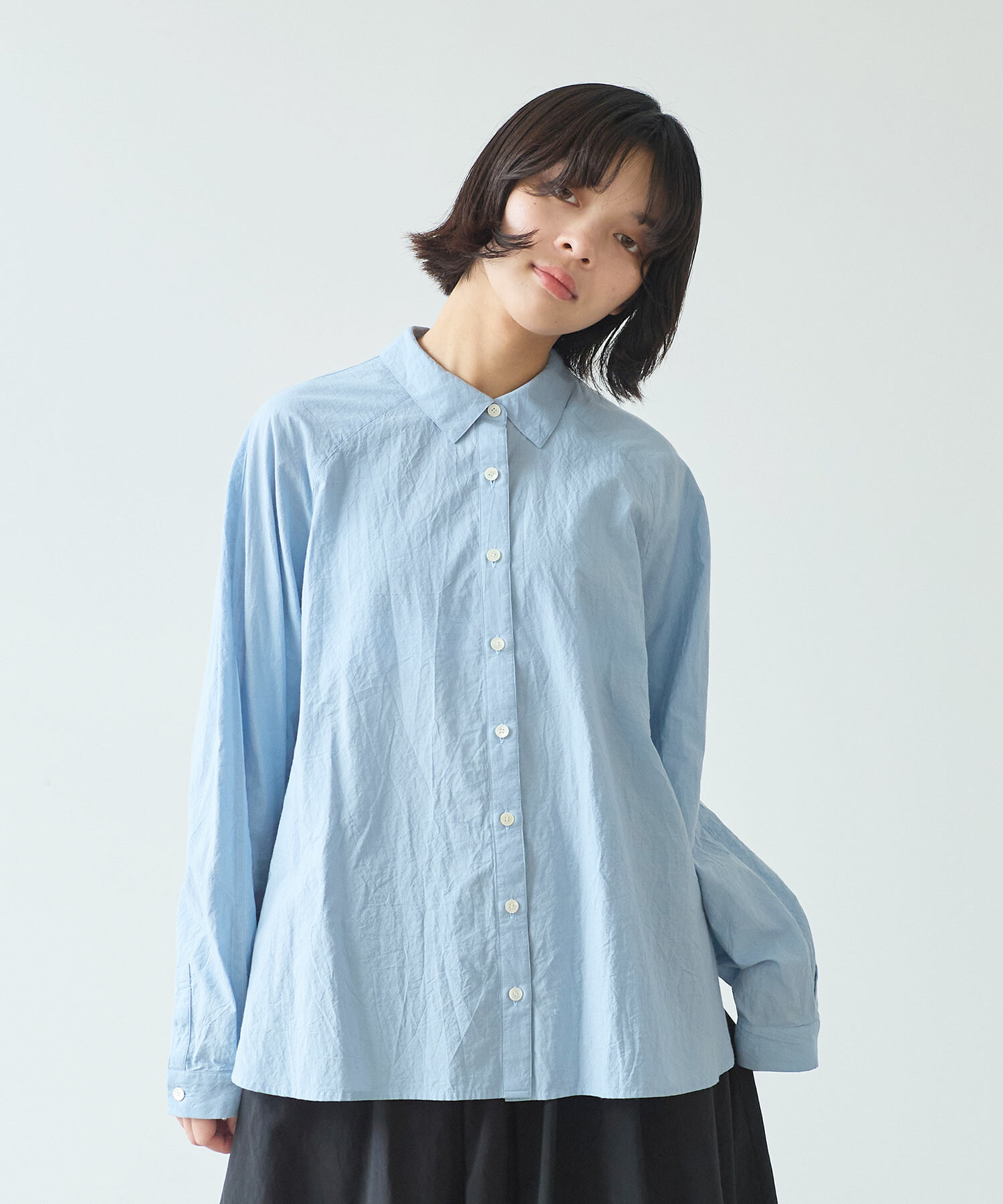 きちんと感がありつつ肩の力が抜けるのようなラグランのシャツは、