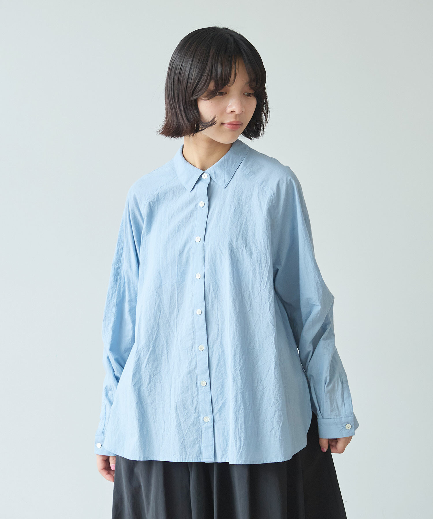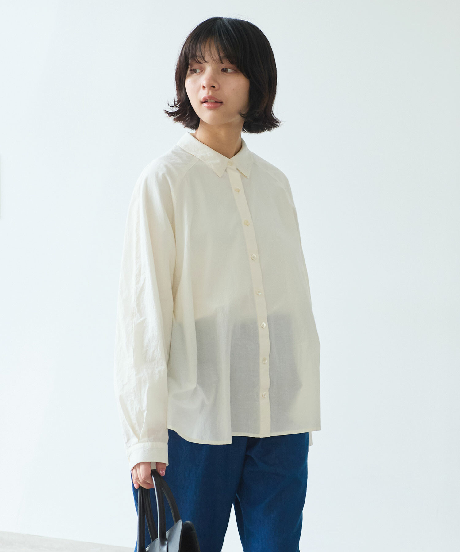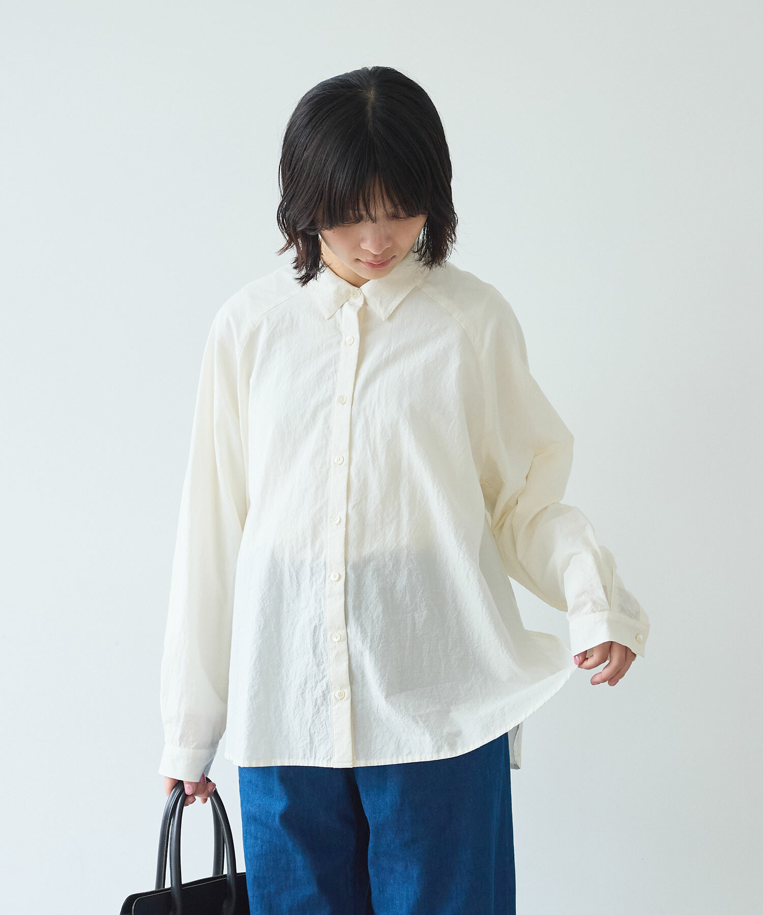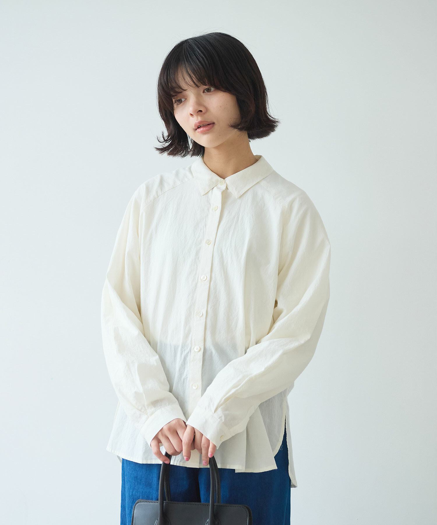 きちんと感がありつつ肩の力が抜けるのようなラグランのシャツは、