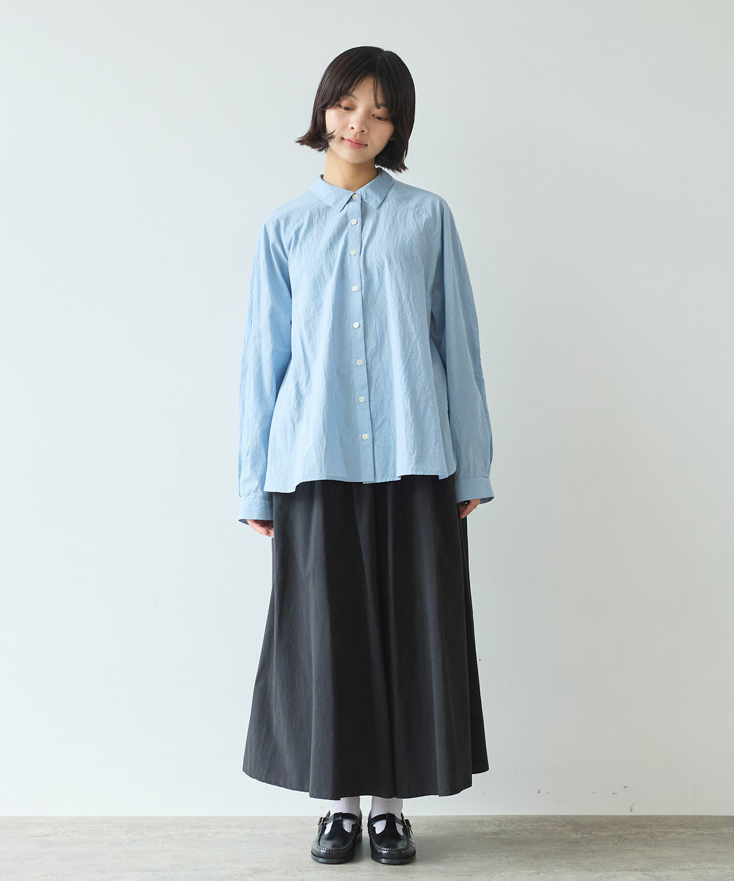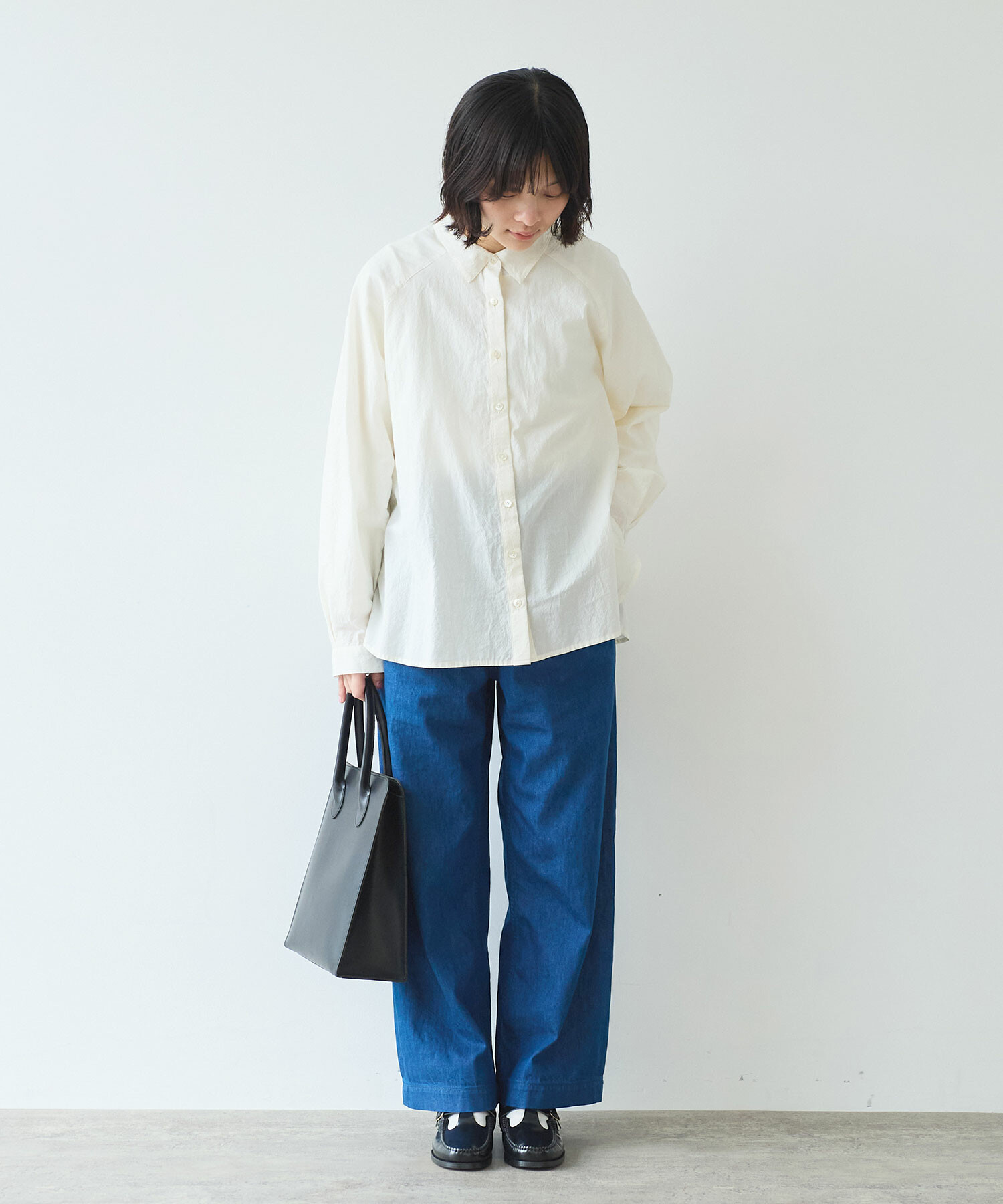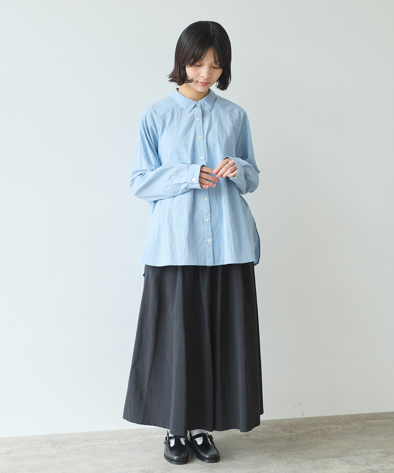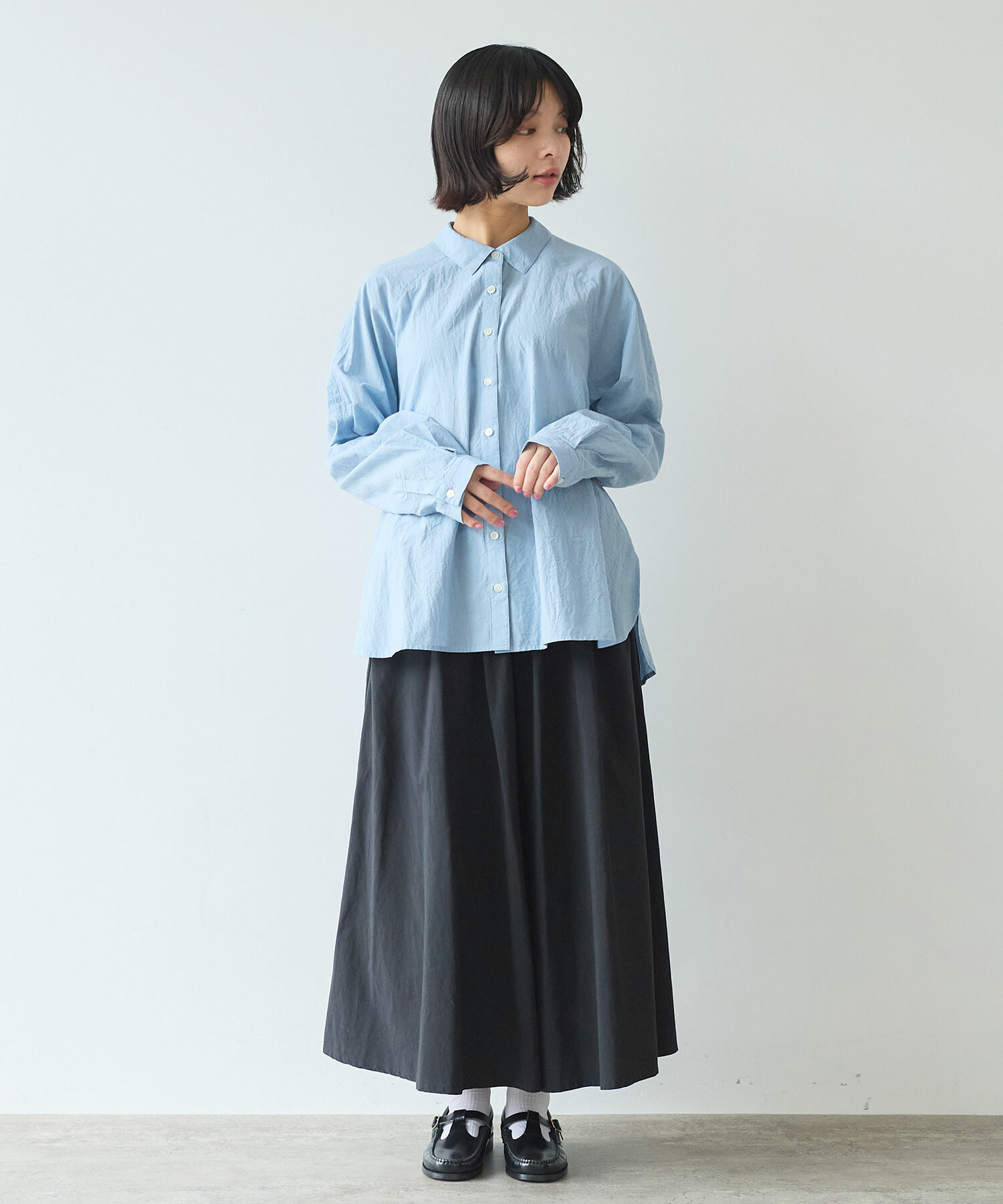 きちんと感がありつつ肩の力が抜けるのようなラグランのシャツは、