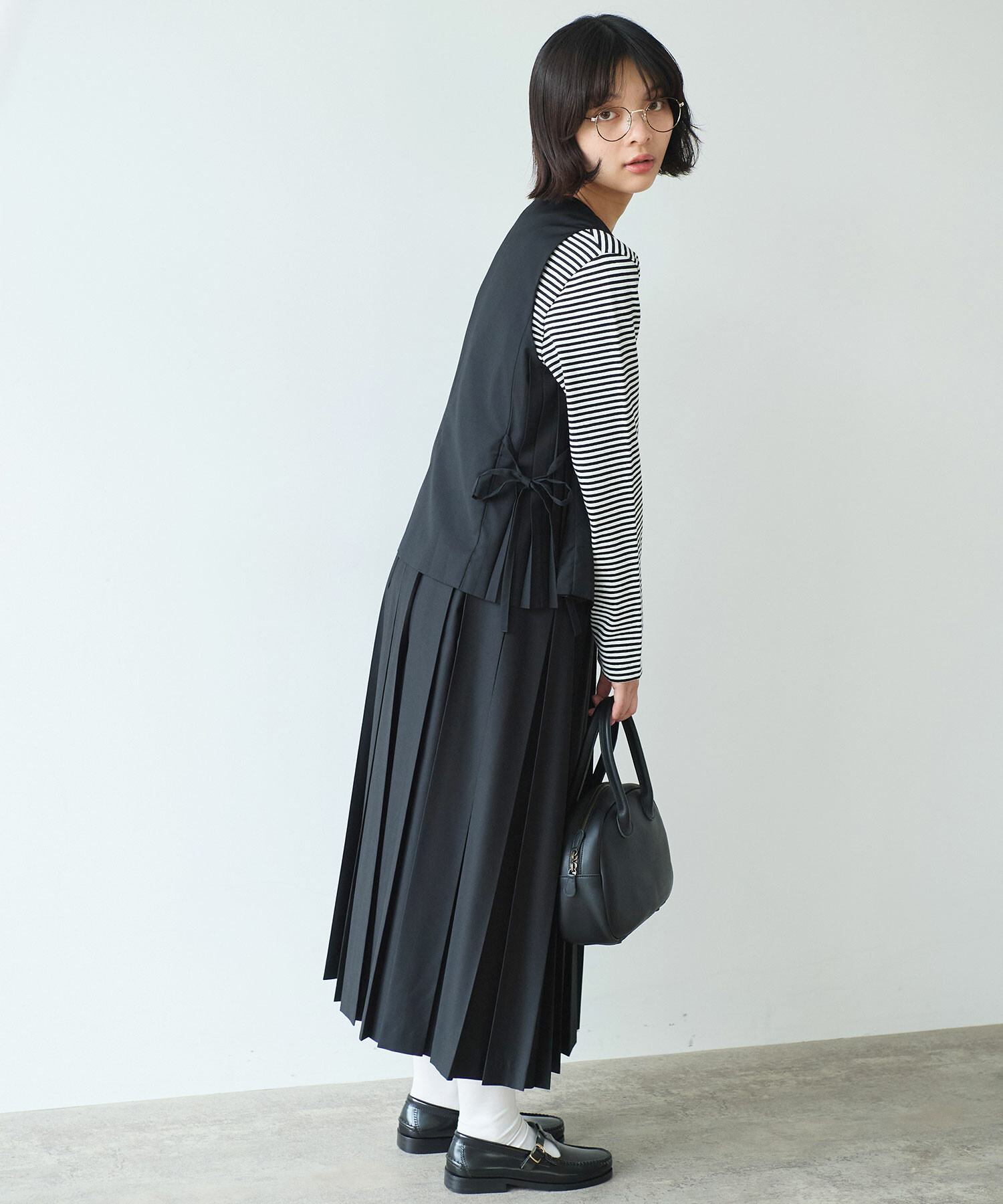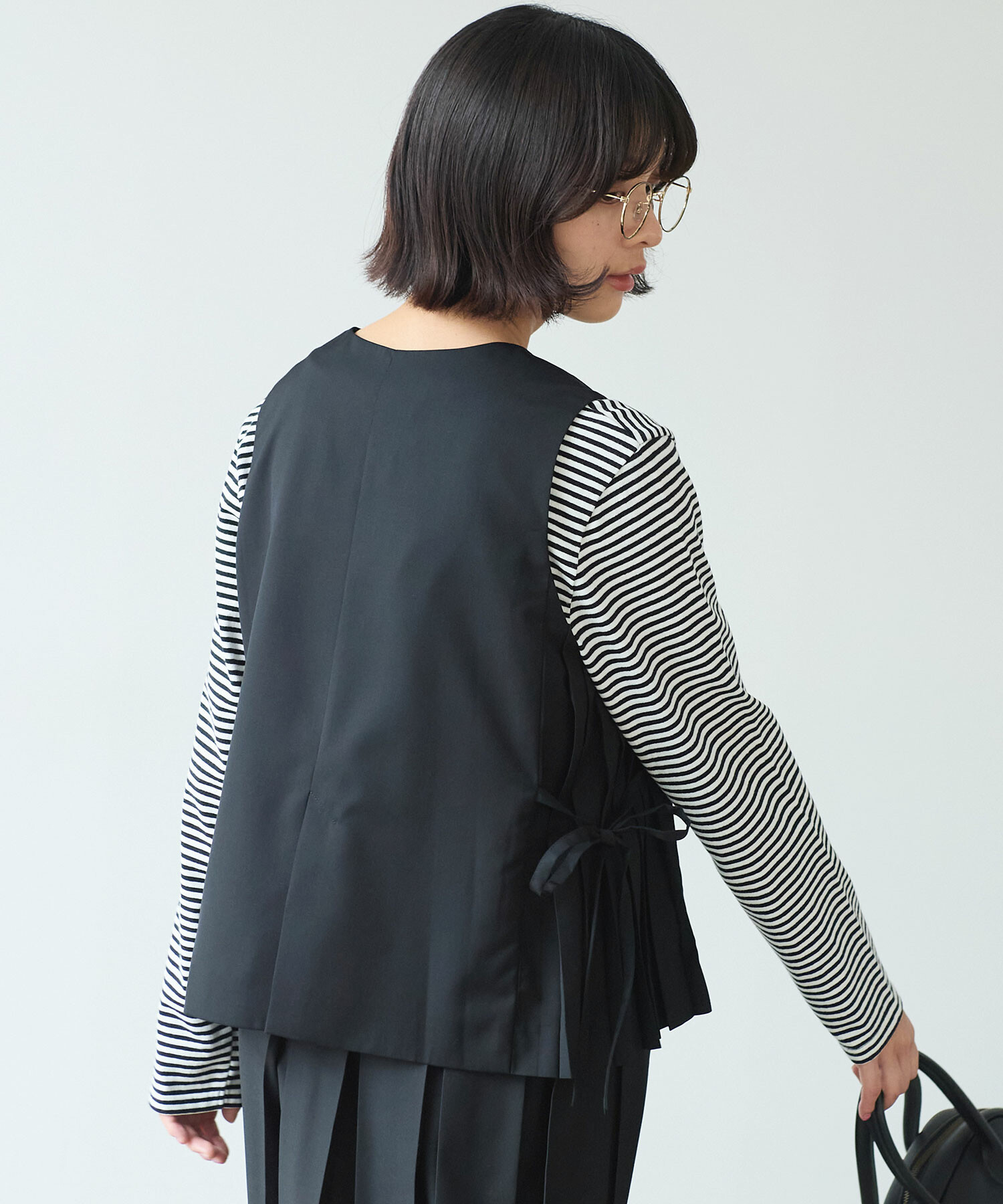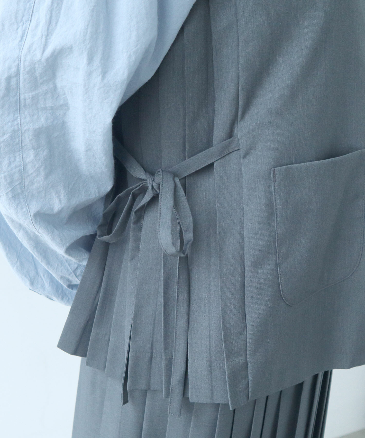 紐のしぼり加減でシルエットを調節できる仕様に。