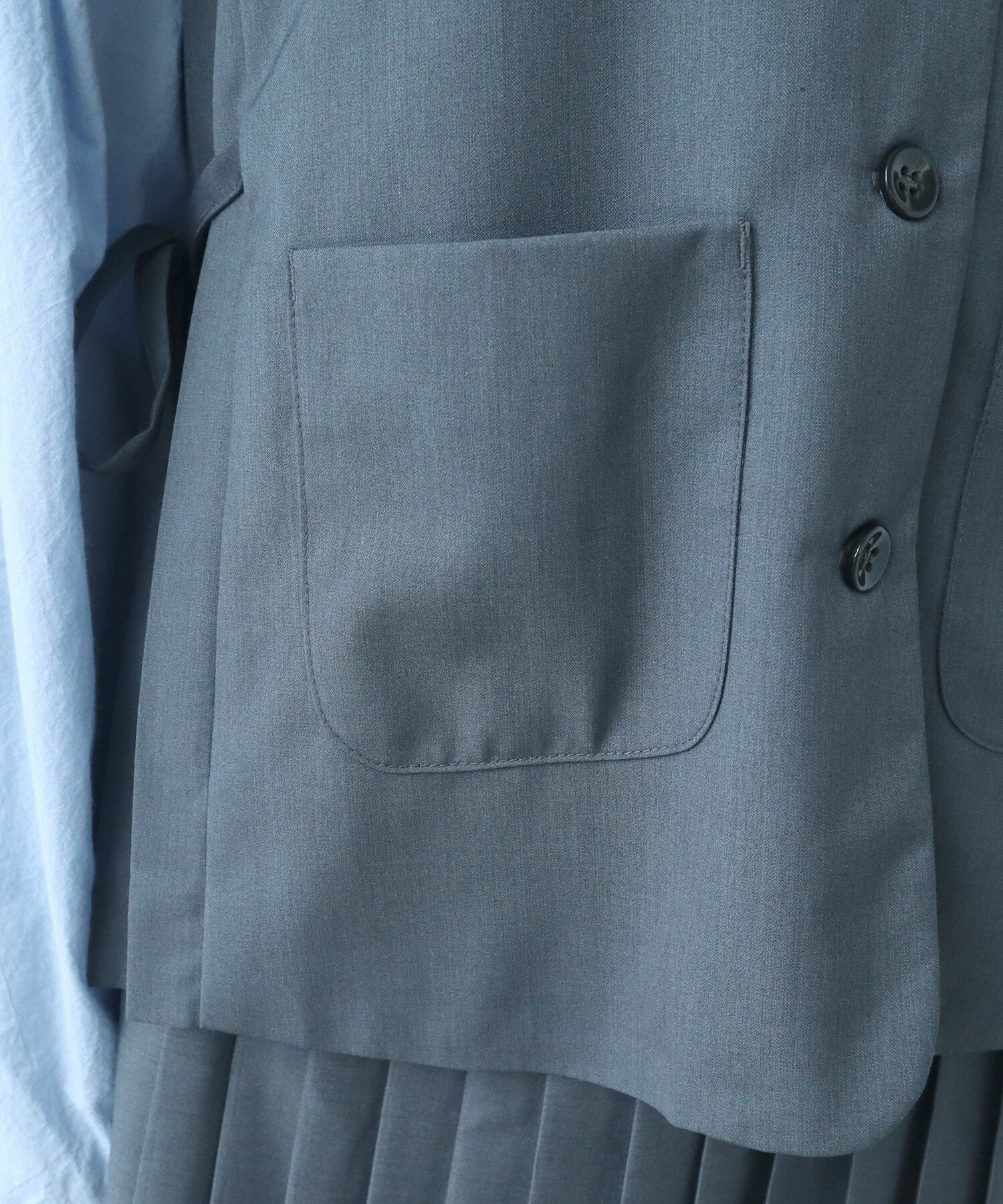 ・この製品は特殊加工を施していますが永久的なものではありません。着用や洗濯、ドライクリーニングを繰り返しますと徐々に伸びる事がありますが素材の特性として予めご了承下さい。水洗いは絶対に避け石油系ドライクリーニングでお願いします。