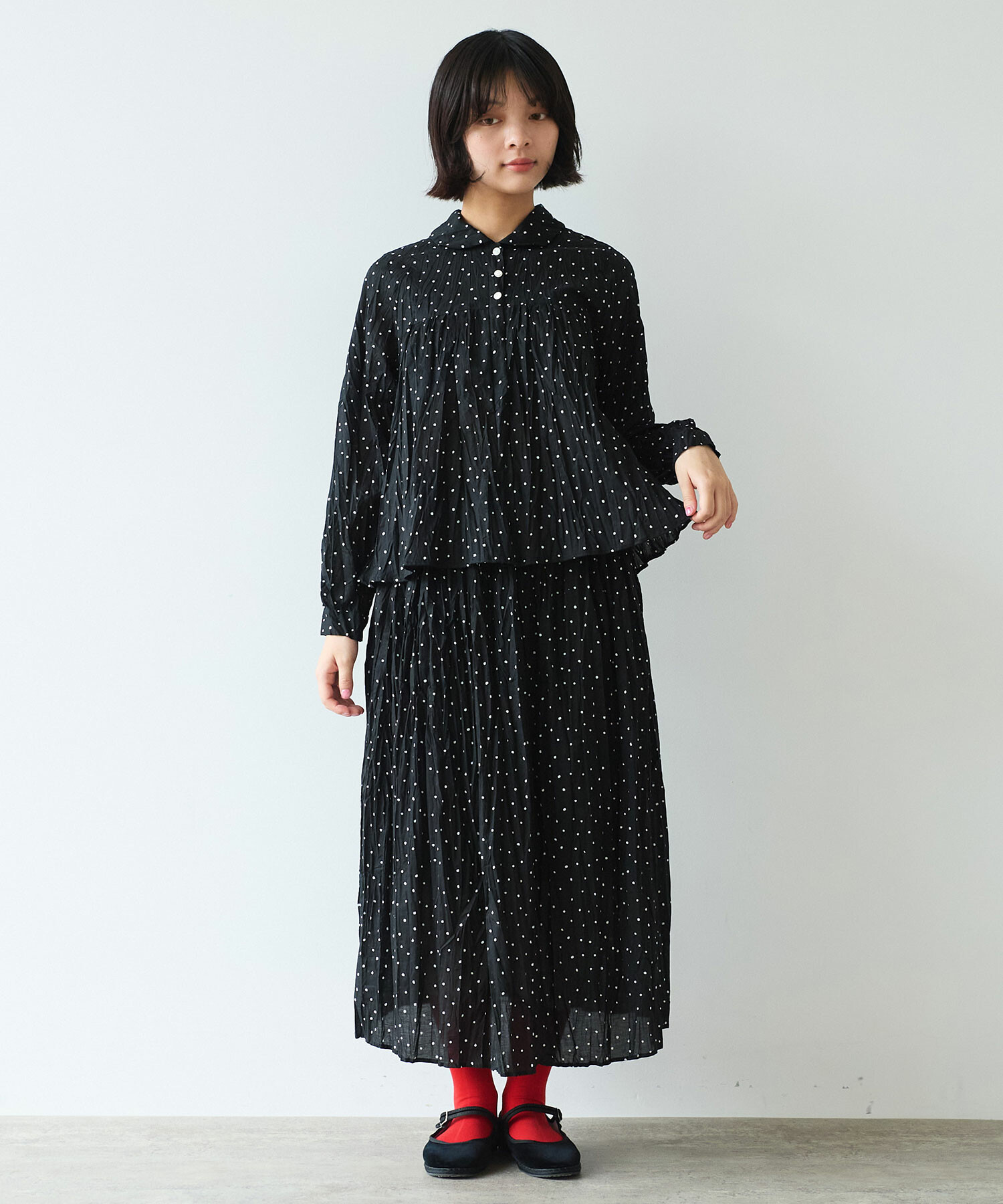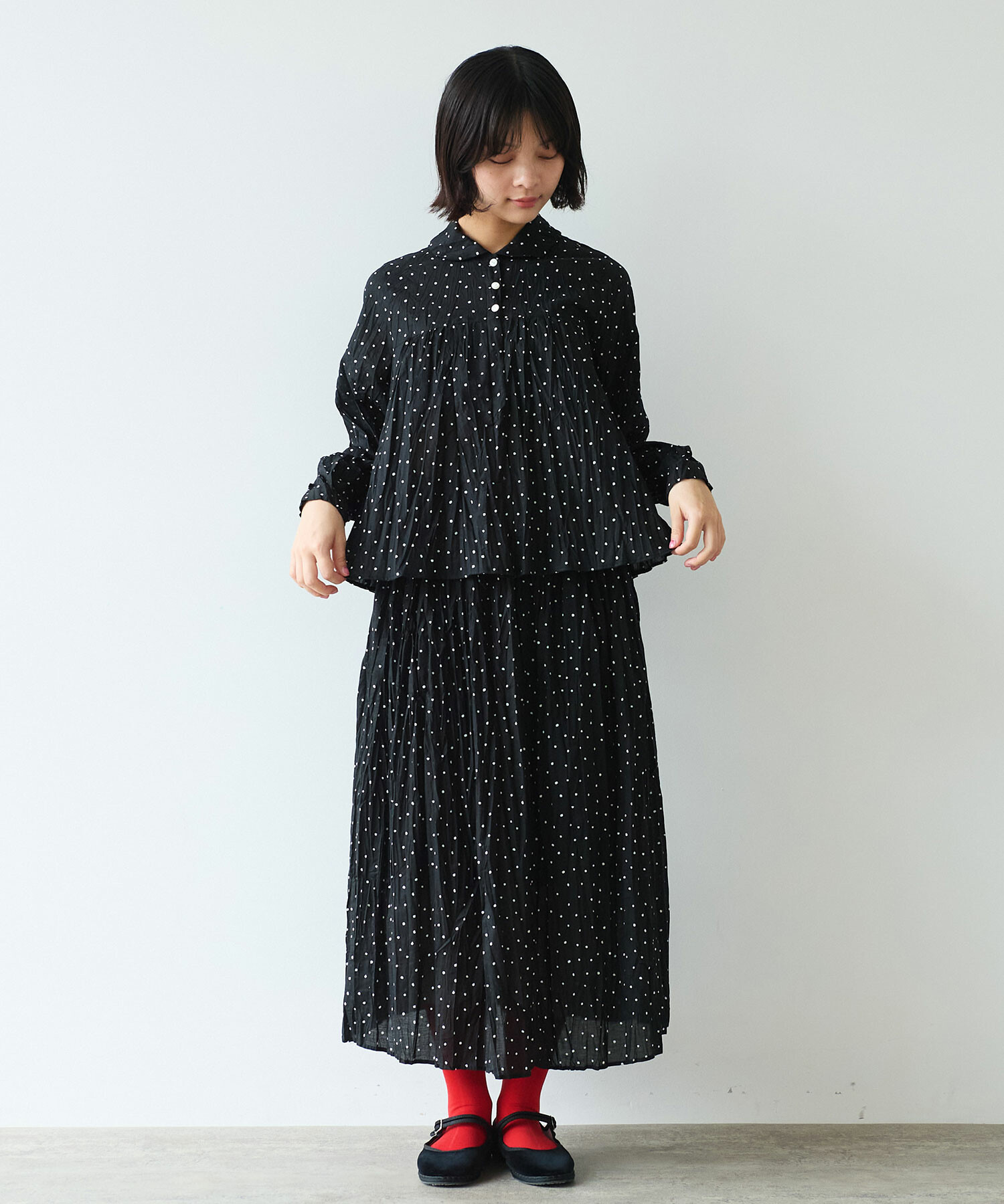 ・この商品は、クリンクル加工により独特のプリーツが施されております。このプリーツを維持するためにもお洗濯の際には、下記の方法でお願い致します。