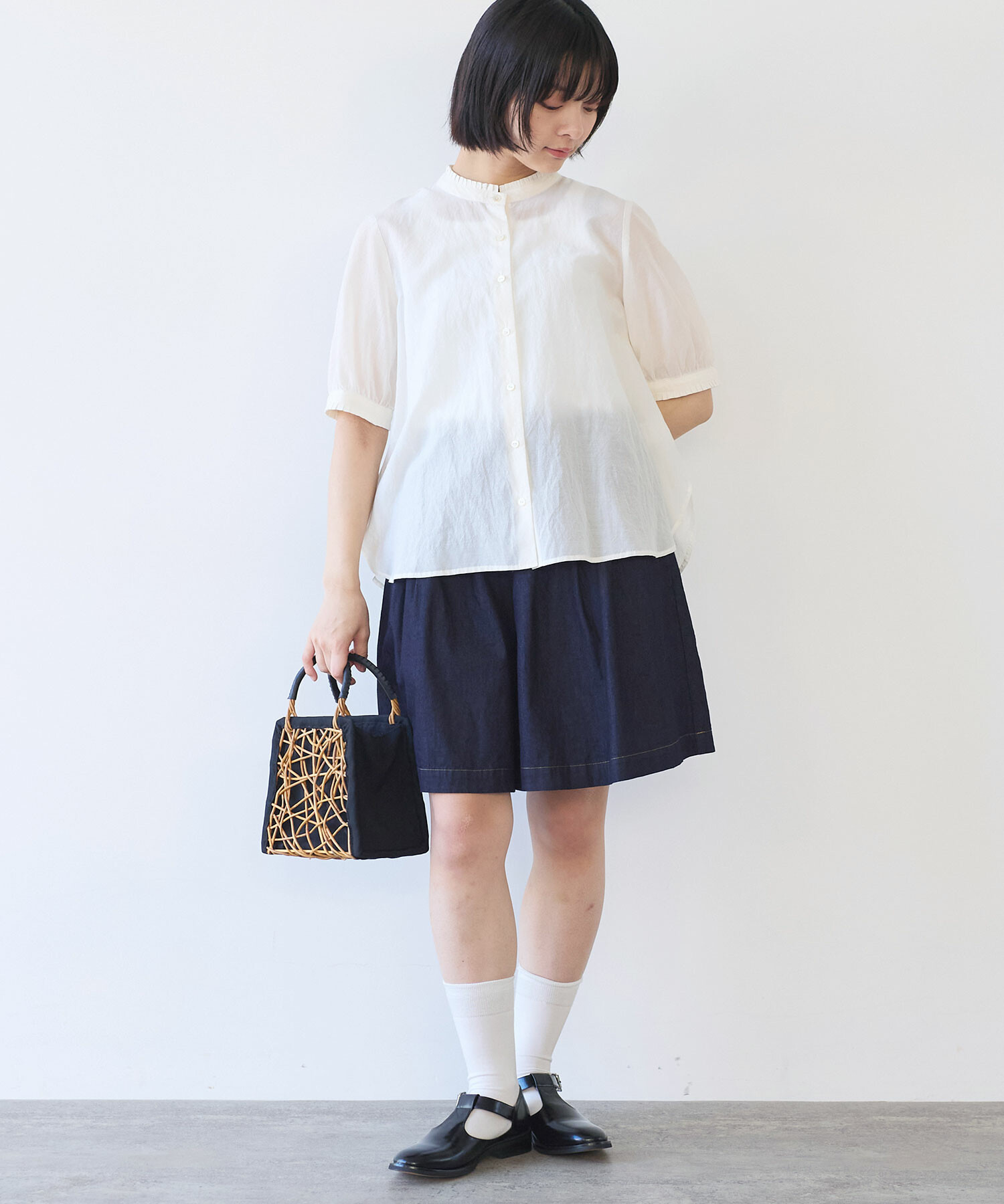 きちんと感はありつつもばさっと着られるワイドなシャツと、