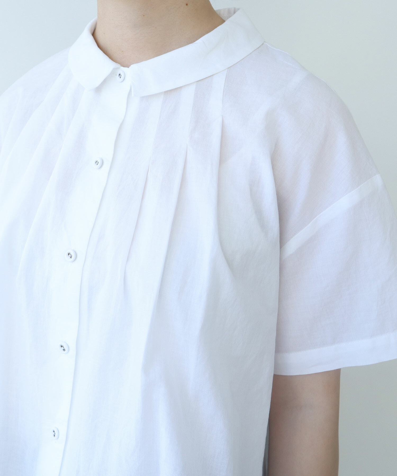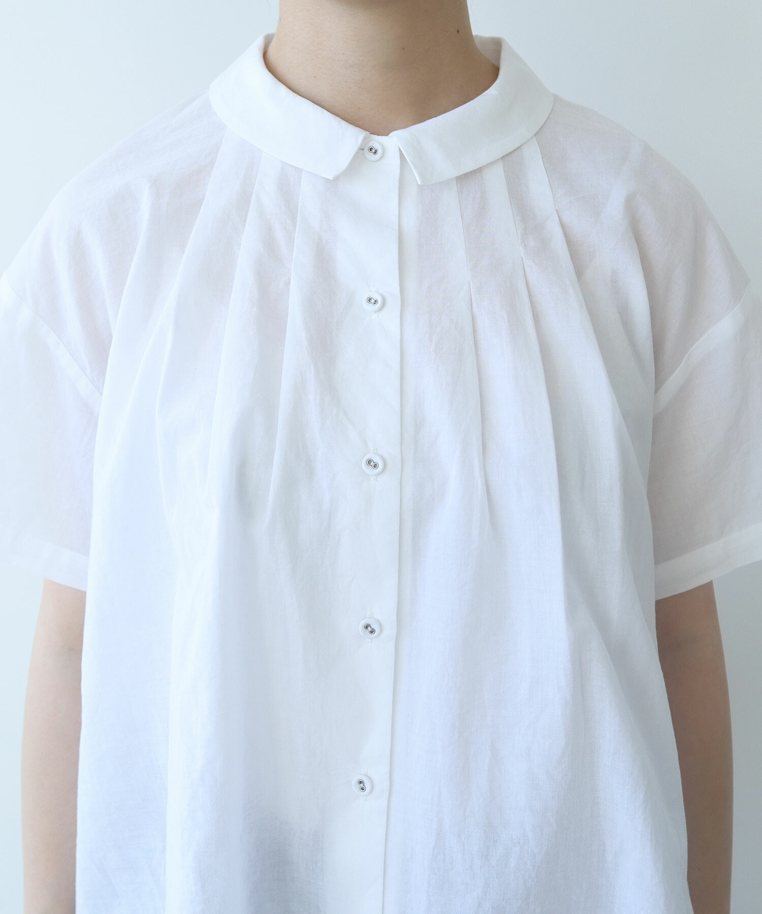 〇 コットン / シルク ローン タックブラウス