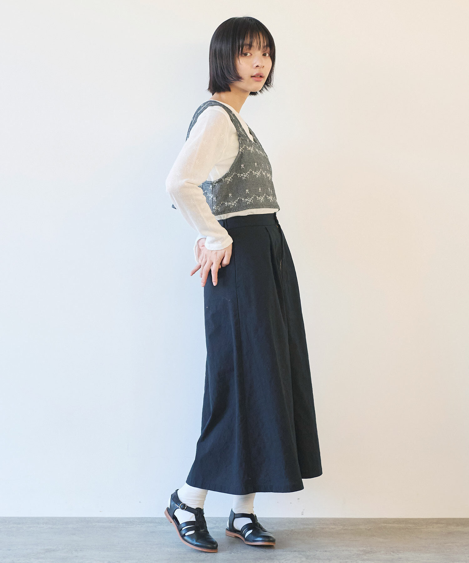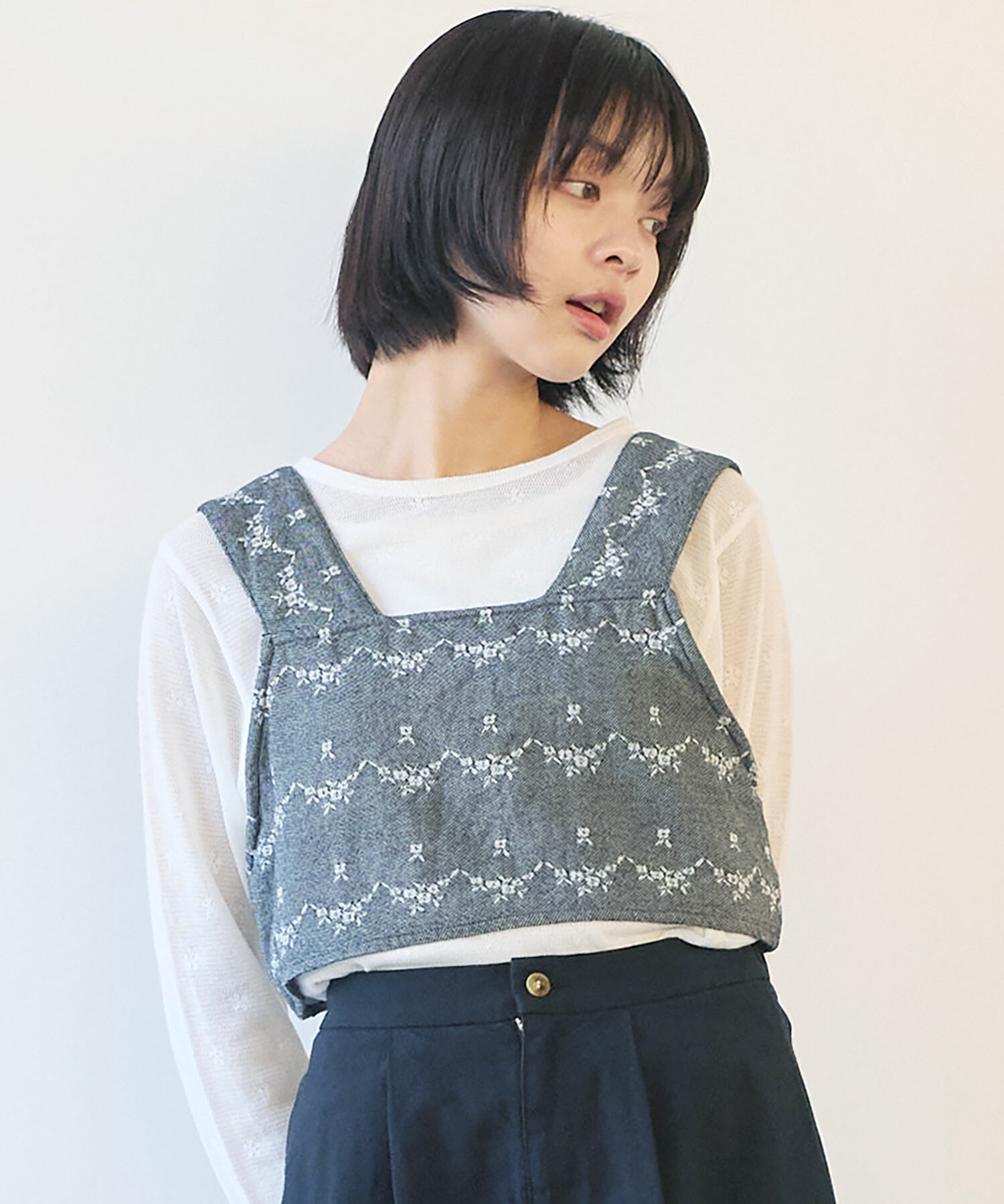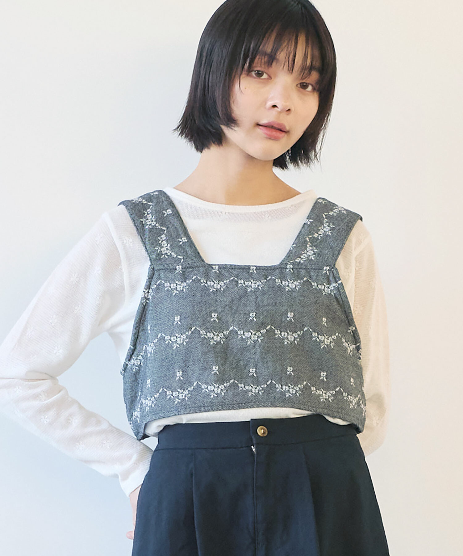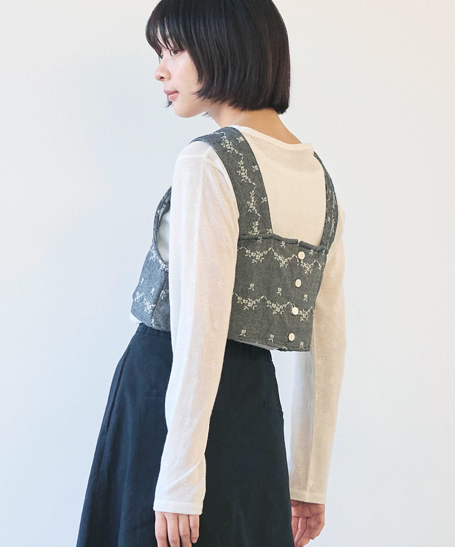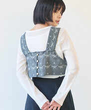 上からきゅっとおさえるスタイリングがかわいいビスチェ。