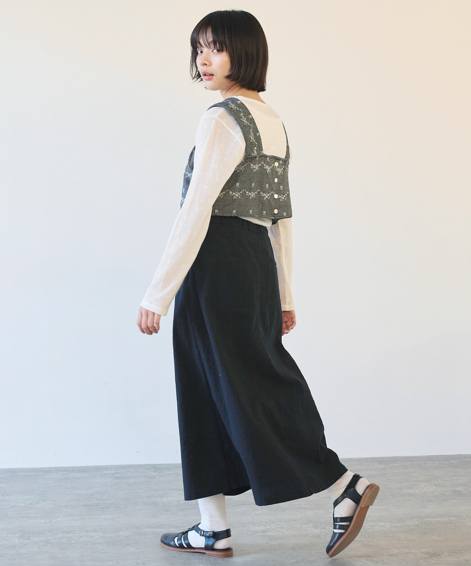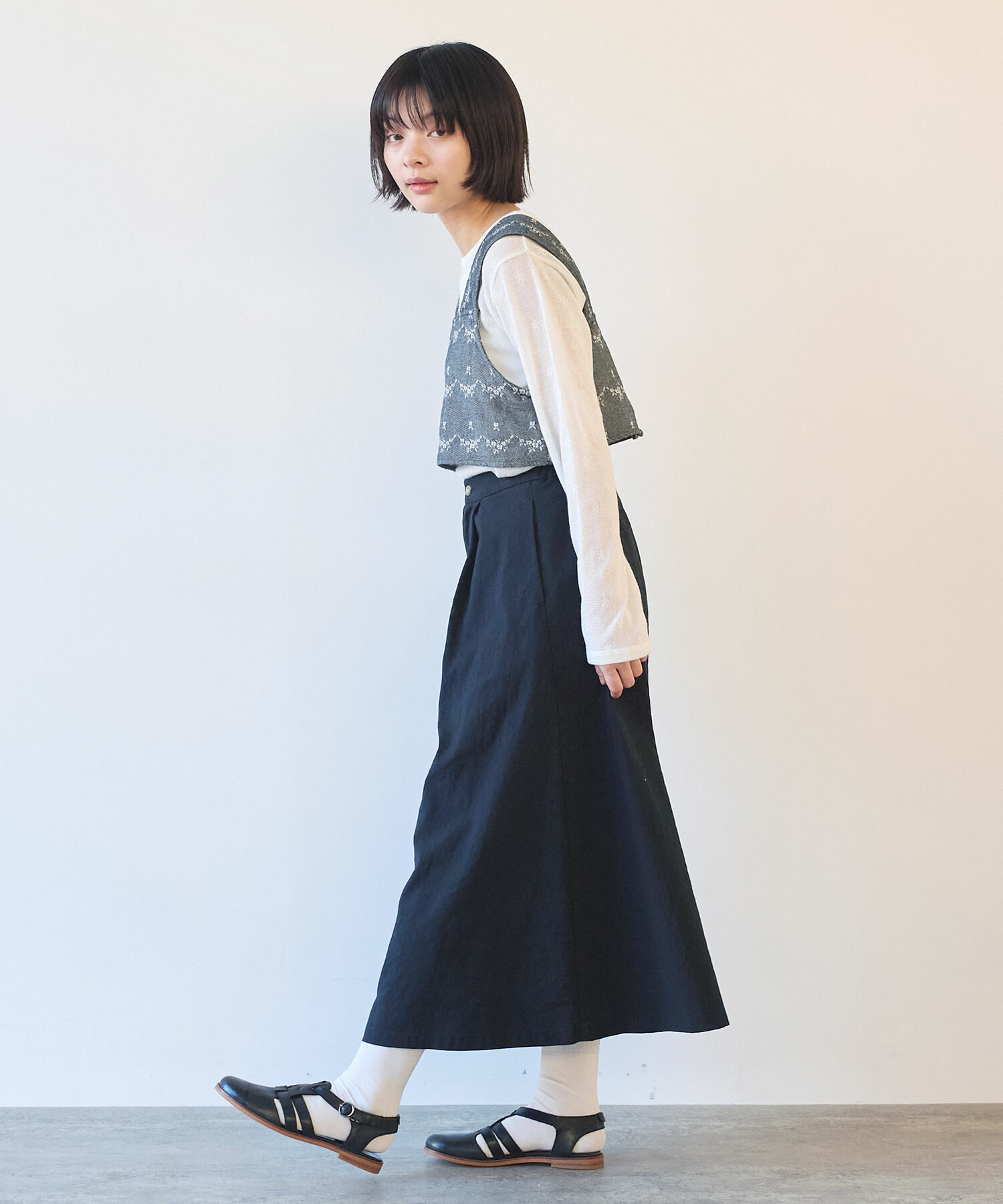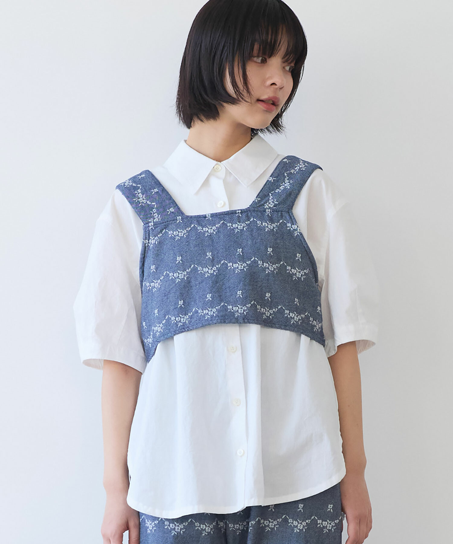 上からきゅっとおさえるスタイリングがかわいいビスチェ。