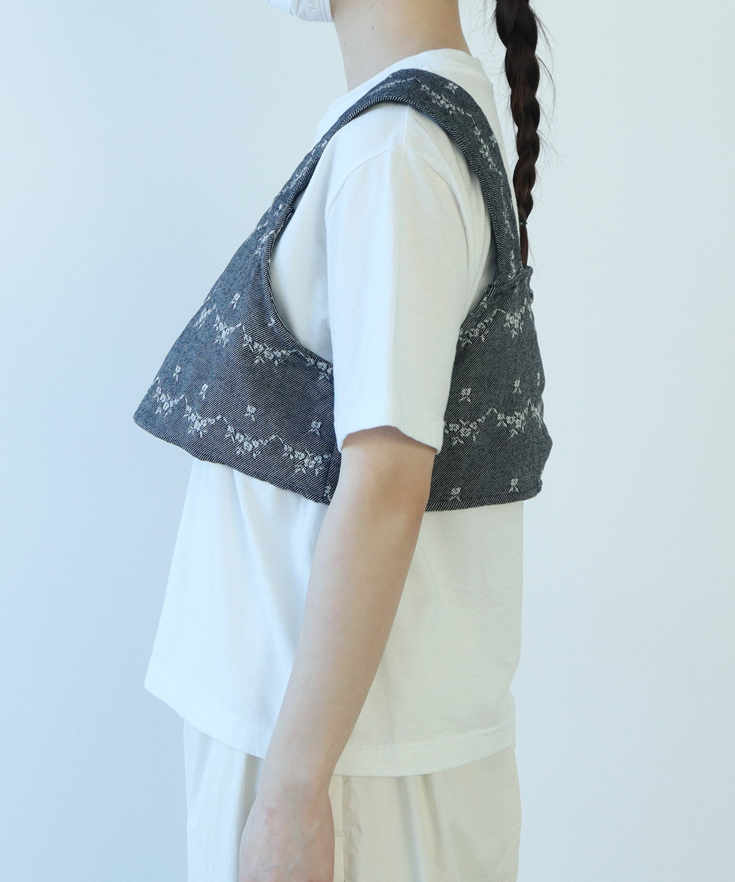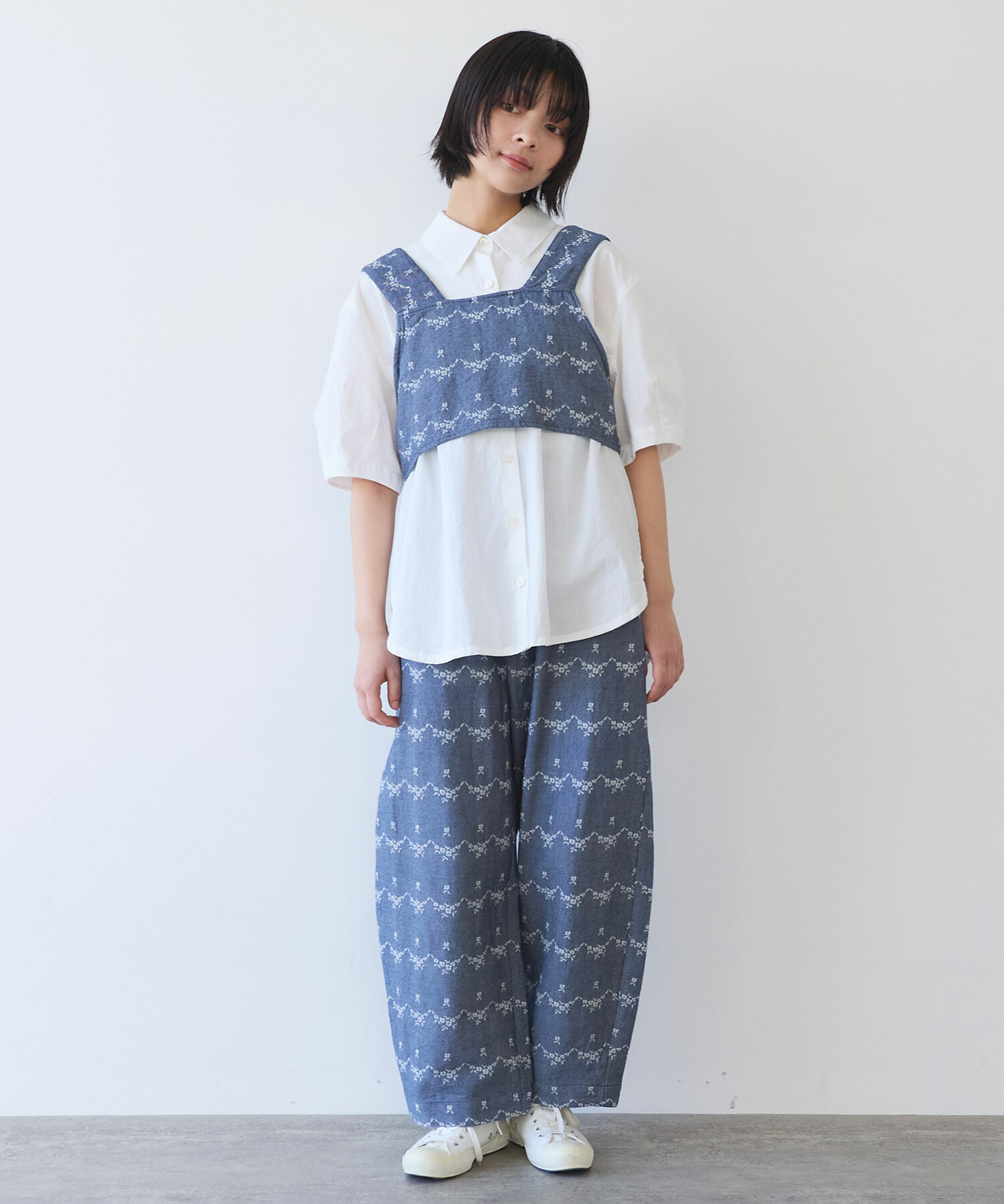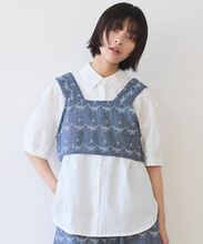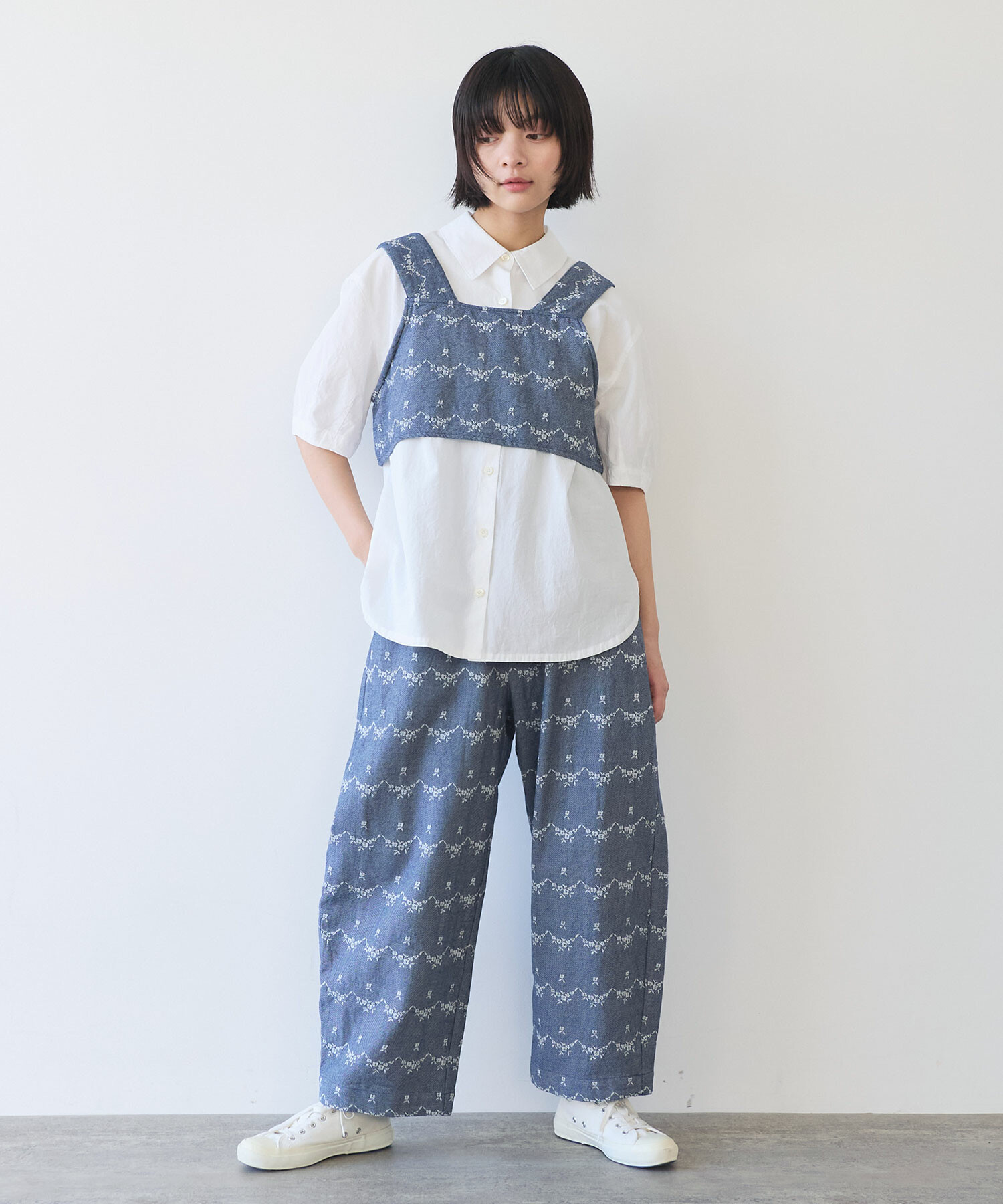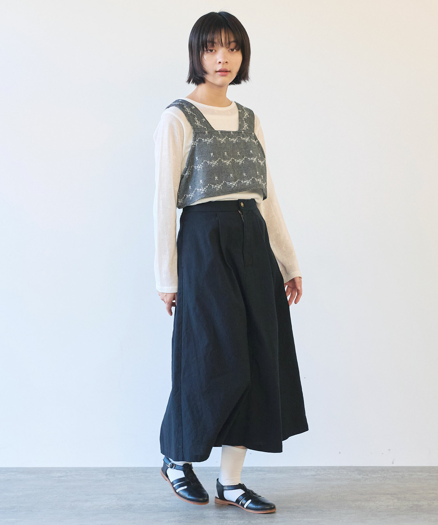 上からきゅっとおさえるスタイリングがかわいいビスチェ。
