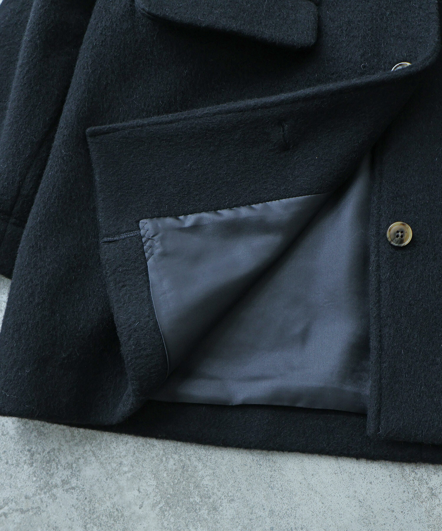 | 素材 | 【表地】ウール 74%, モヘア 18%, カシミア 4%, ナイロン 4% 【裏地】ポリエステル 100% |