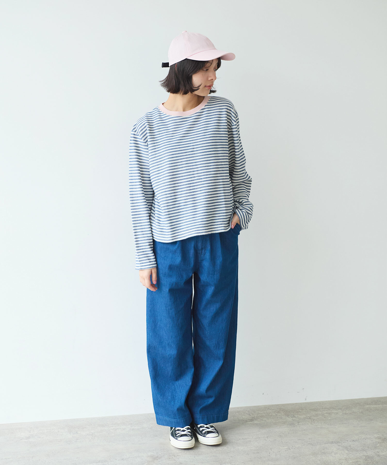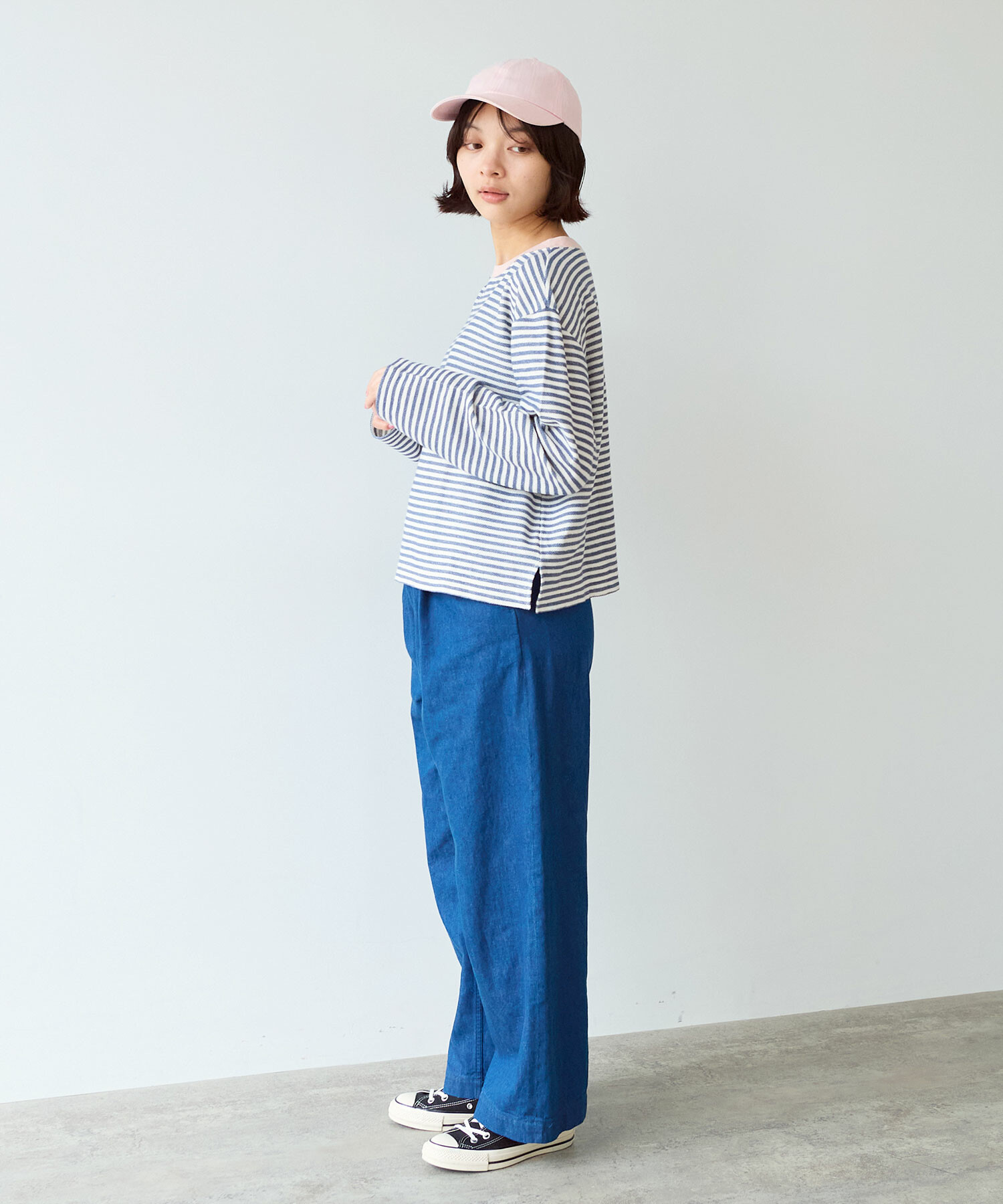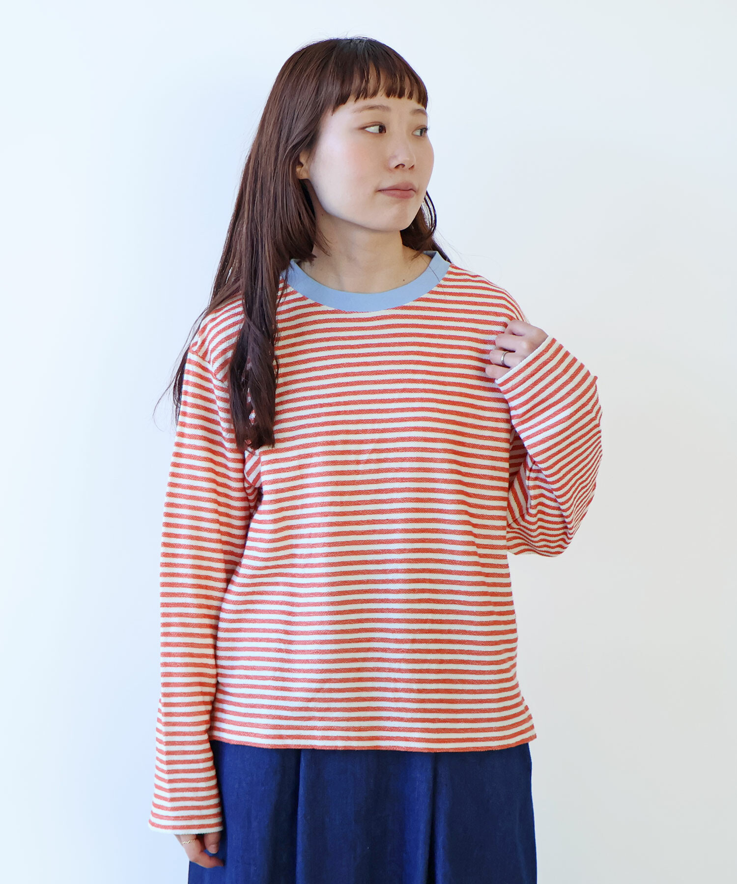優しい配色のボーダーなので、春を意識させてくれる1枚。