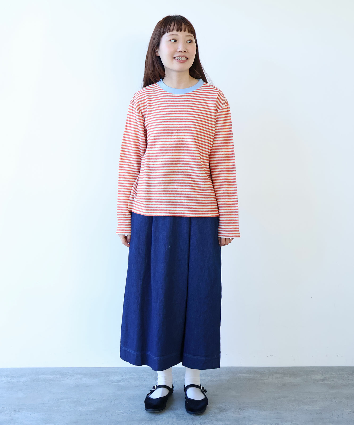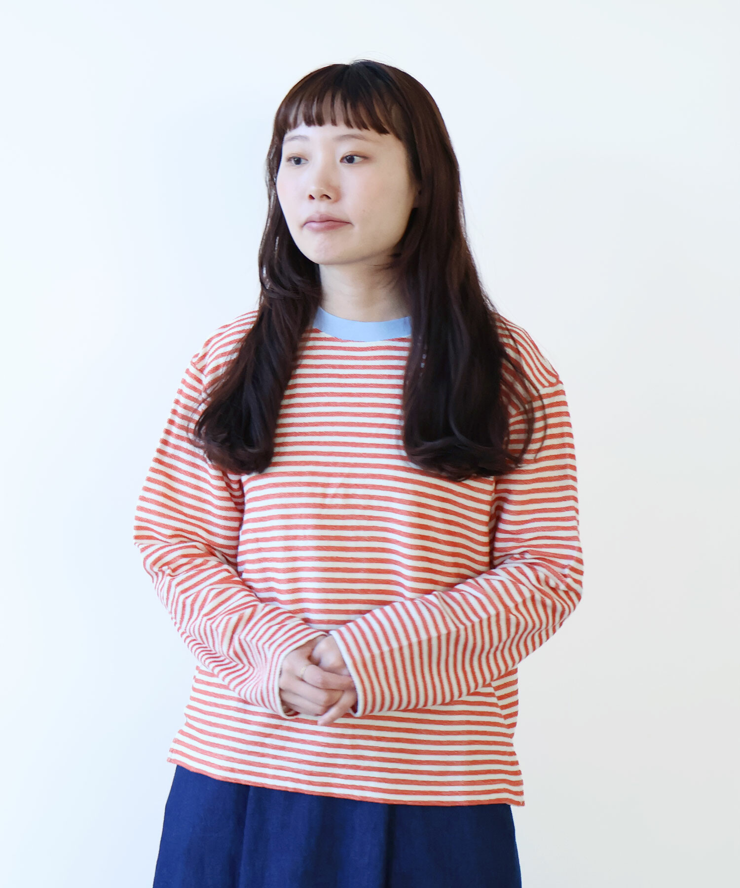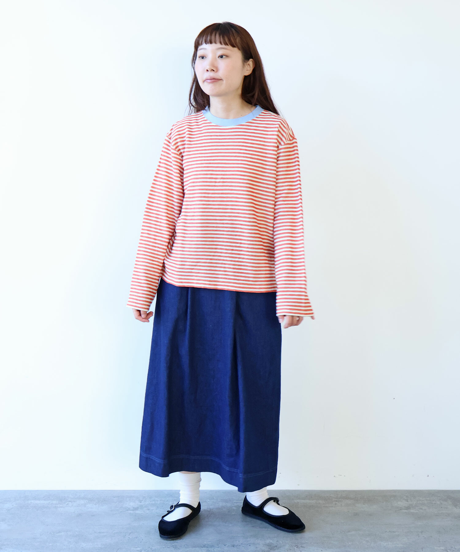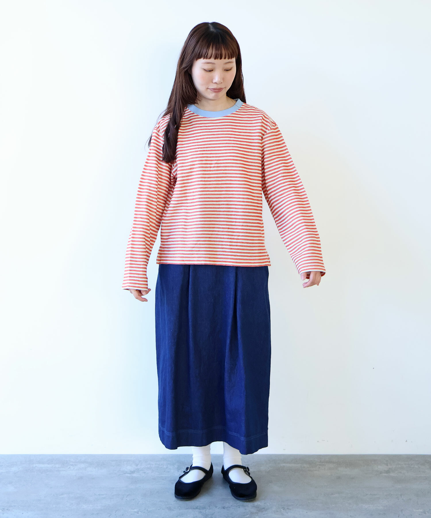 優しい配色のボーダーなので、春を意識させてくれる1枚。