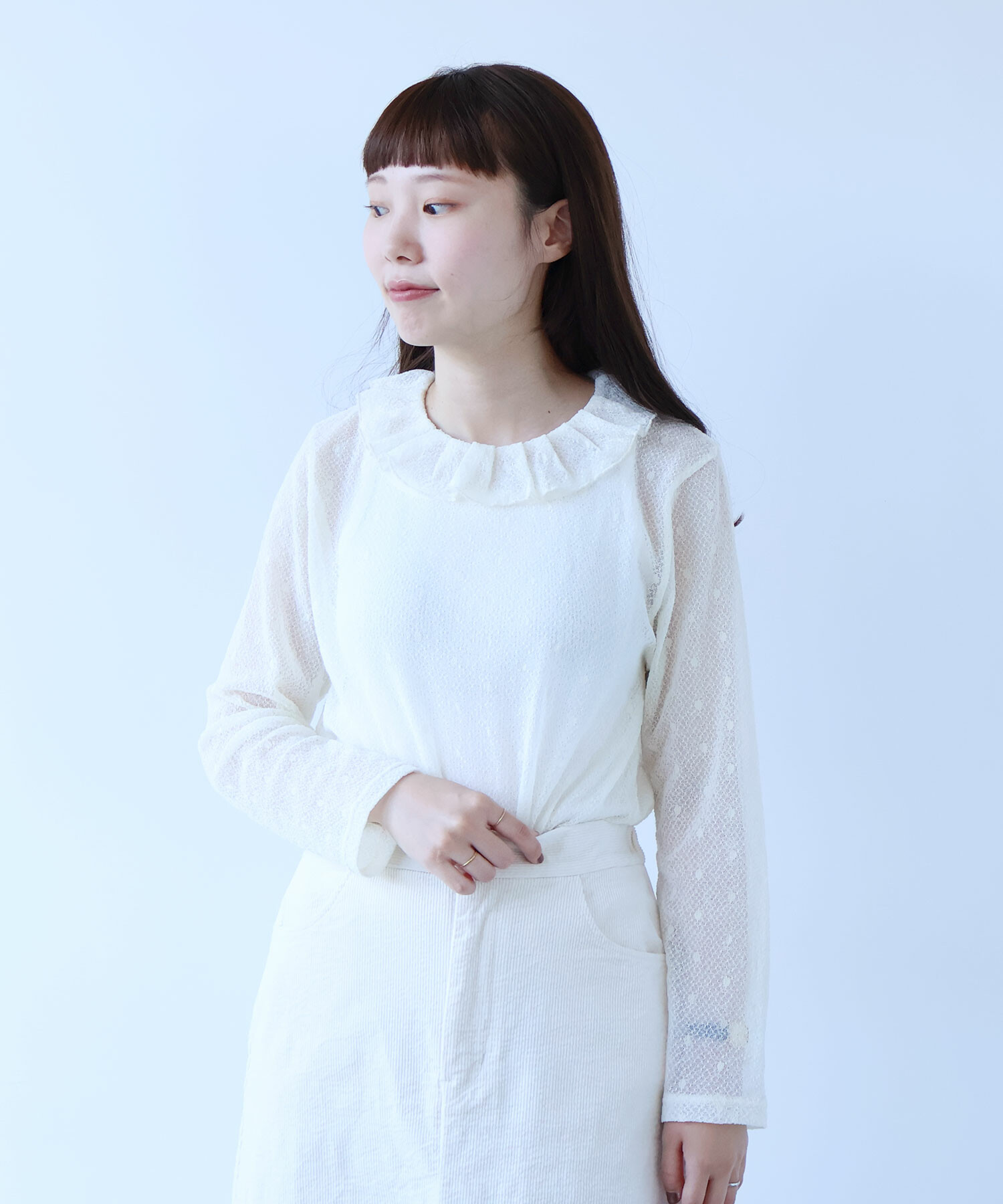 上からスウェットを重ねてカジュアルにも着られる万能インナーです。