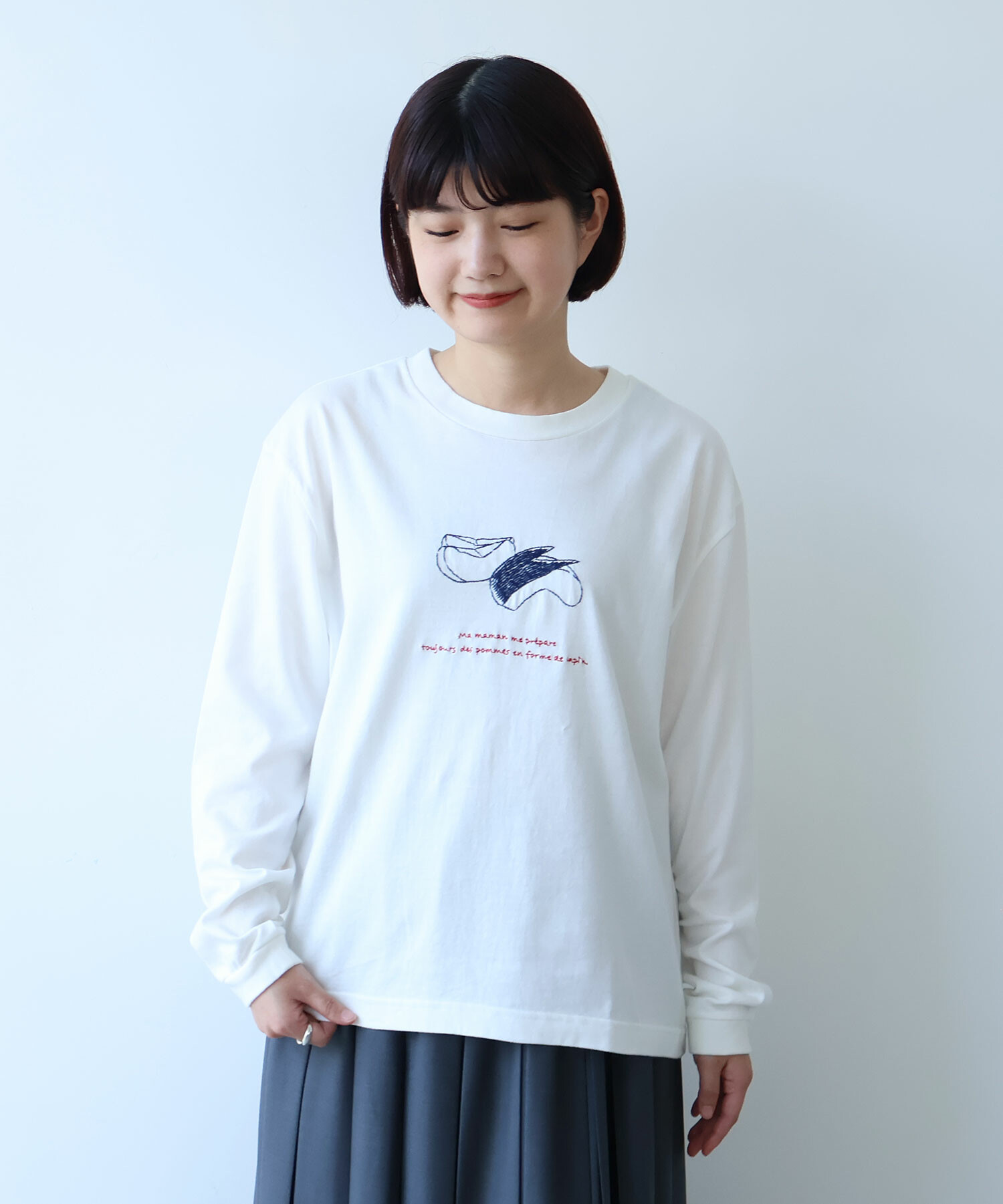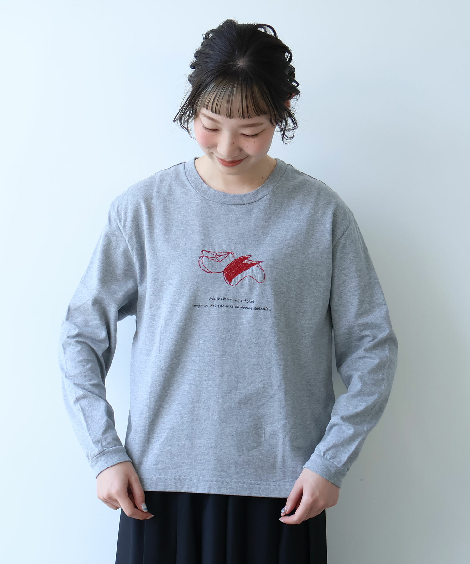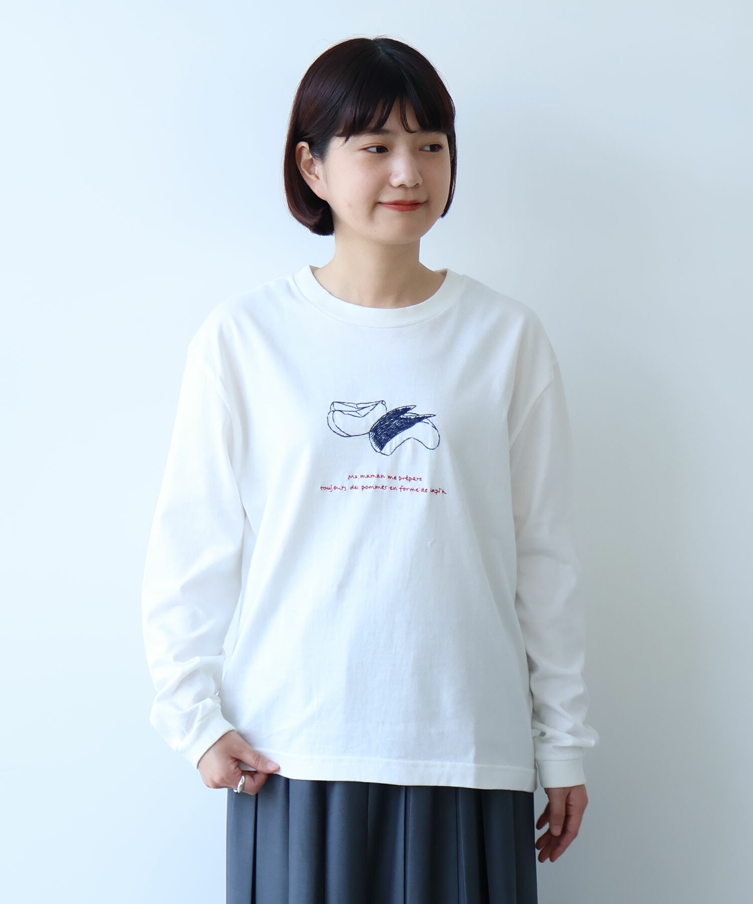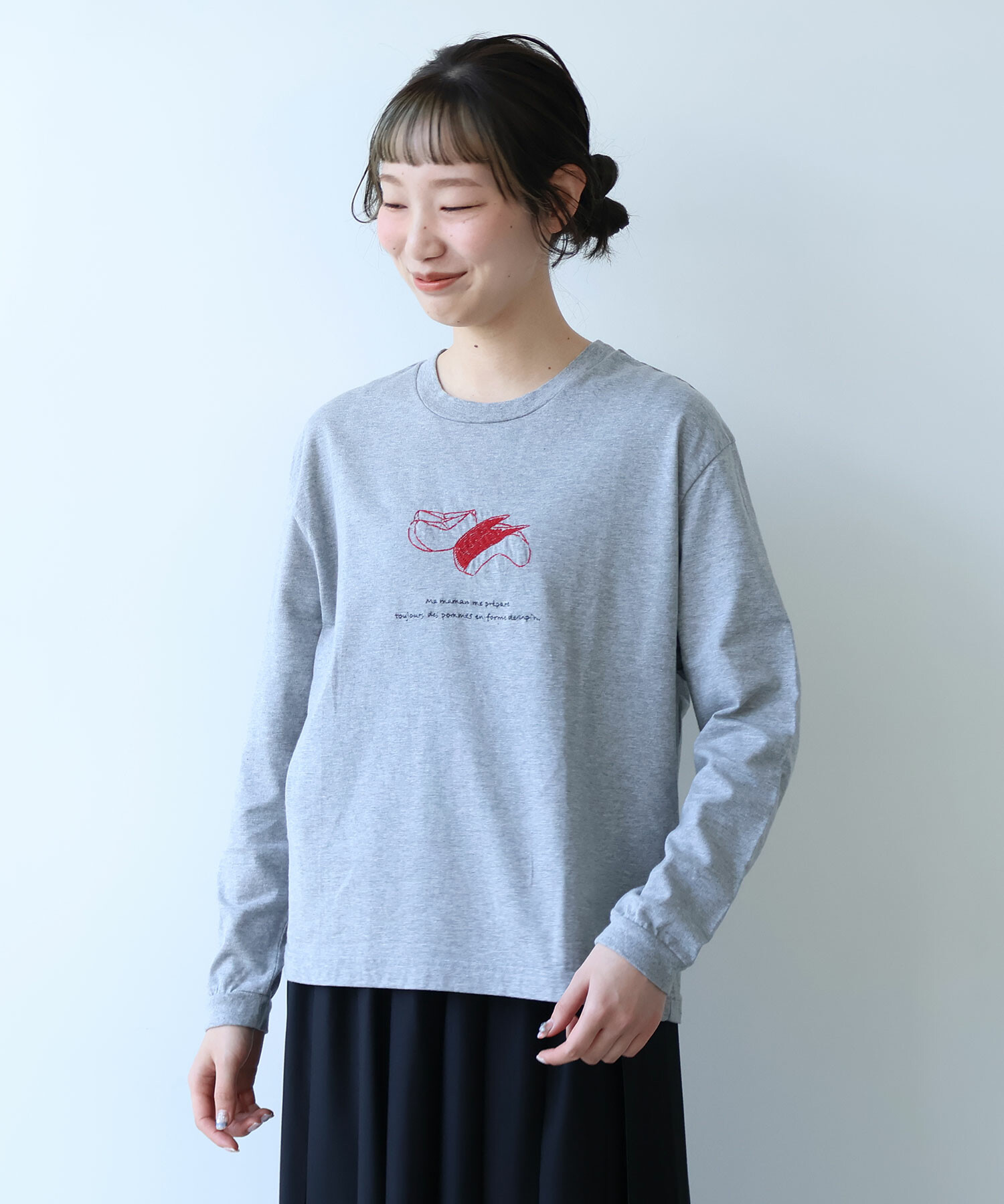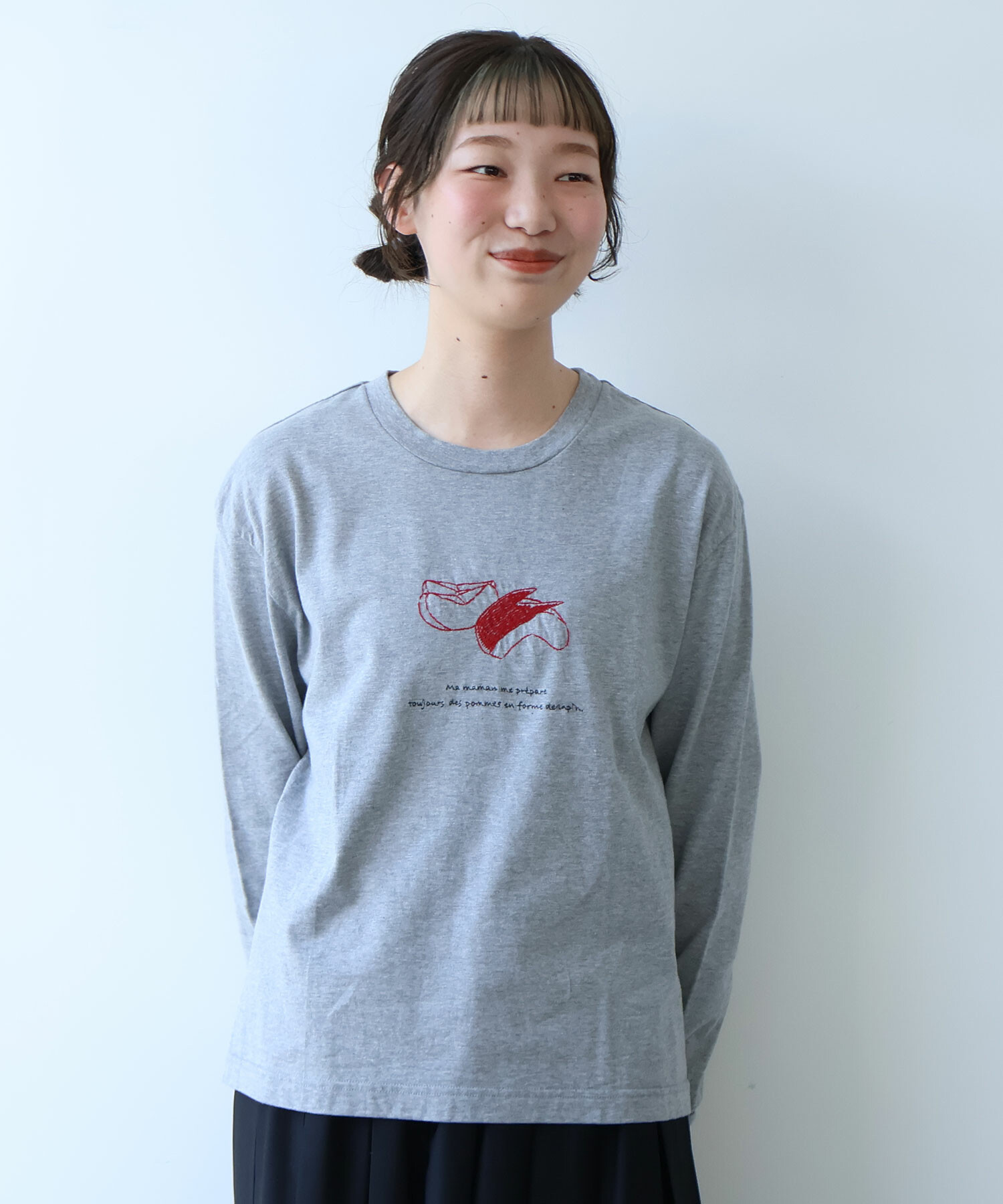 ※サンプルからの変更点:りんごの皮の刺繍部分がやや少なくなります。サイズ感が全体的にコンパクトになります。置き画像とスペックをご確認ください。