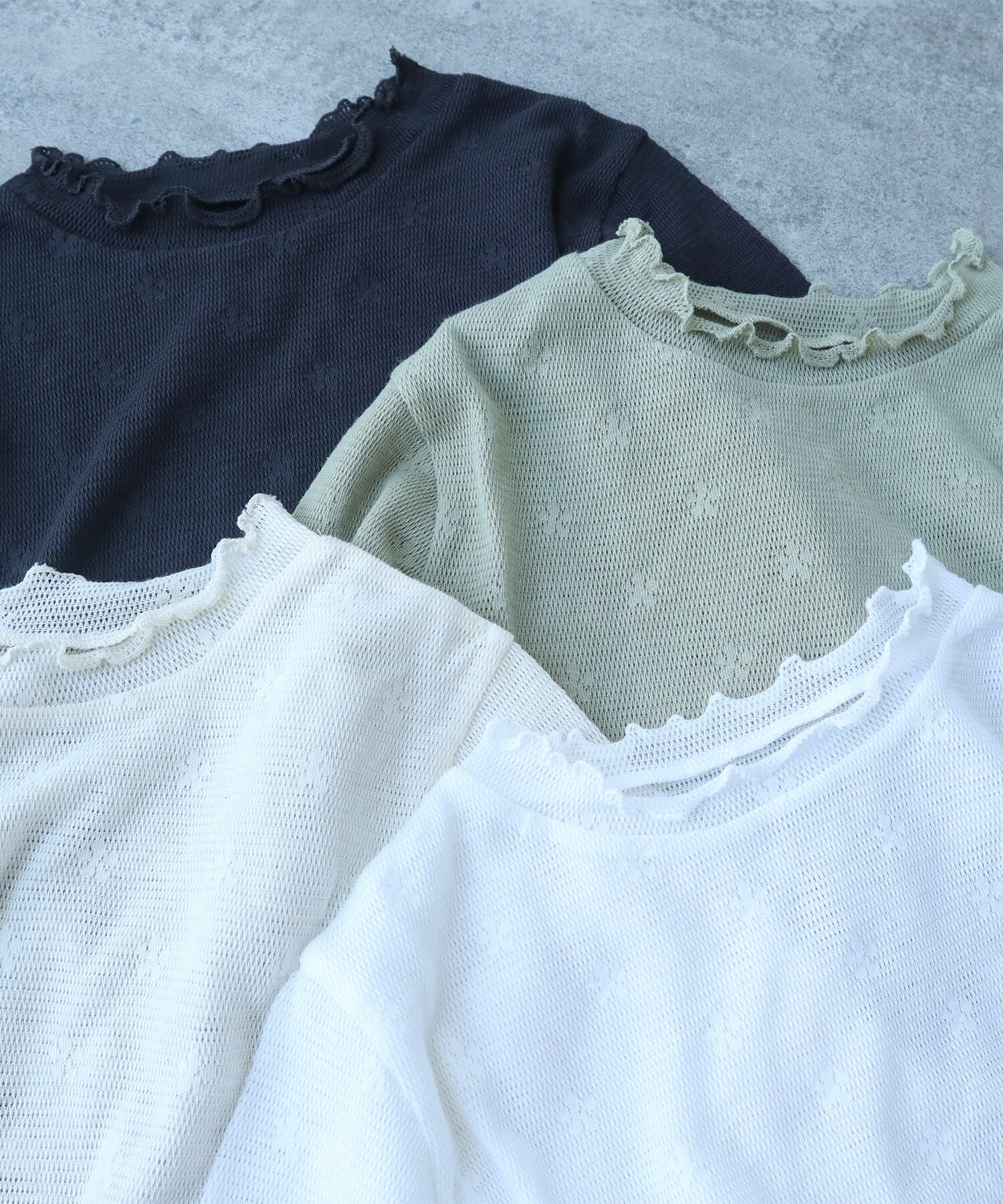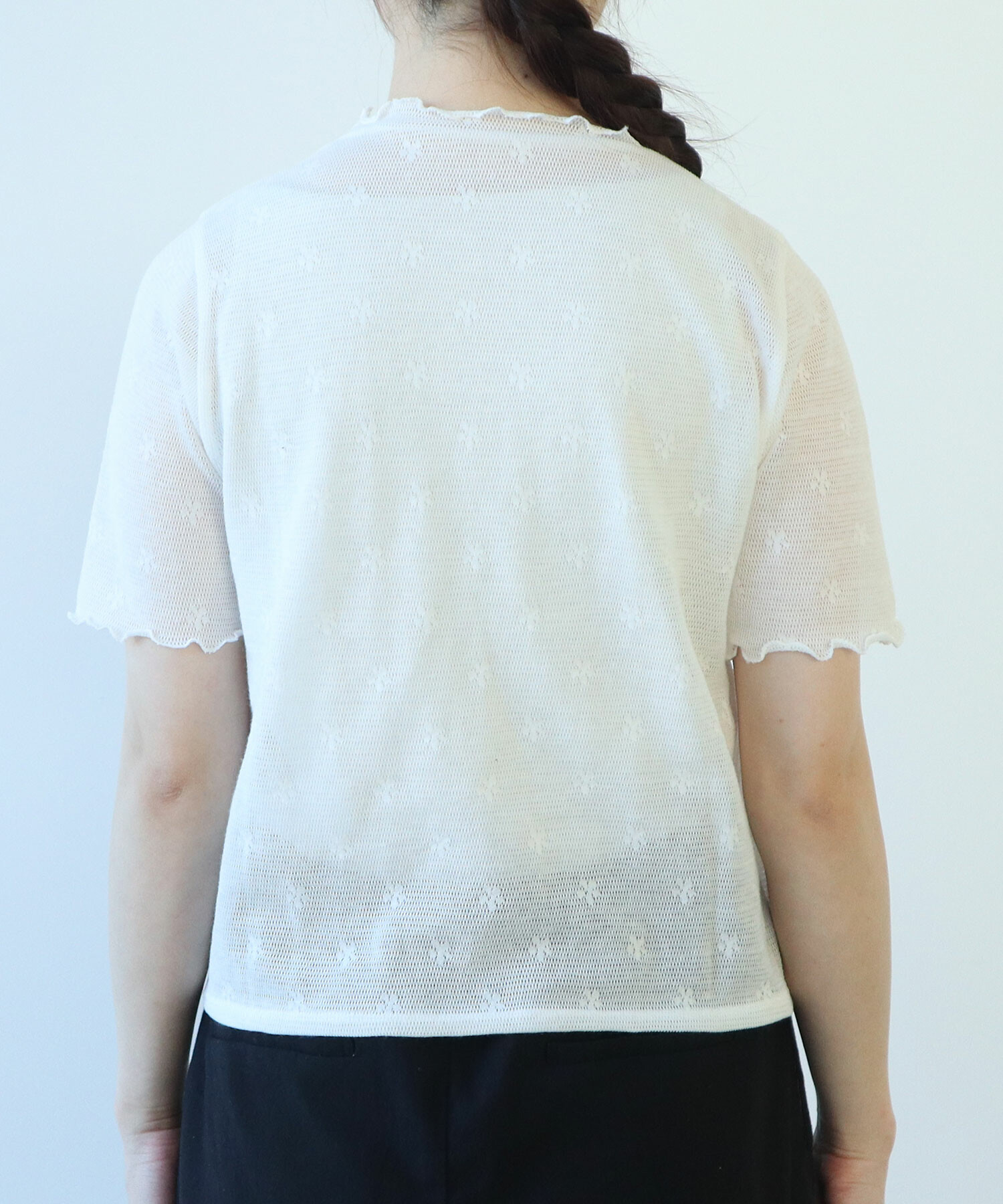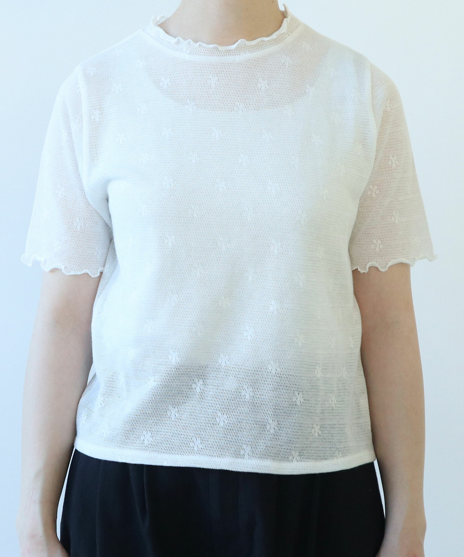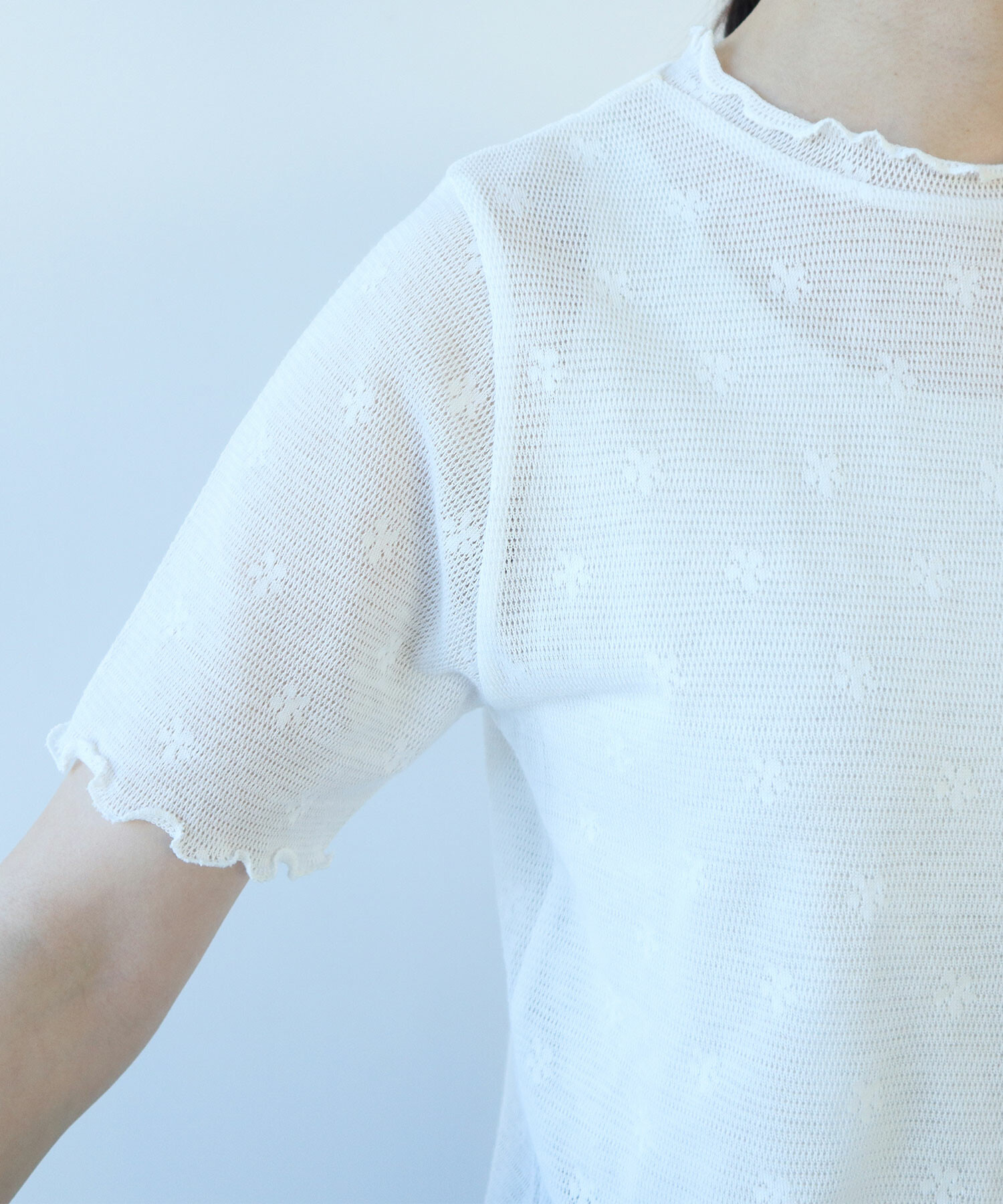 地にメッシュの編地を使用しているため程よい透け感があり、