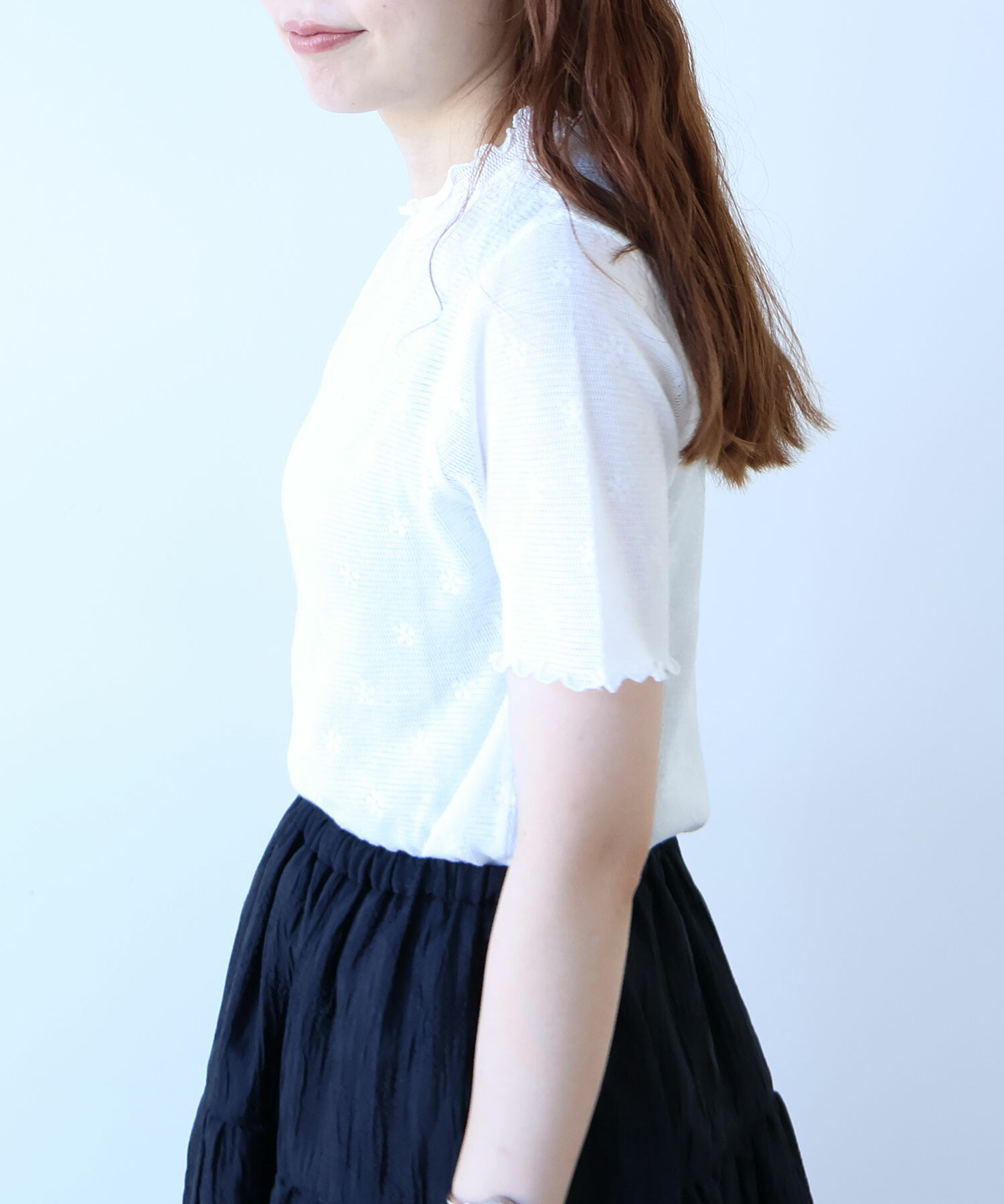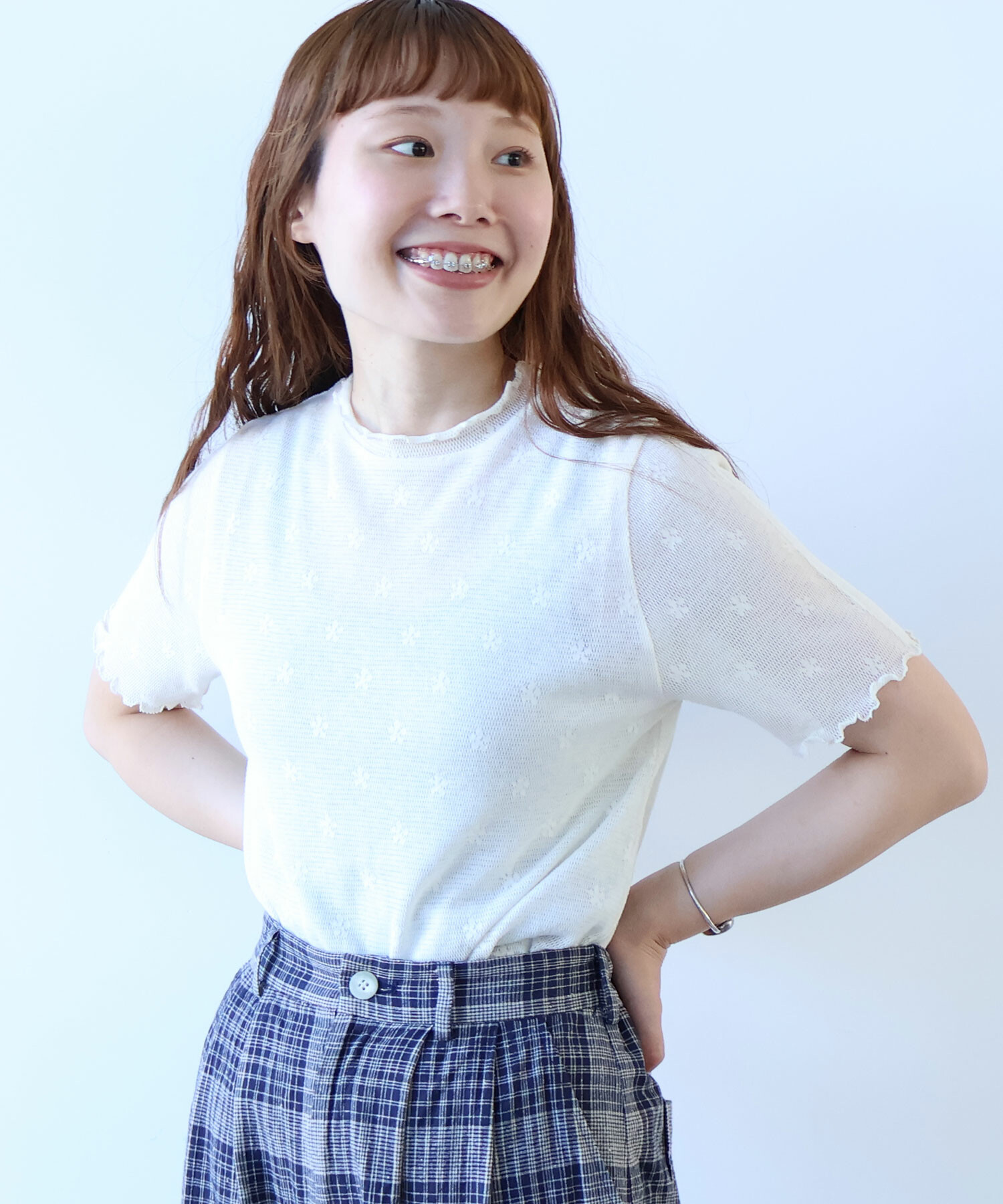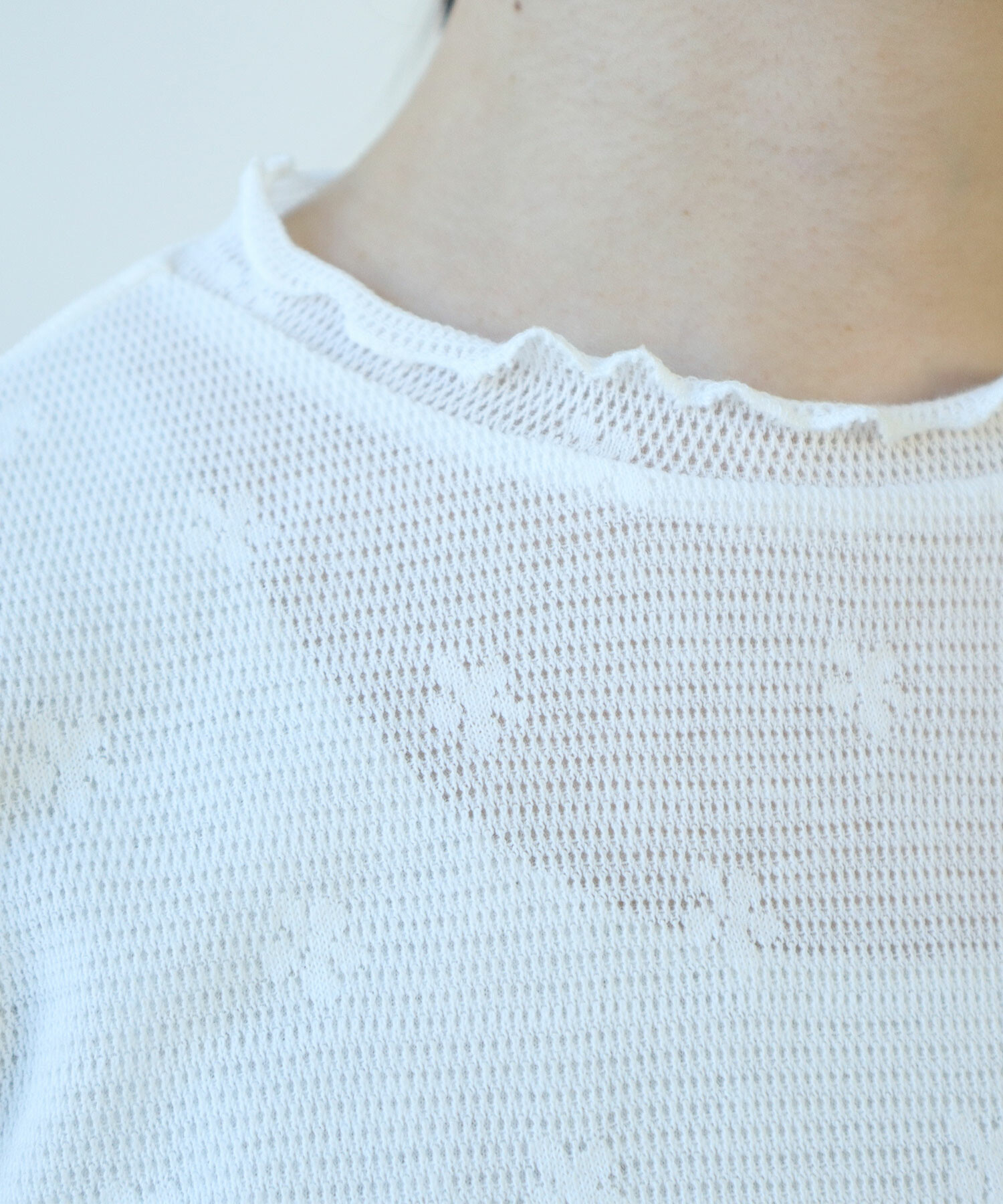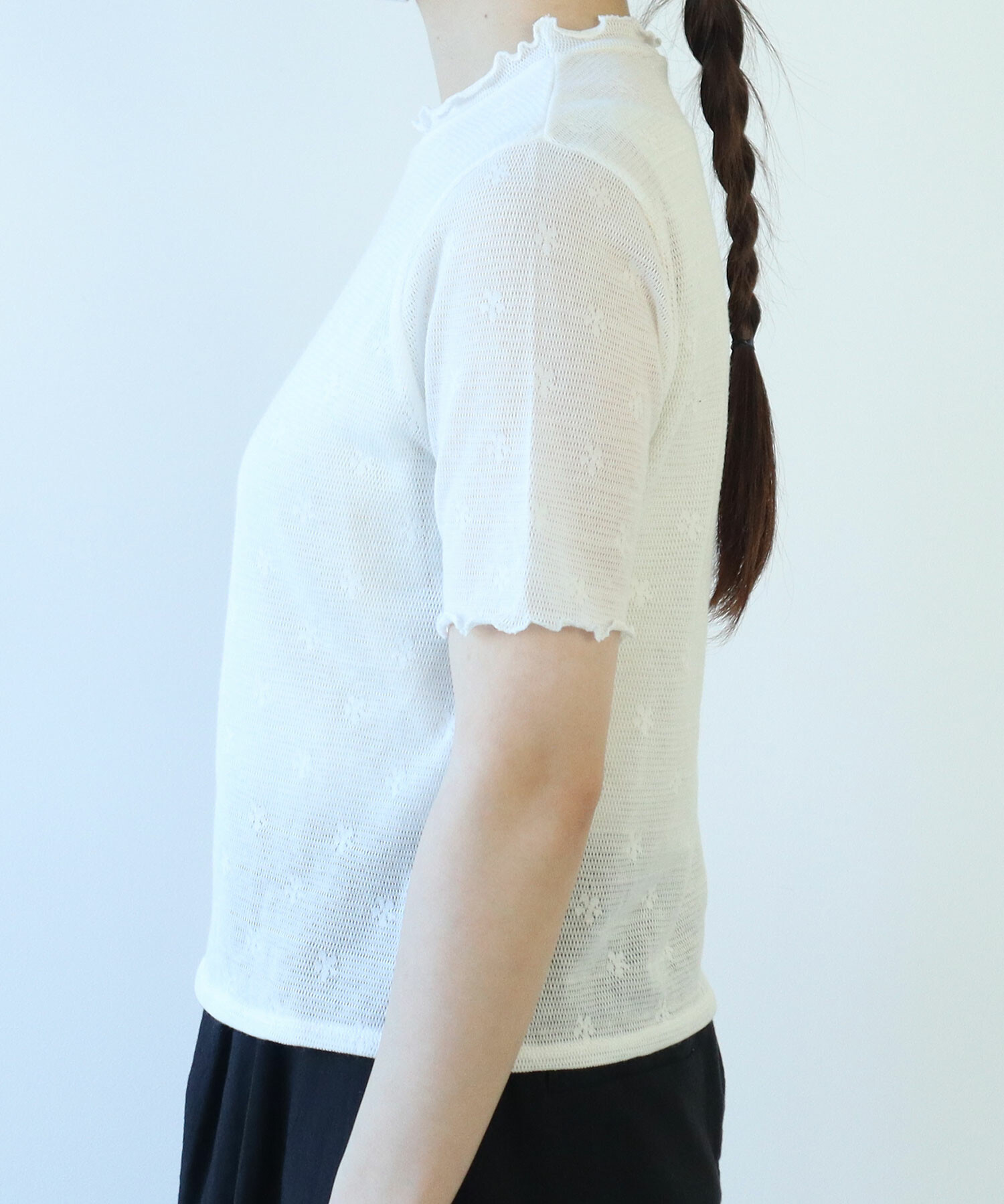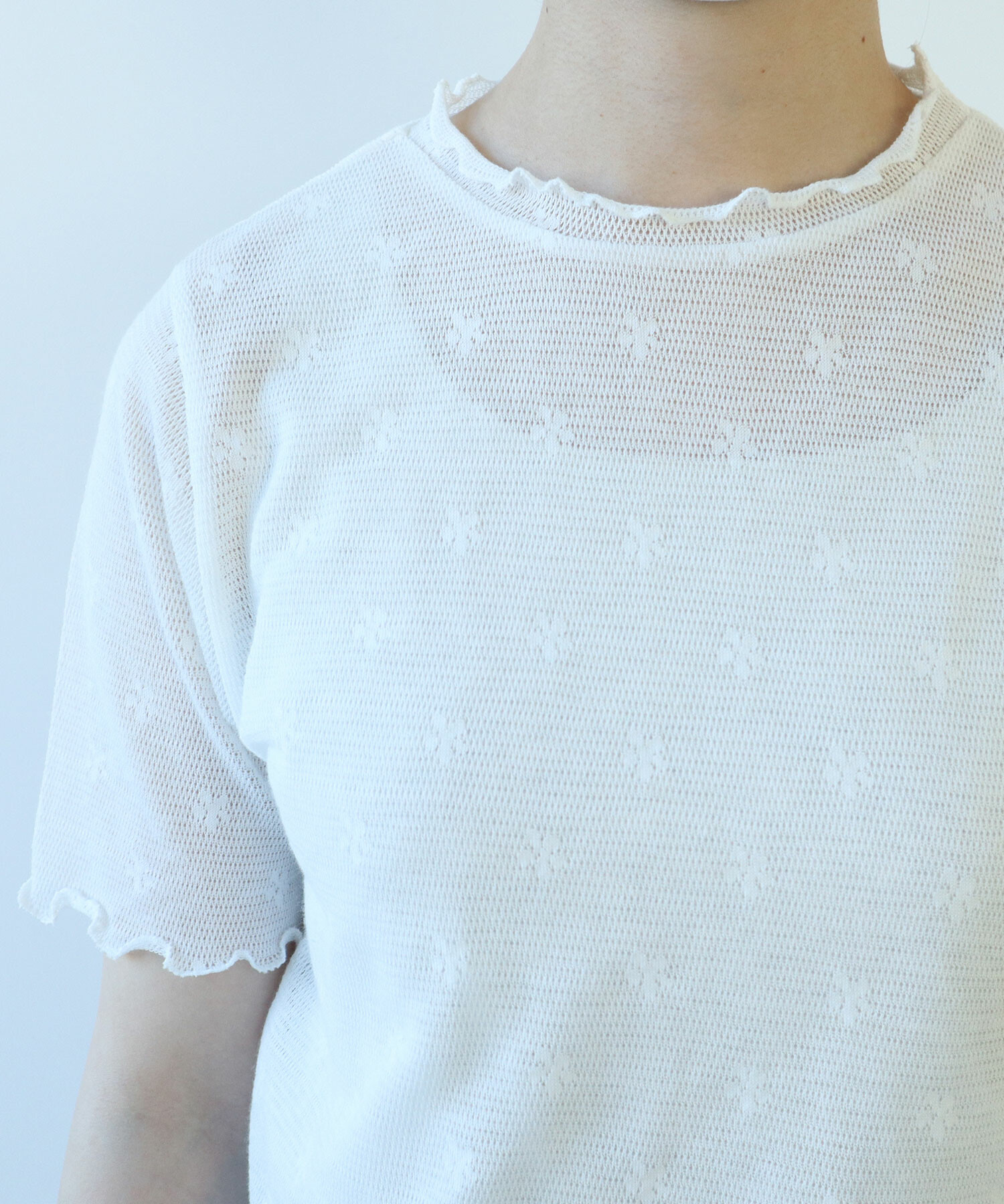 地にメッシュの編地を使用しているため程よい透け感があり、