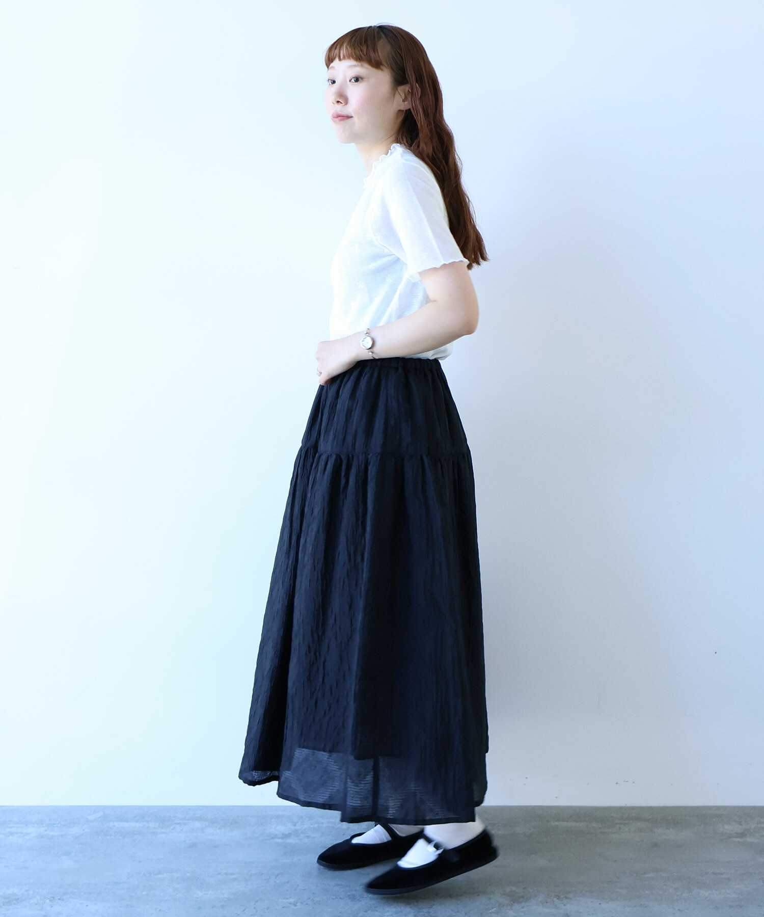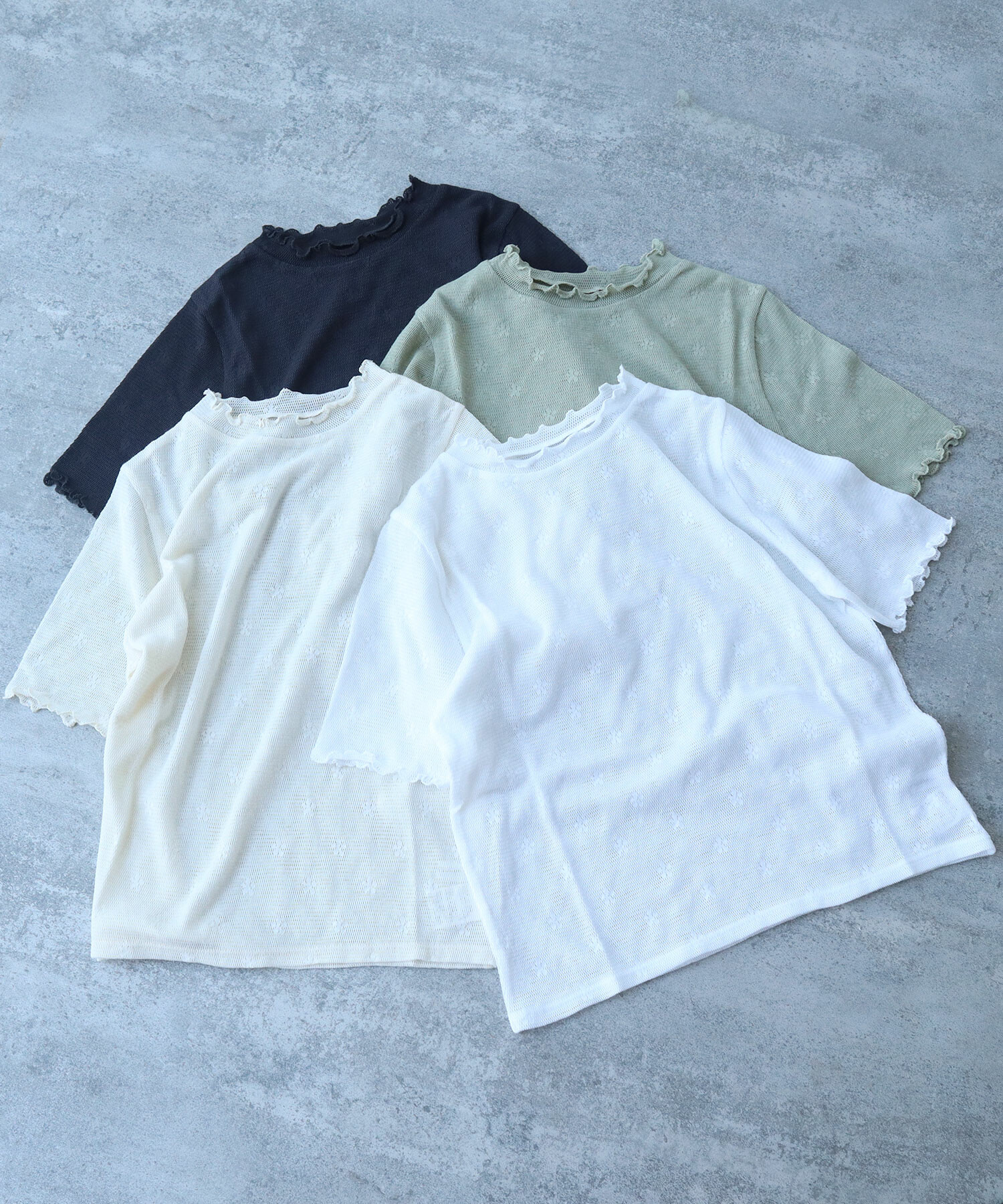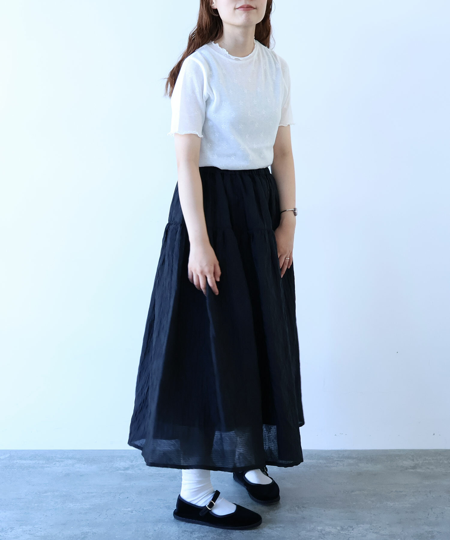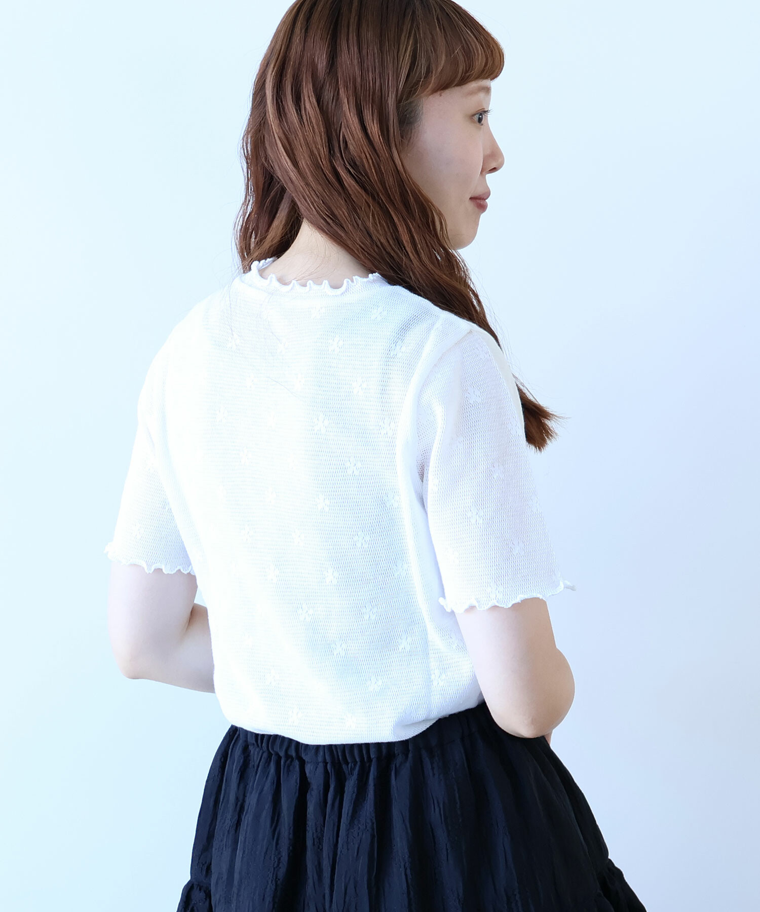 地にメッシュの編地を使用しているため程よい透け感があり、