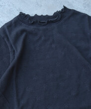 ・この製品は素材の性質上糸引きやひきつれが起こりやすいので、着用中・着脱時、特にアクセサリー・バック等に引っかかりやすいので、十分注意して下さい。