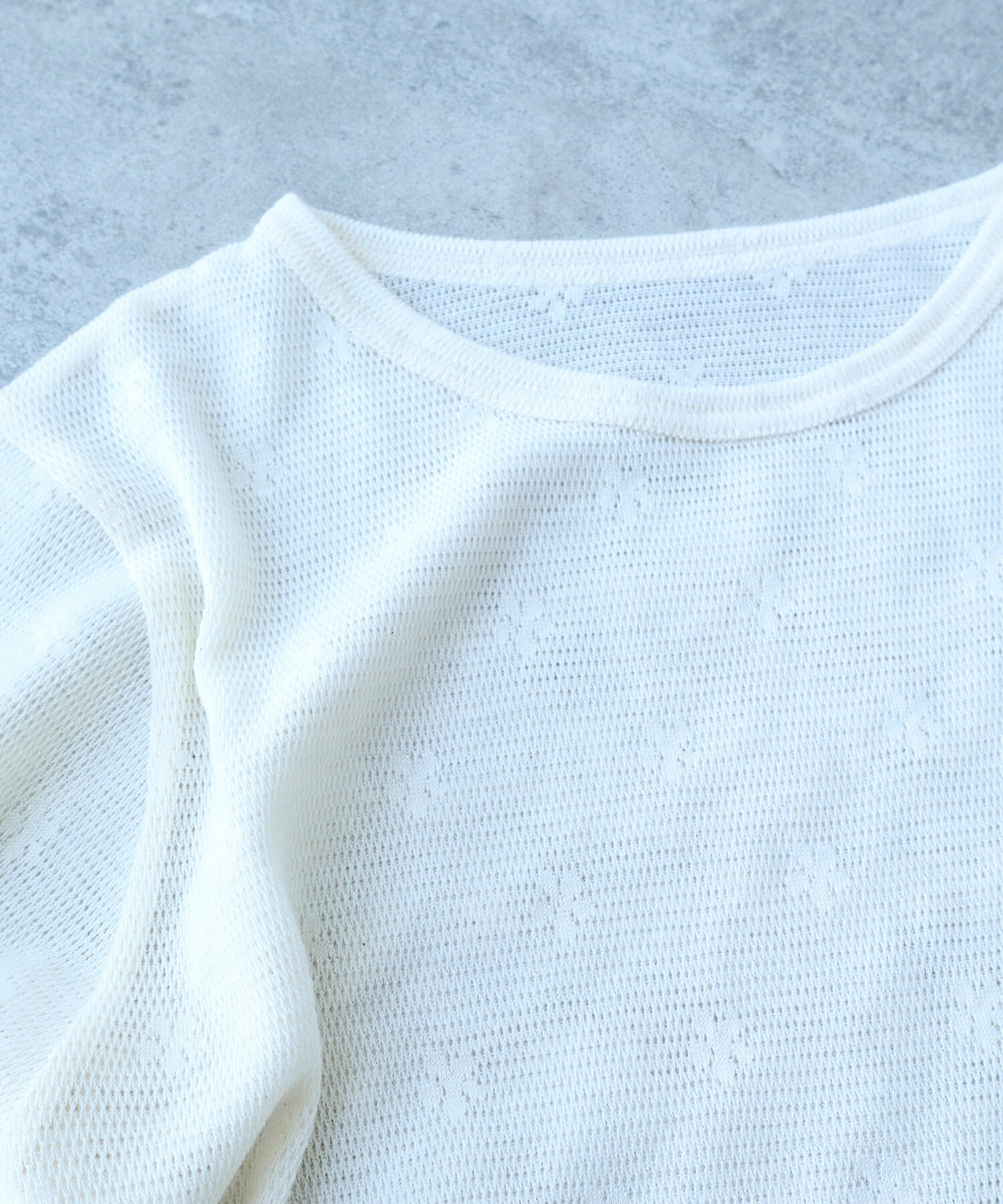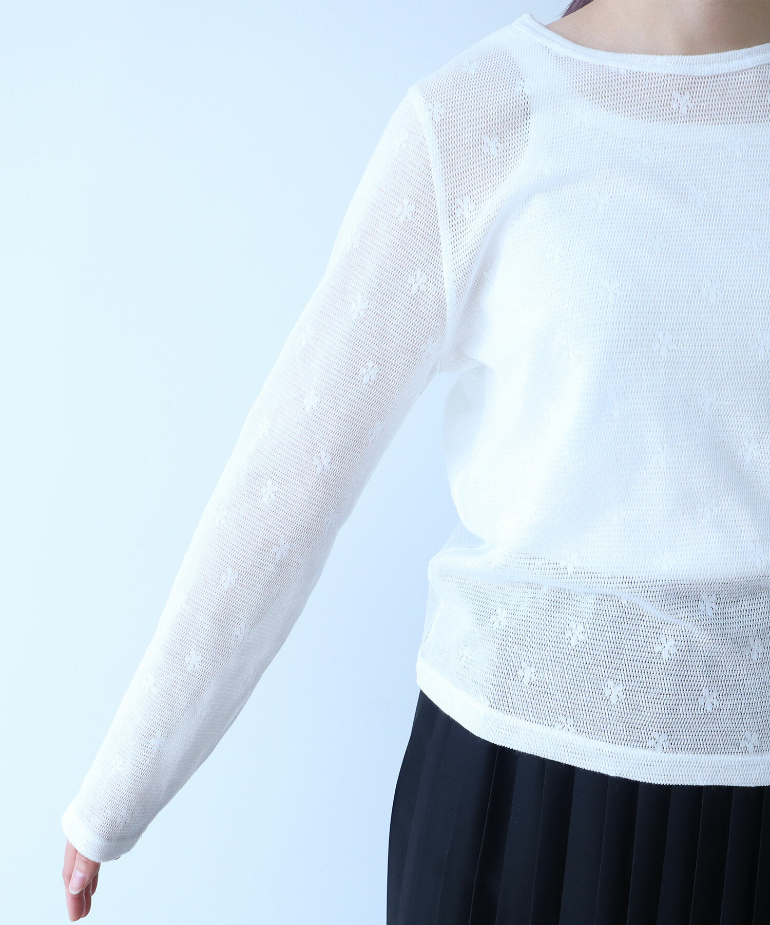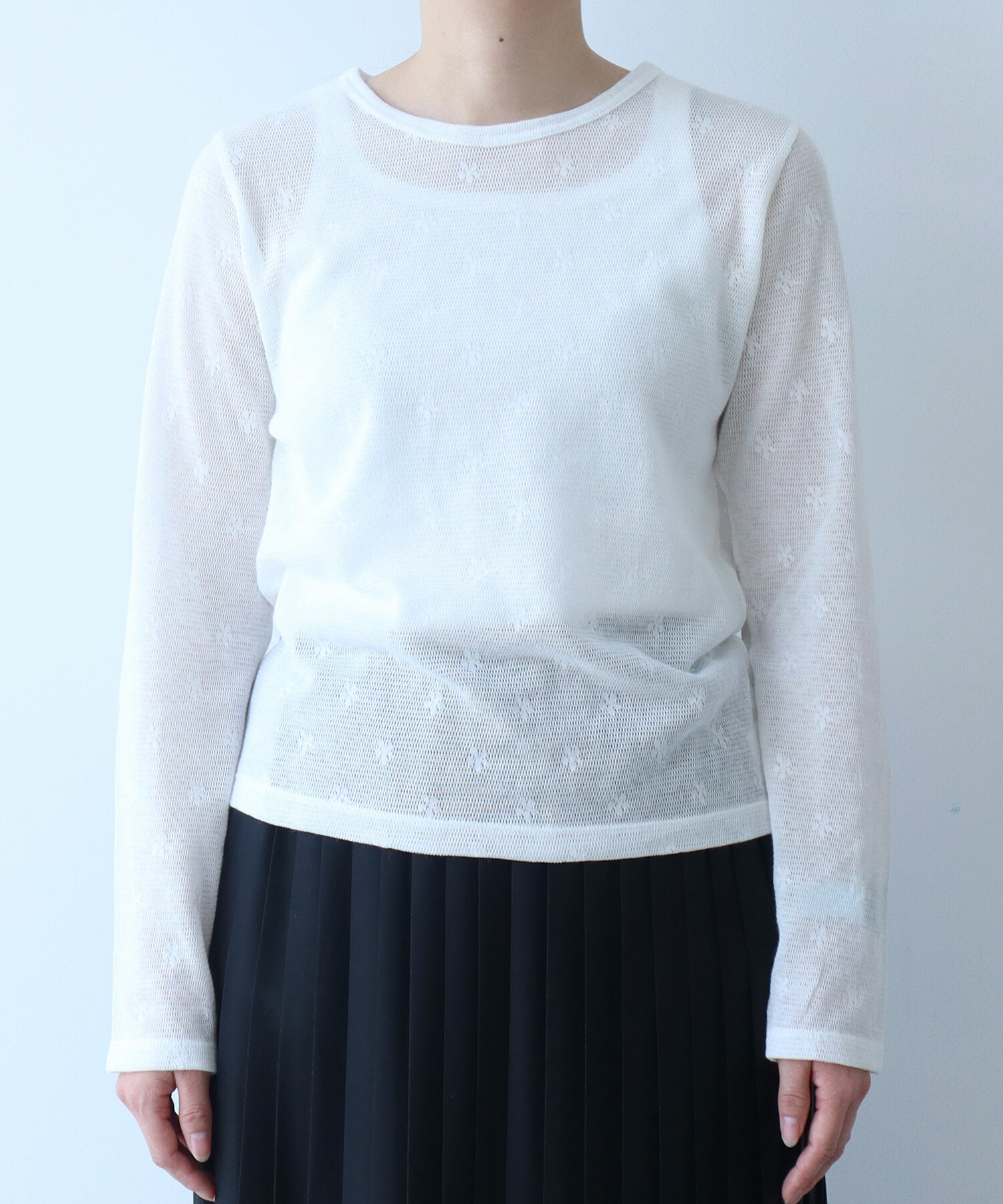 地にメッシュの編地を使用しているため程よい透け感があり、