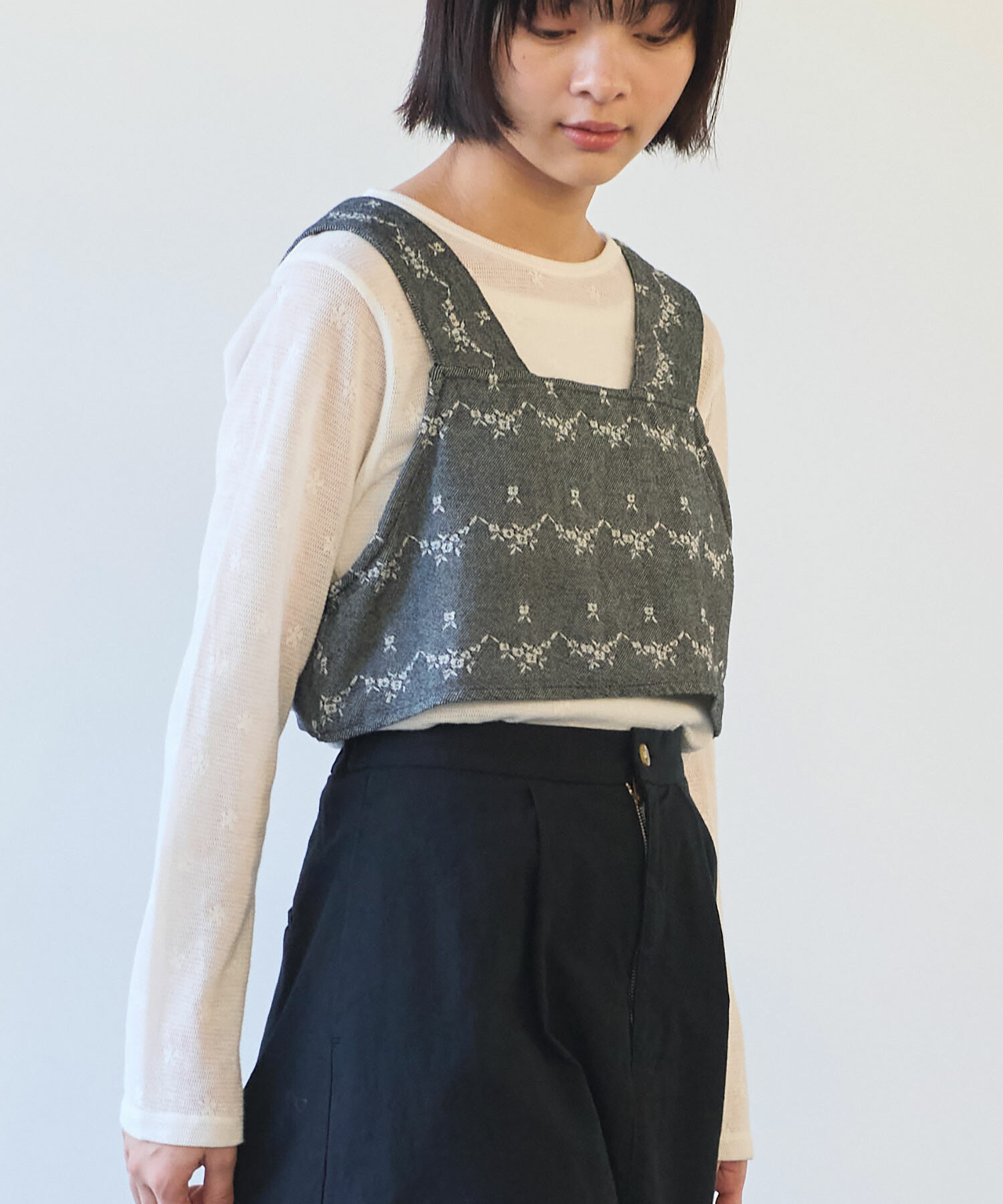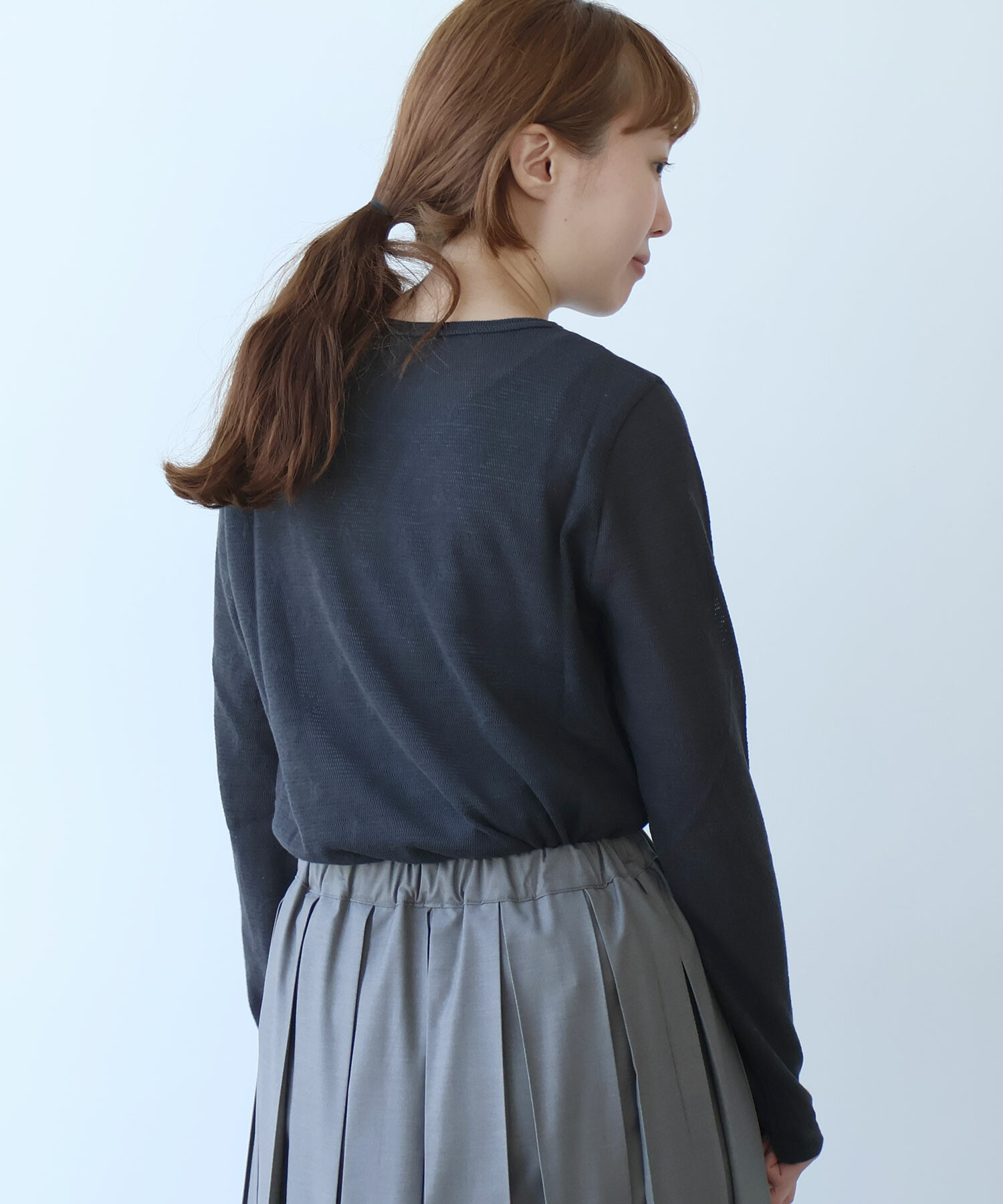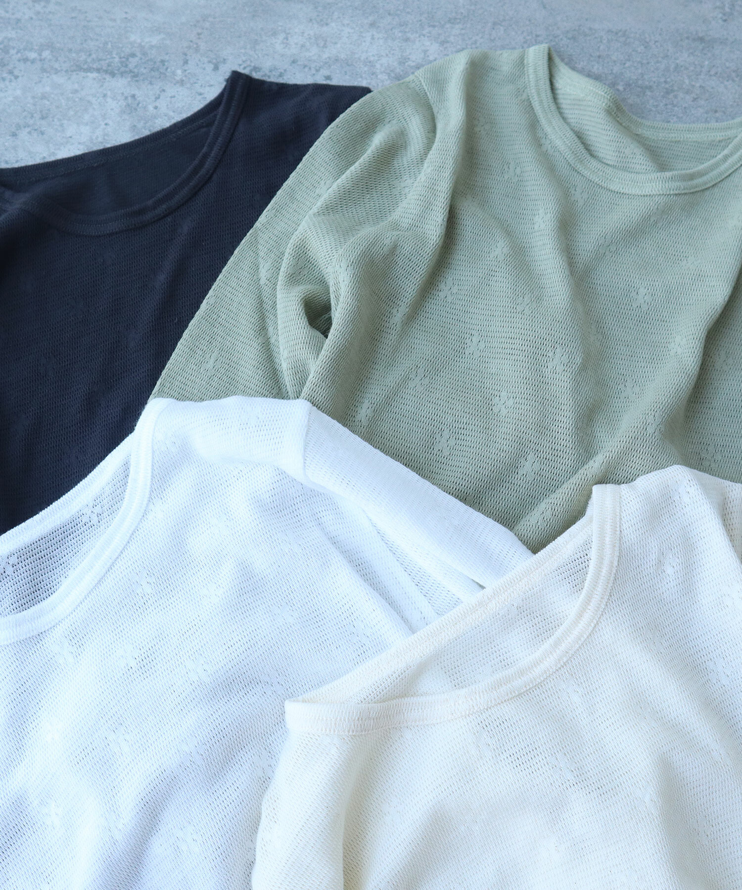 地にメッシュの編地を使用しているため程よい透け感があり、