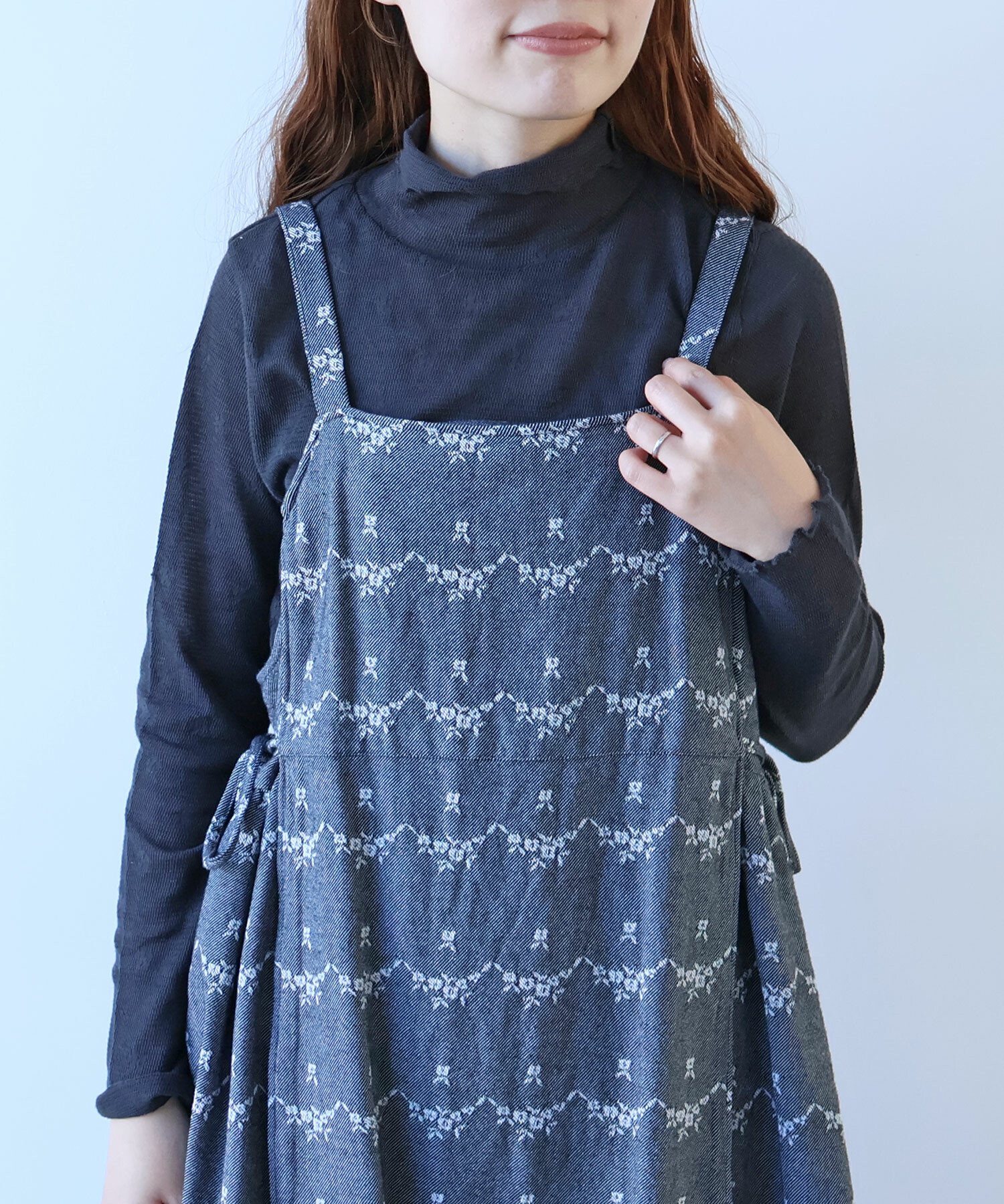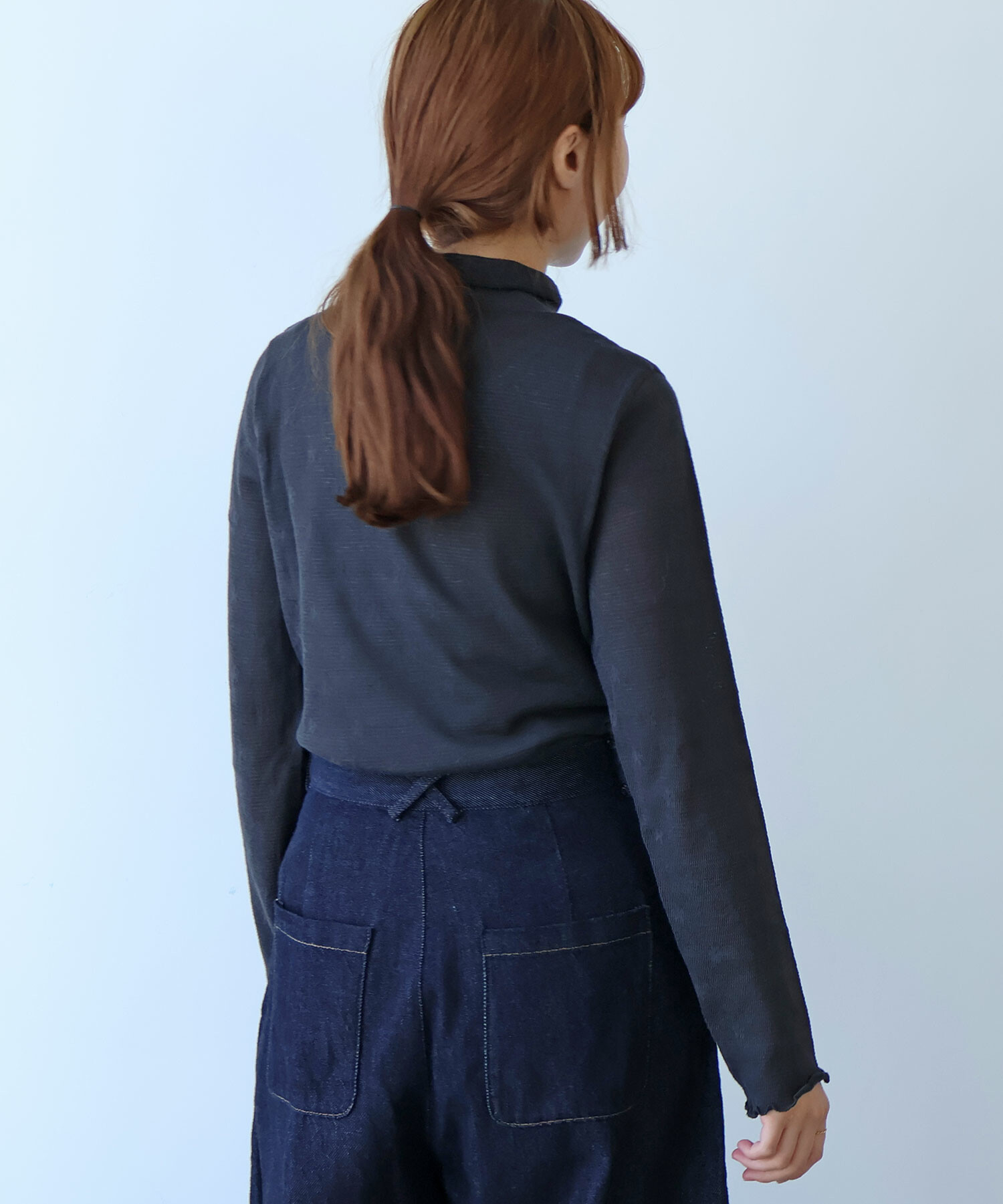 ・この製品は素材の性質上糸引きやひきつれが起こりやすいので、着用中・着脱時、特にアクセサリー・バック等に引っかかりやすいので、十分注意して下さい。