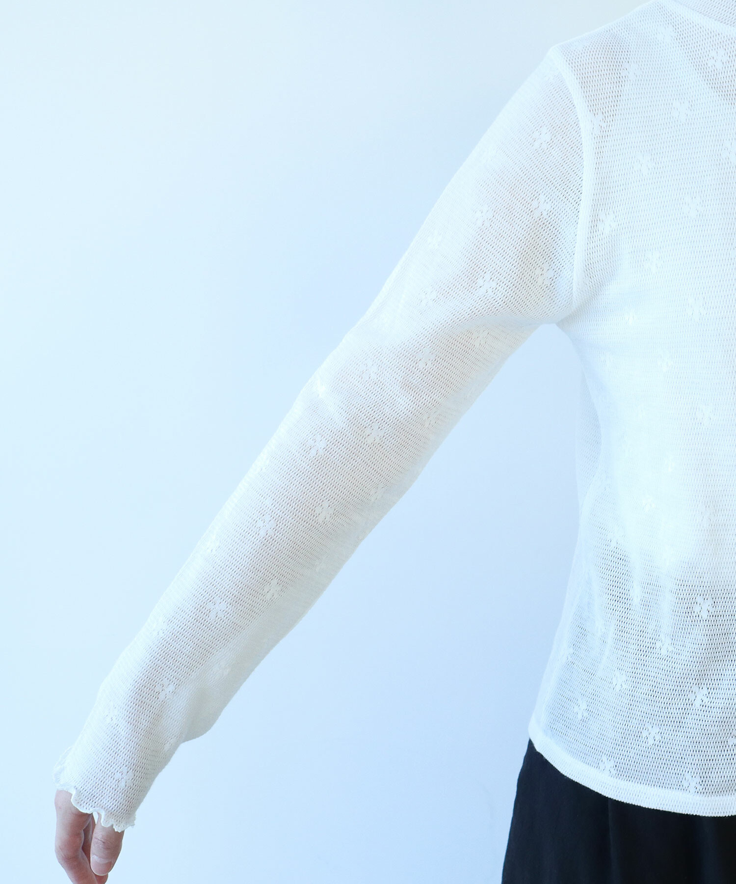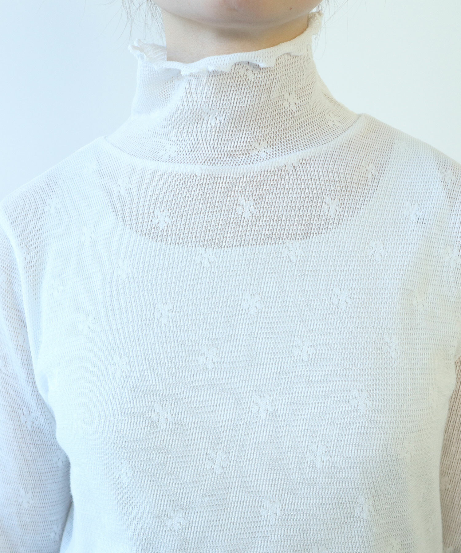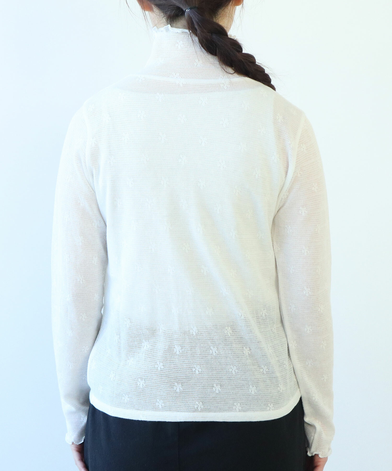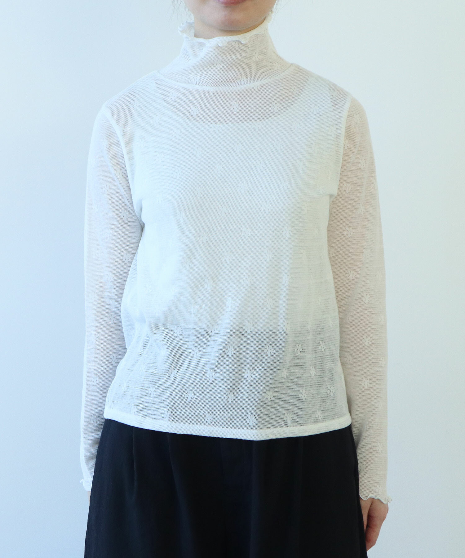 地にメッシュの編地を使用しているため程よい透け感があり、