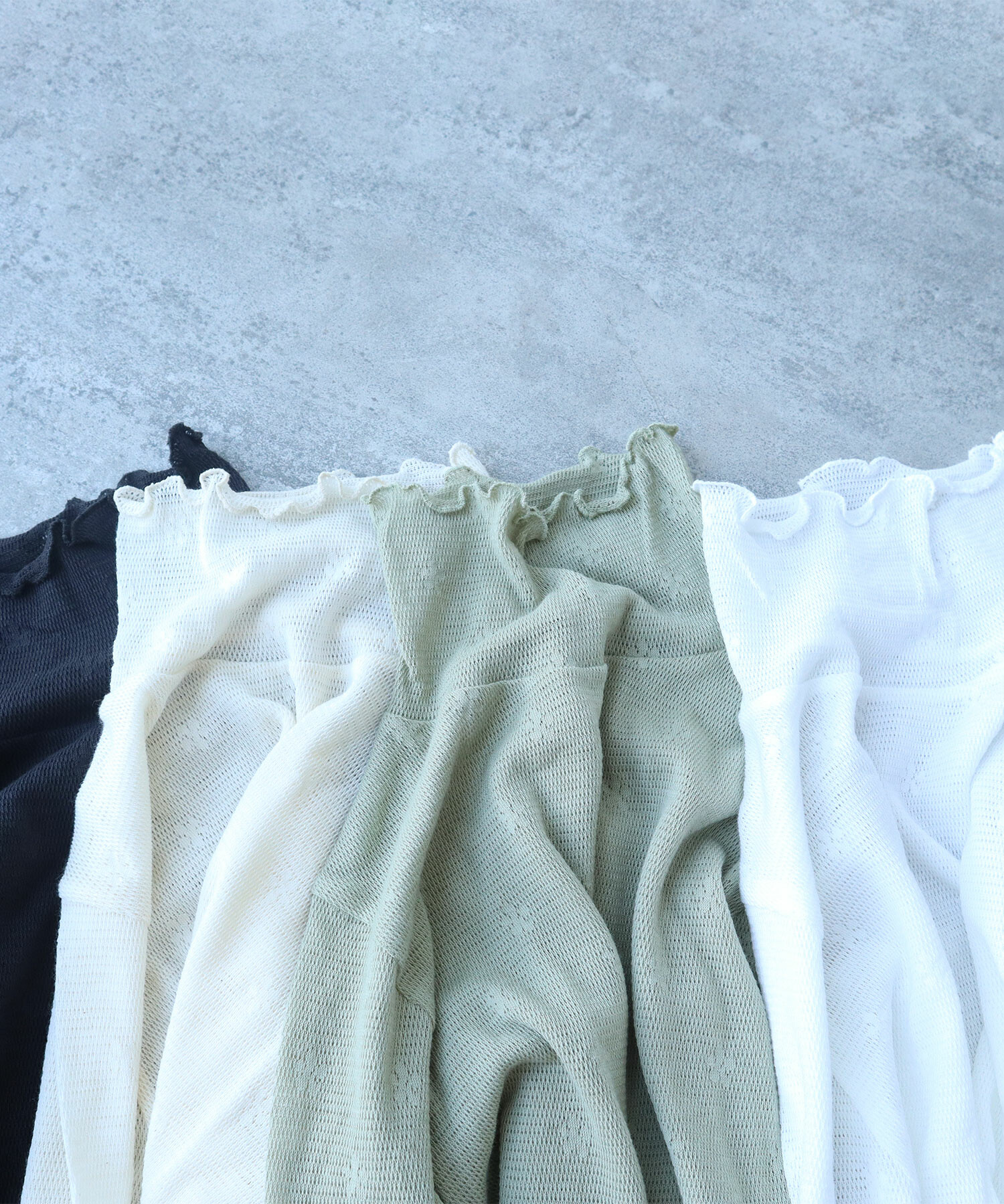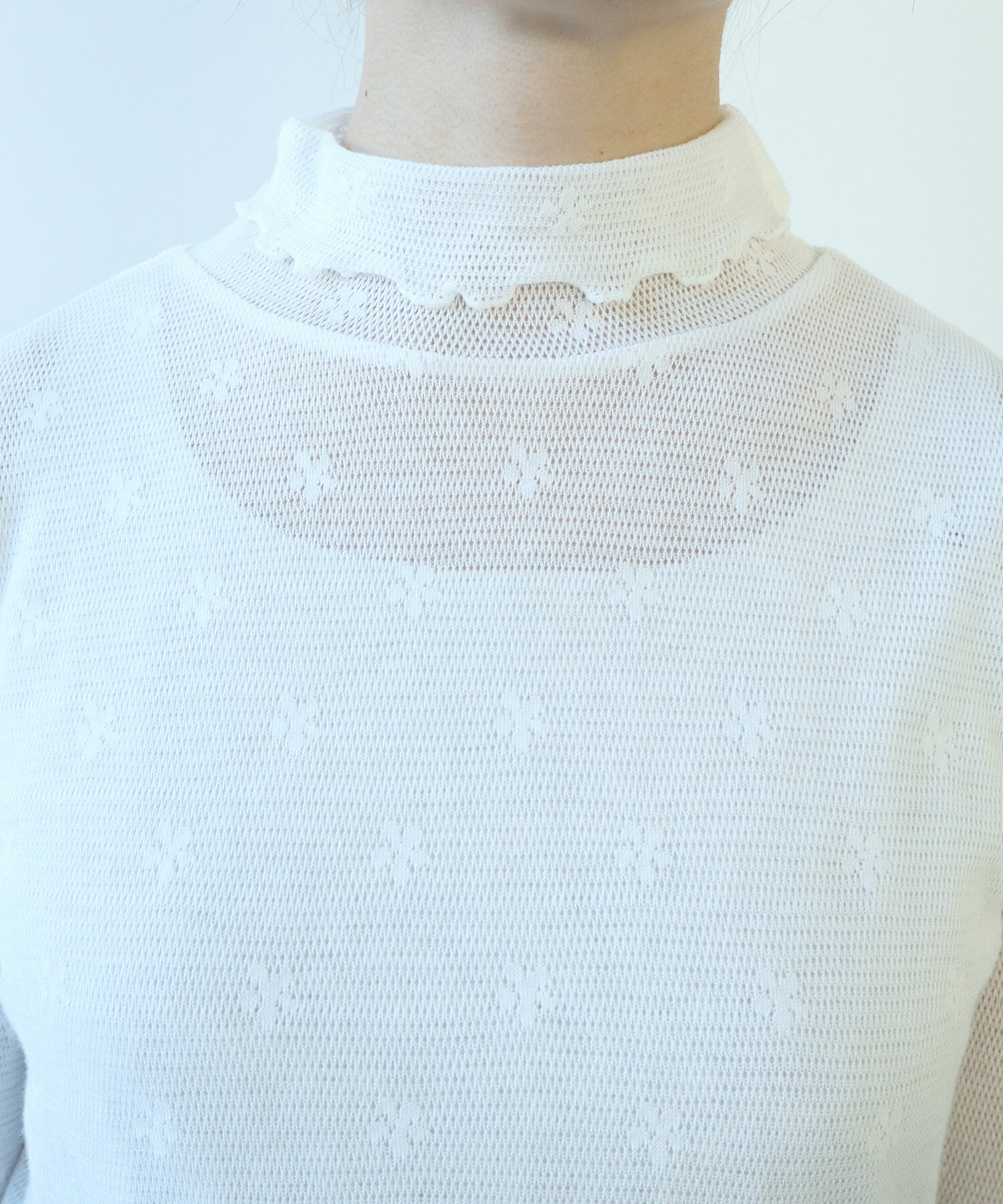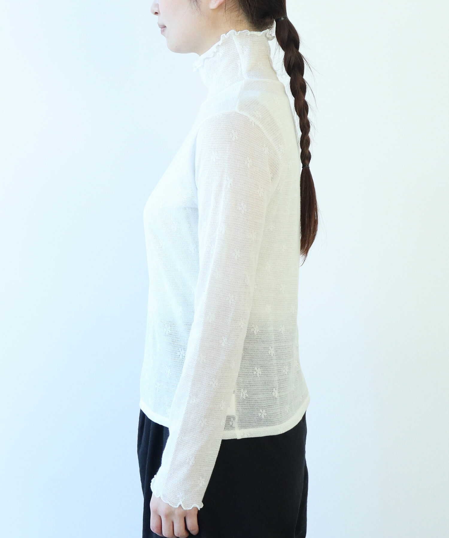 地にメッシュの編地を使用しているため程よい透け感があり、