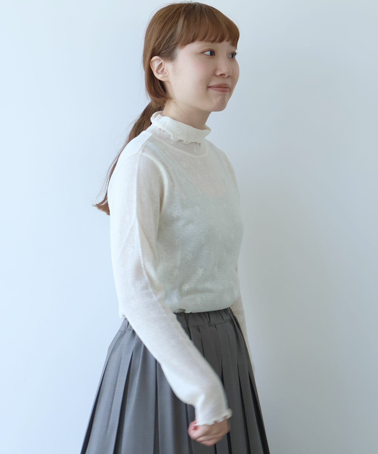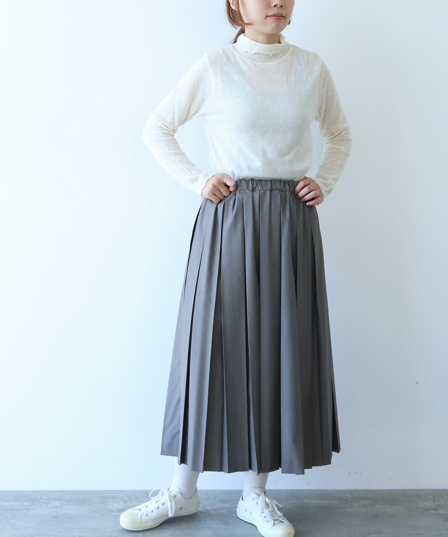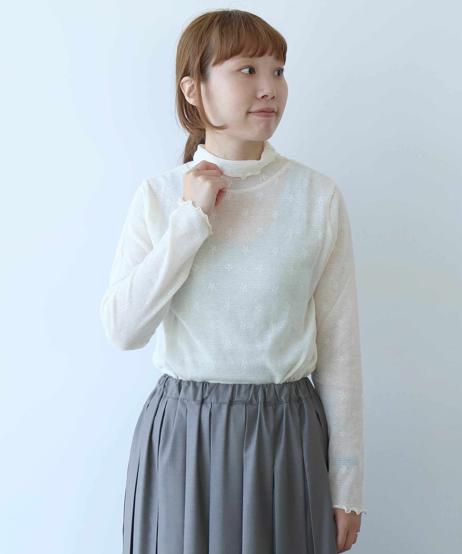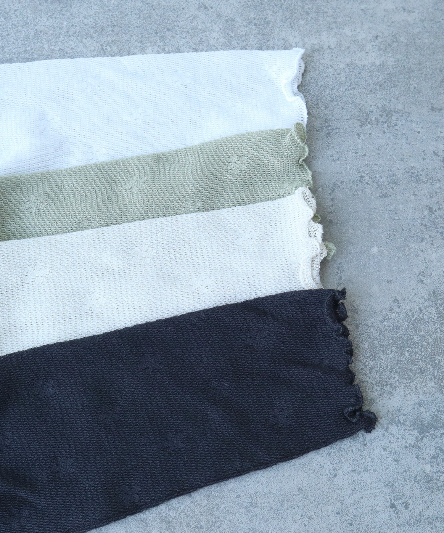 地にメッシュの編地を使用しているため程よい透け感があり、