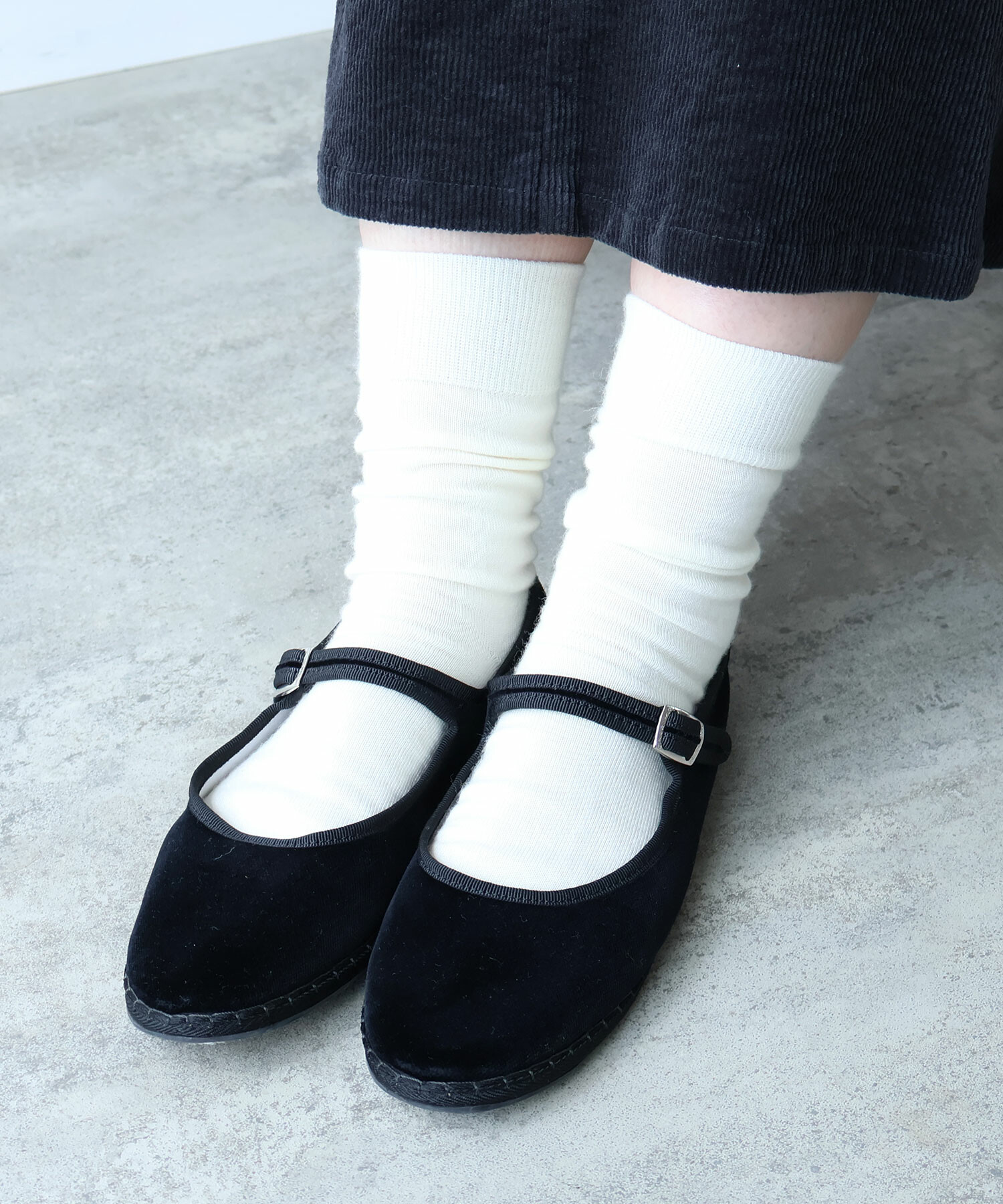 合わせやすい少し長めのミドルソックスは、