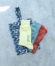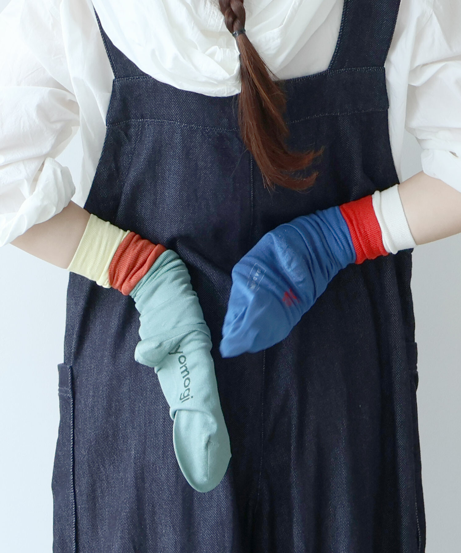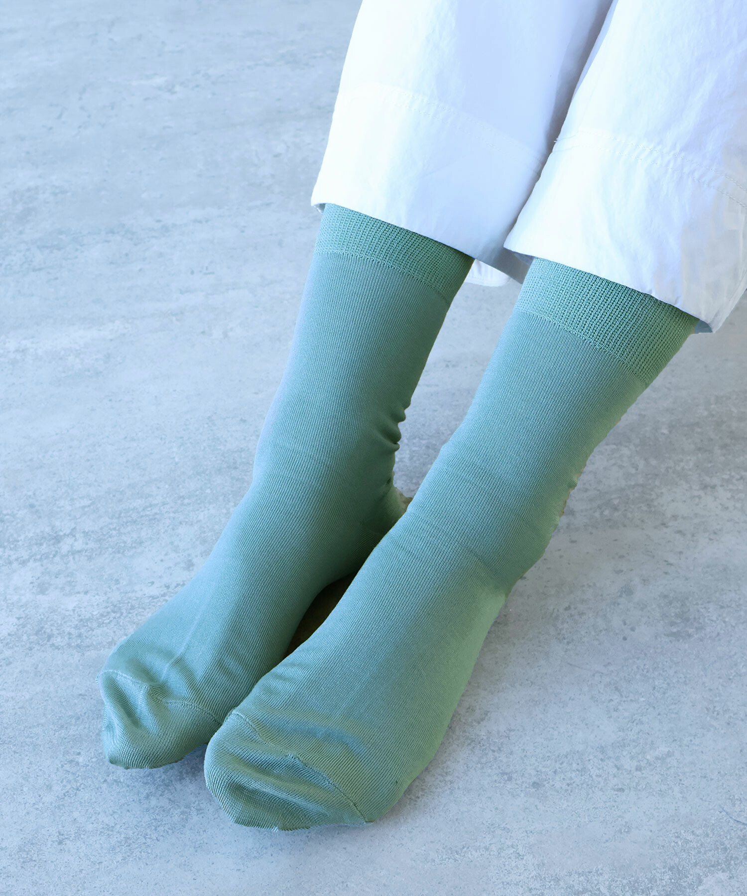 ・ソックスの取り扱いの注意点…この製品に使用している素材は、表面の効果や風合いを生かした糸や組織になっているため、強い摩擦や部分的に力が加わりますと、目寄れ(織り糸が動いて、隙間があいた状態)が発生しますのでご注意下さい。