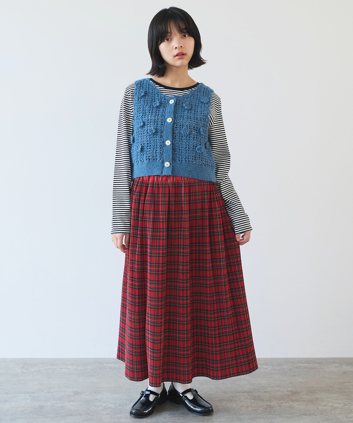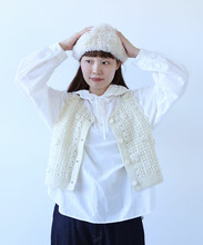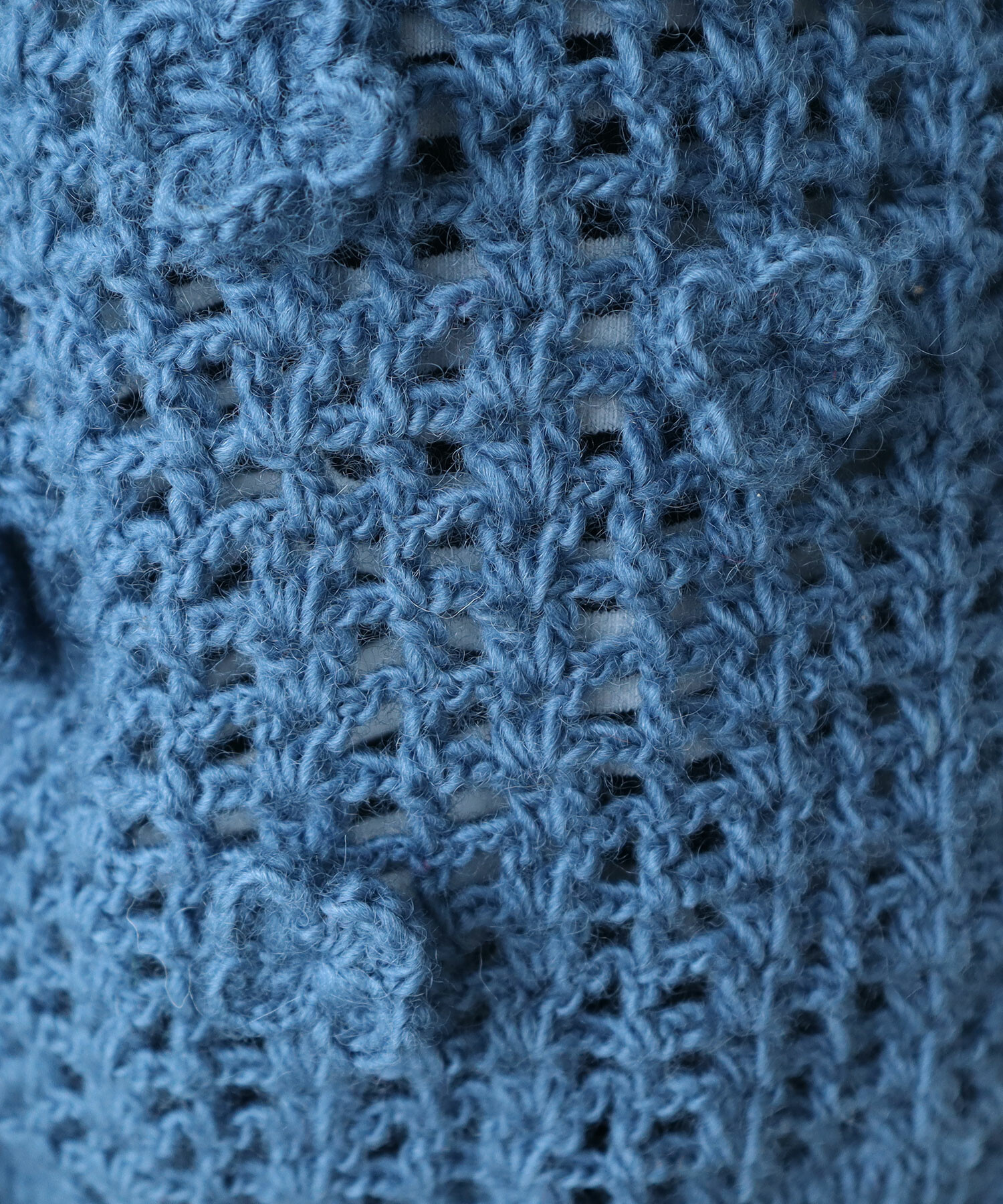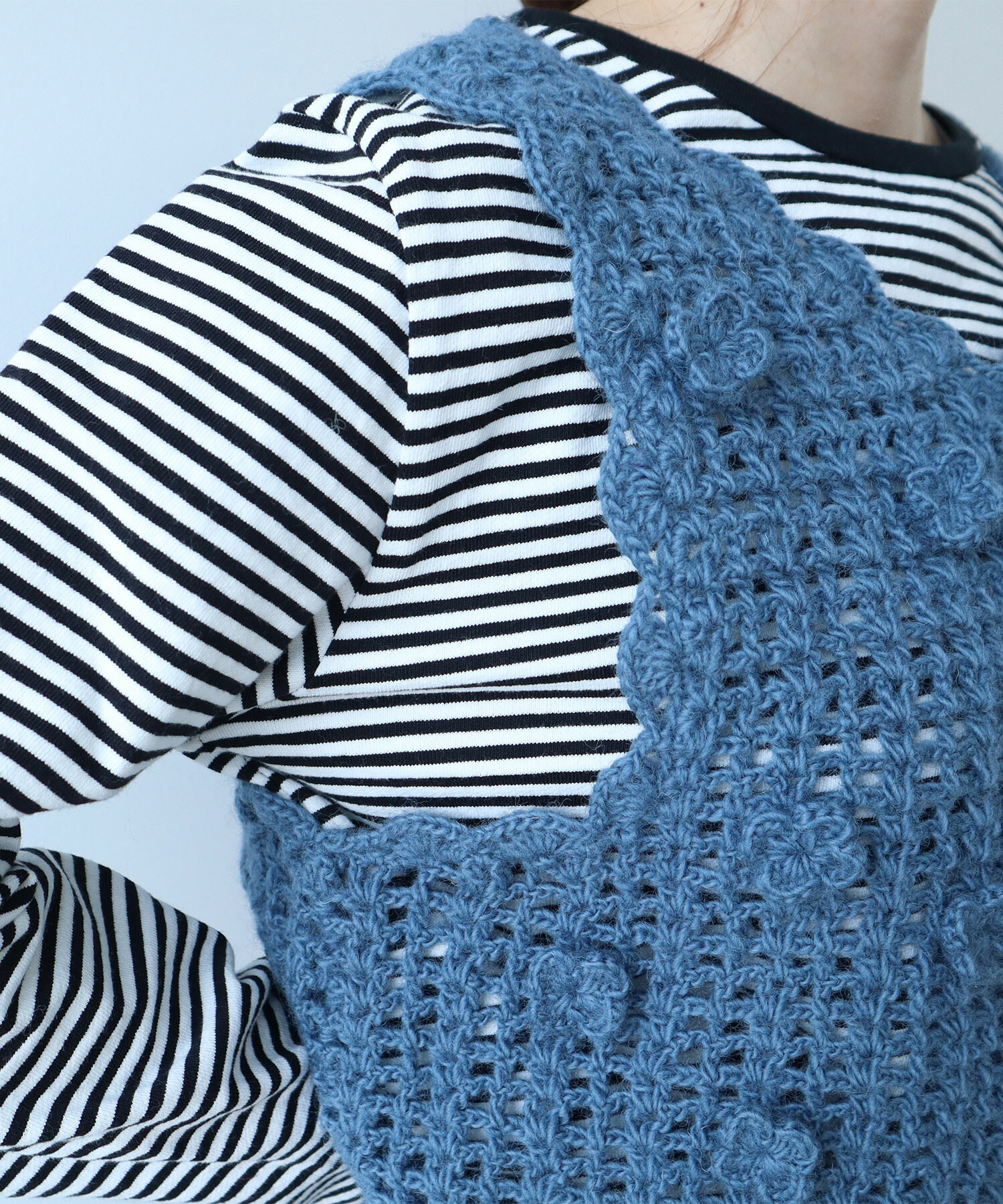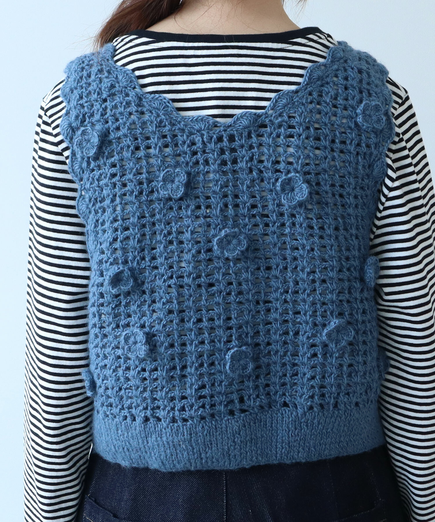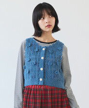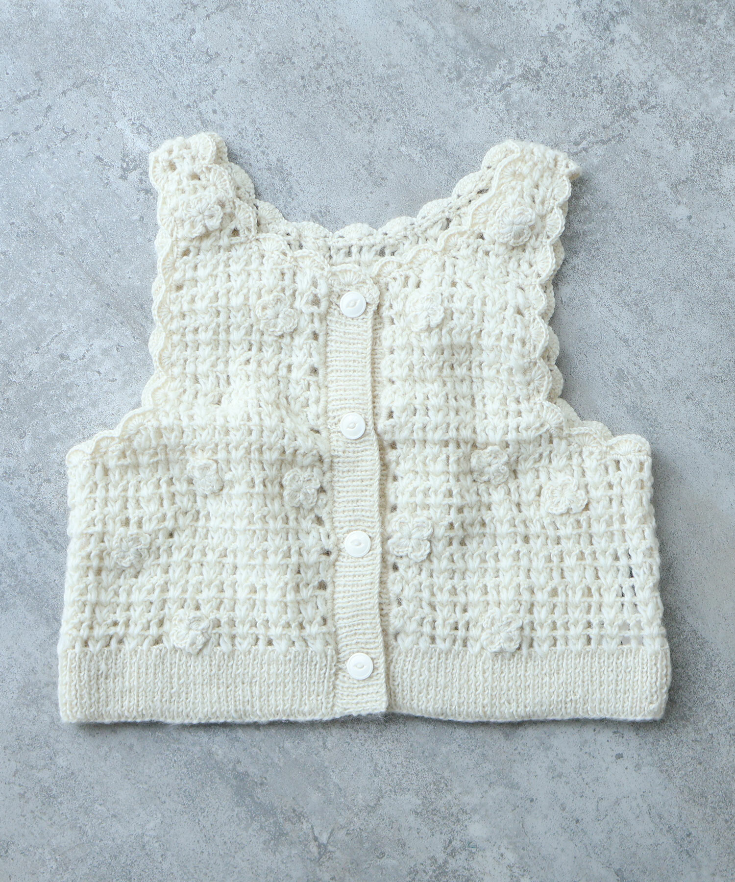 ぽこぽことしたお花のモチーフを並べた心踊るようなニットビスチェ。