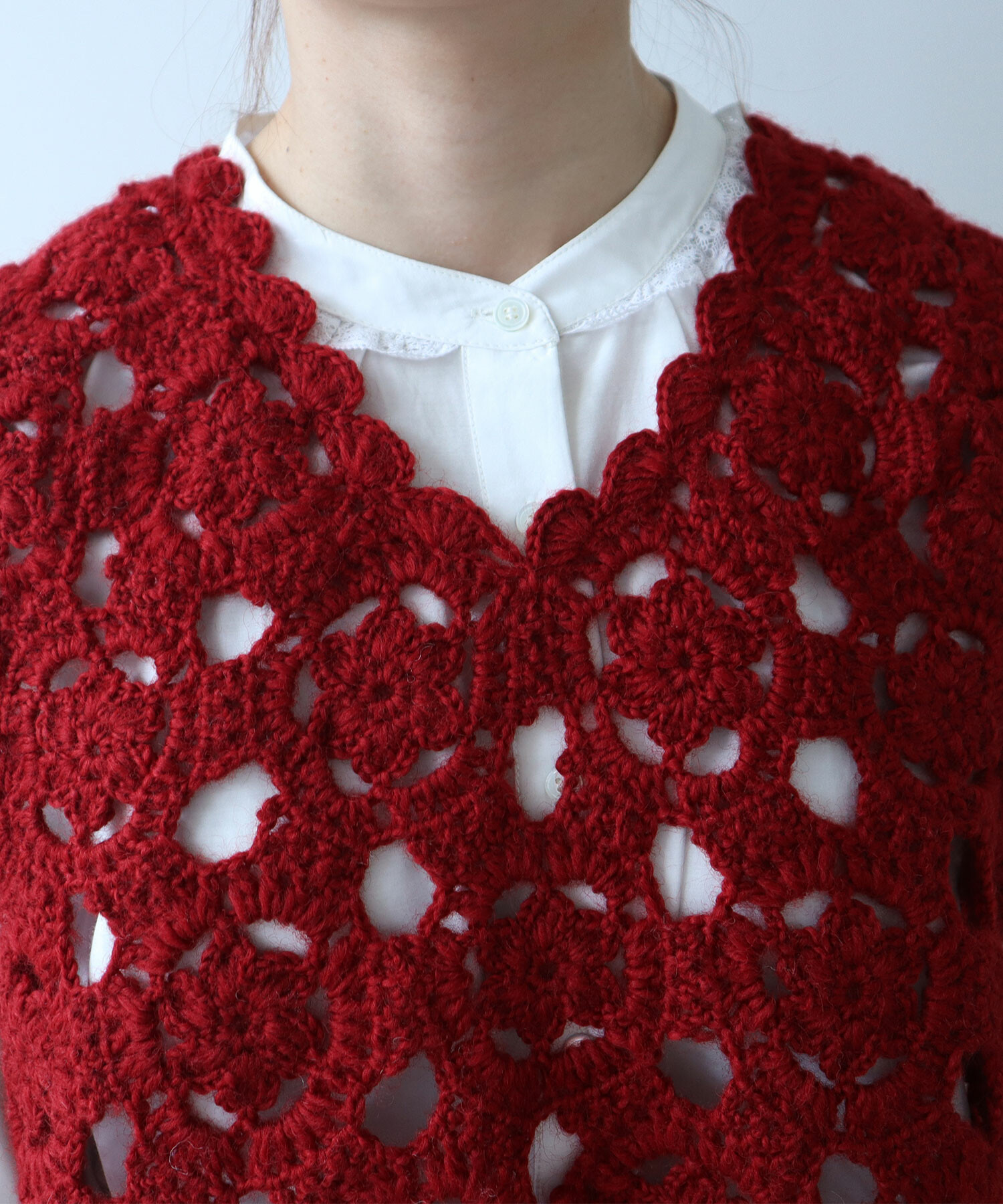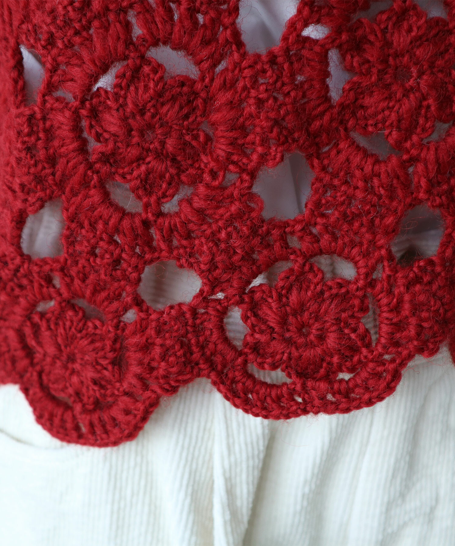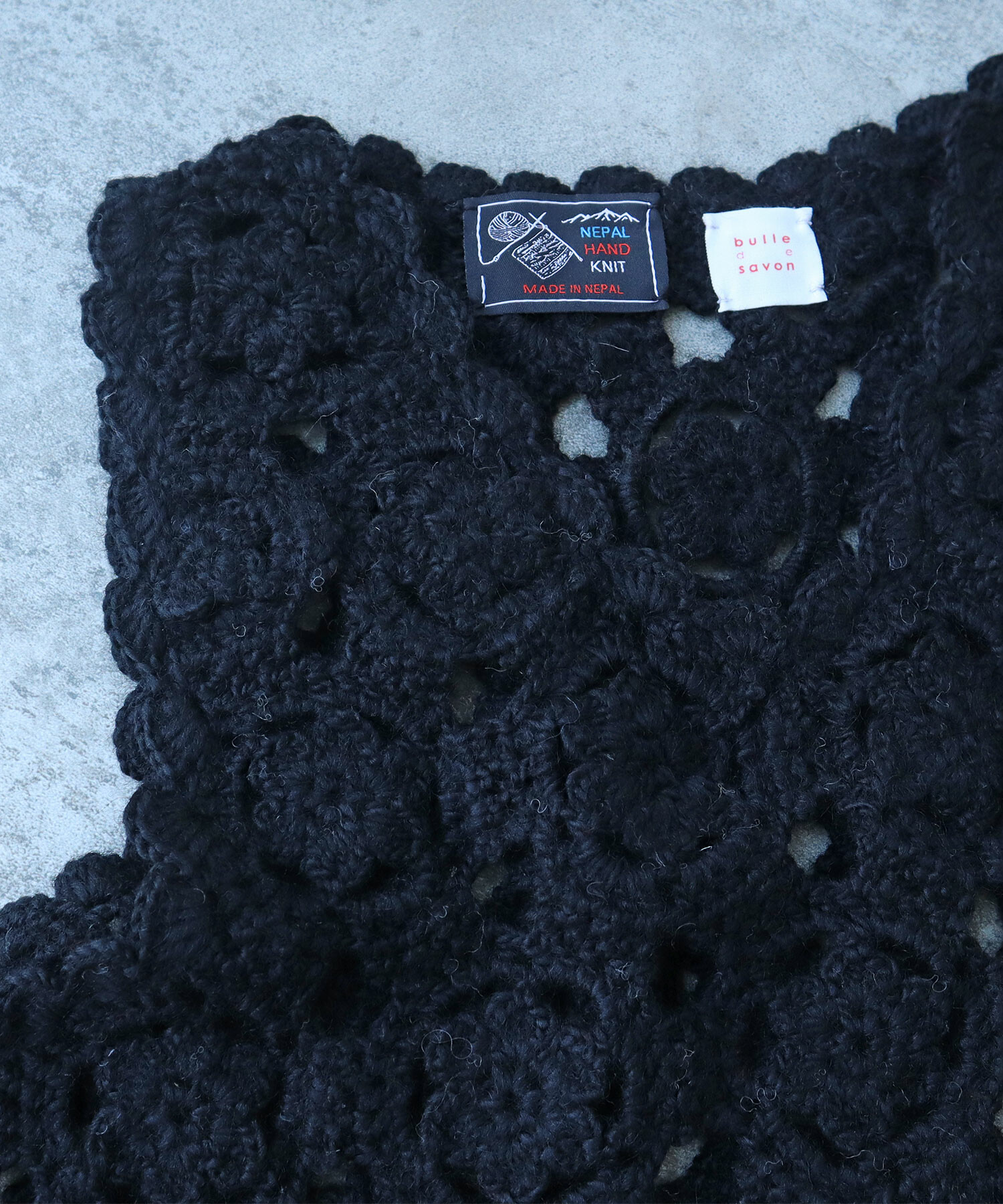 手編みならではの細やかな技術が光る1枚です。